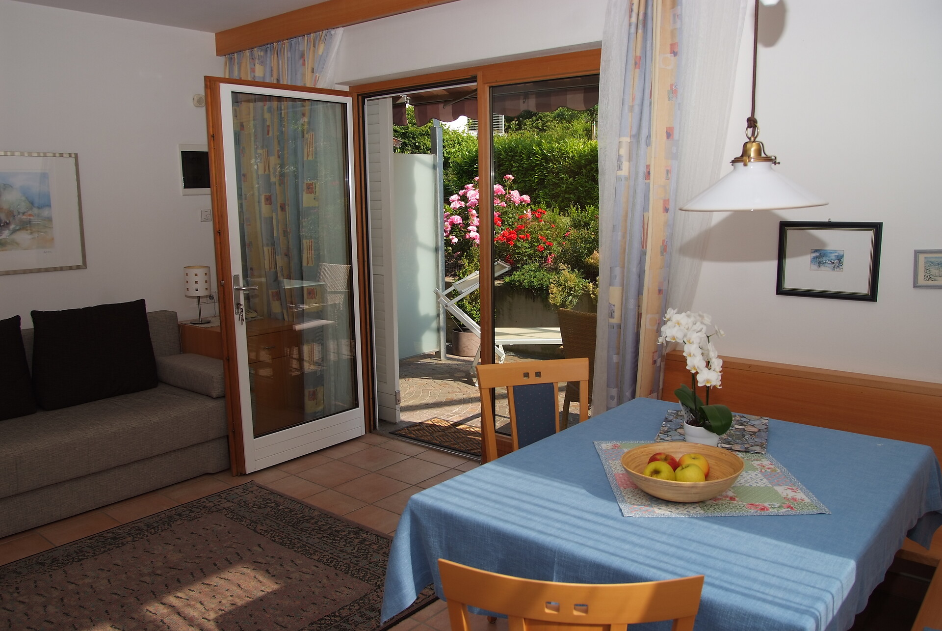 Alle unsere Ferienwohnungen für 2 – 4 Personen sind komfortabel ausgestattet. Im getrennten Wohn-Schlafraum mit Balkon sind DU/WC, Sat-TV, Telefon, Spülmaschine, Kaffeemaschine sowie Handtücher und Bettwäsche vorhanden. Wie bieten einen großen Parkplatz, welcher nachts abgeschlossen wird. Wachmaschine im Haus. Sauna. Ganzjährig freier Eintritt in das Erlebnisbad Naturns.Urlaub bei Santners heißt, sich sofort zu Hause fühlen.