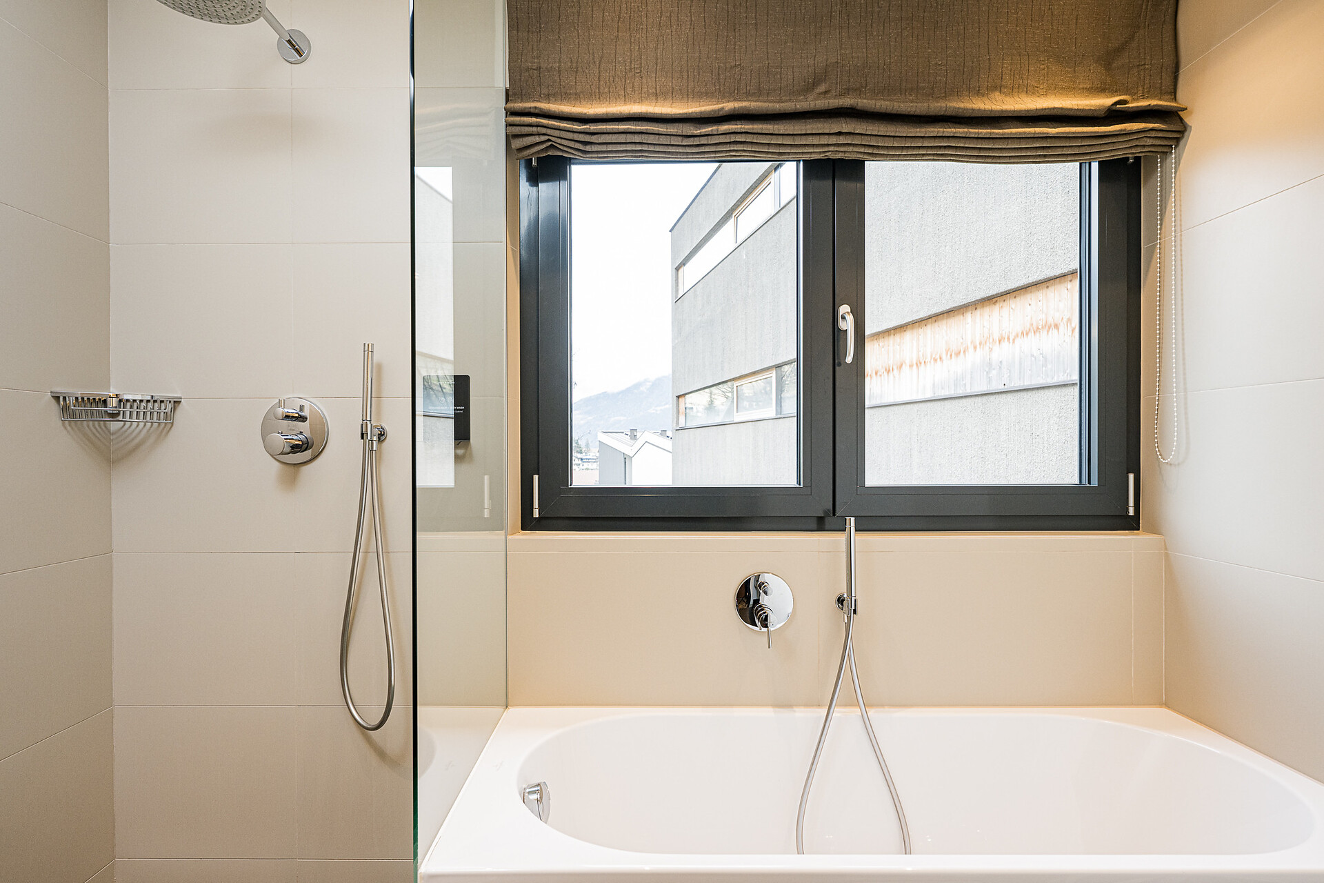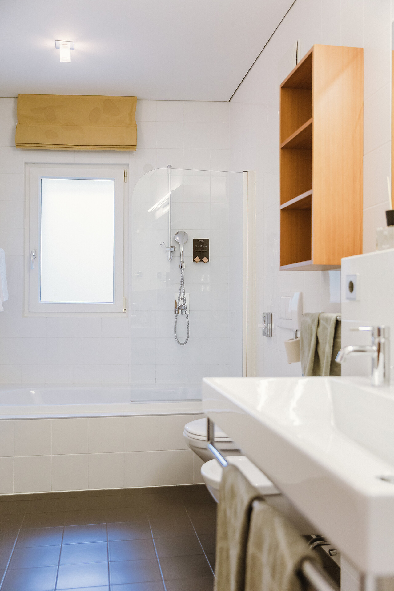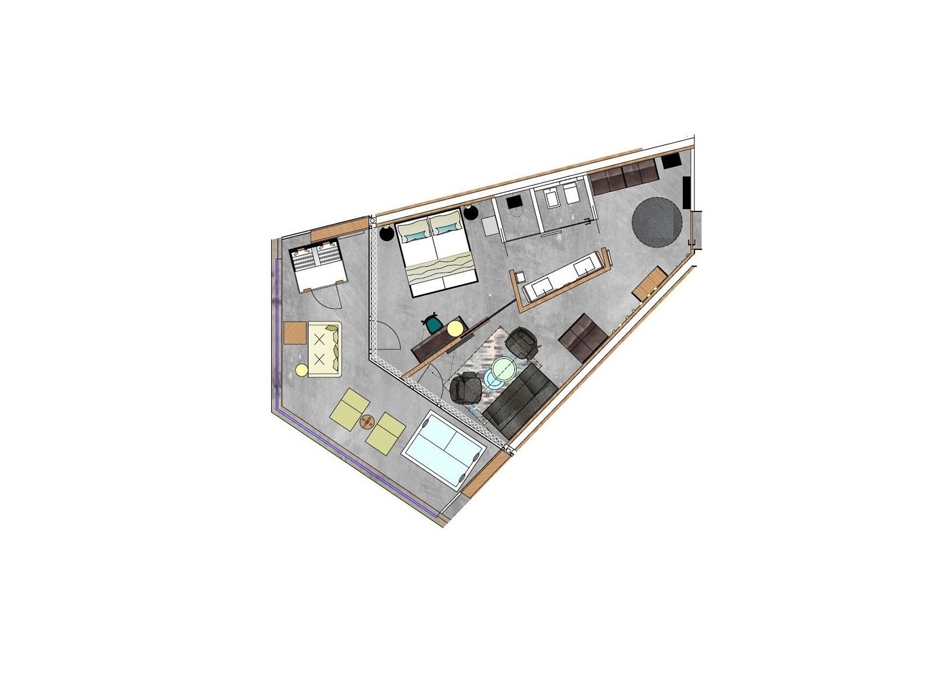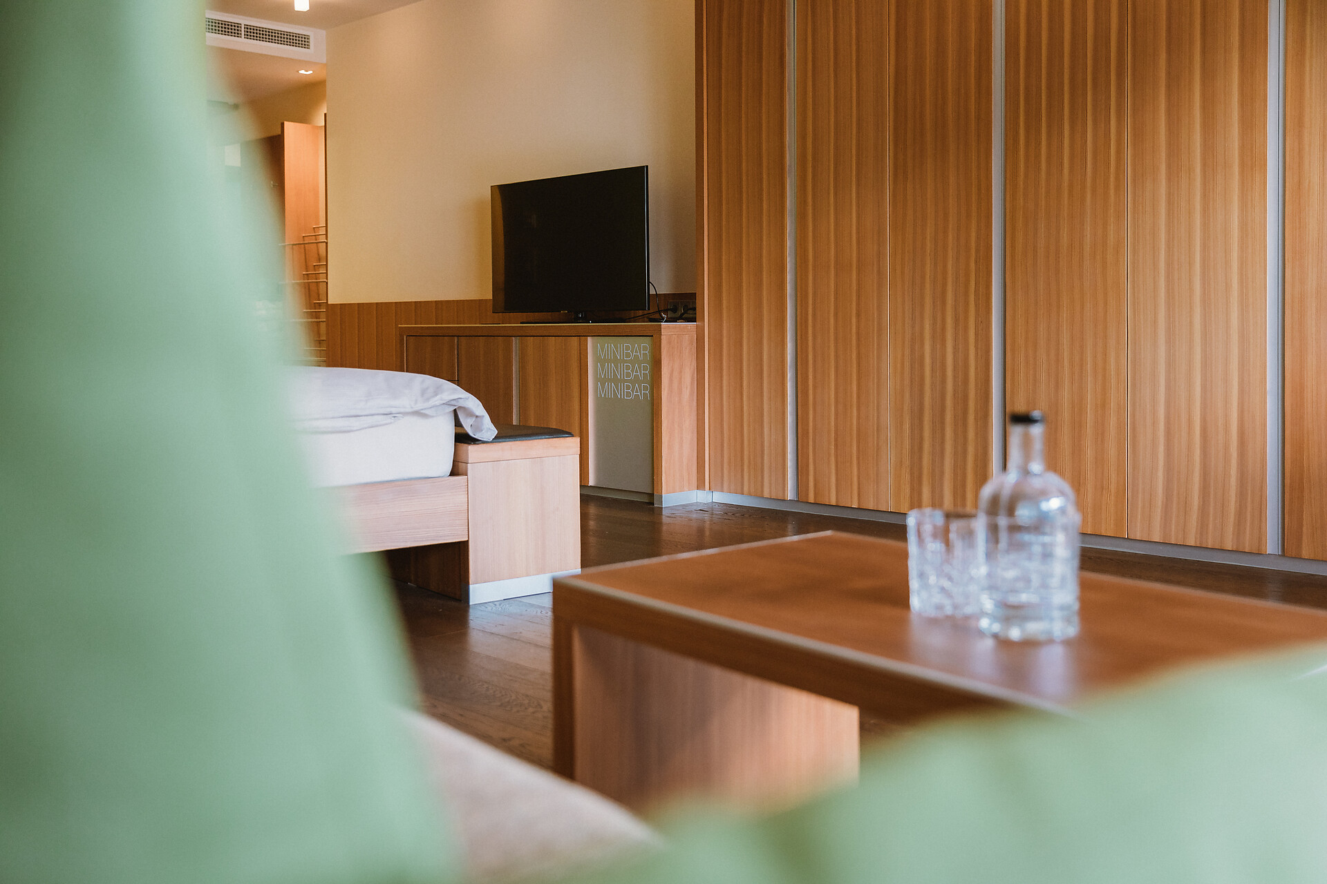 Black & White Suite (70 m², 2-4 Personen): Luxussuite im 5. Stock, geräumiger Wohn-Schlafraum, luxuriöse Couch, Sitzecke, Massagestuhl, abgetrenntes Kinderschlafzimmer mit Stockbetten, Marmorboden, Bad mit Dusche und Badewanne, separates-WC, Flat-TV, gratis W-Lan, Minibar, Safe, offener Kamin, Süd-Ost Terrasse von 40m² mit Panorama-Bio-& Finnische Sauna, Tauchbecken, Kuschelliege, Garage