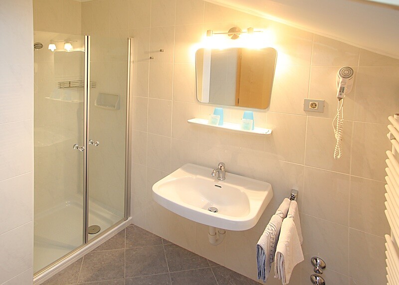 Doppelzimmer, Doppelbett, Zustellbett, Balkon, Dusche / Bad, Separates WC, Haarfön, TV, Satellit/Kabel, WLAN, Haupthaus, Südseite