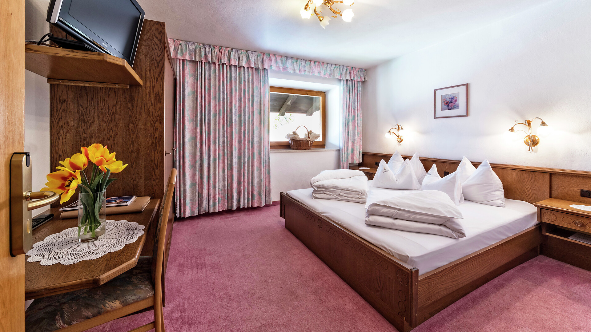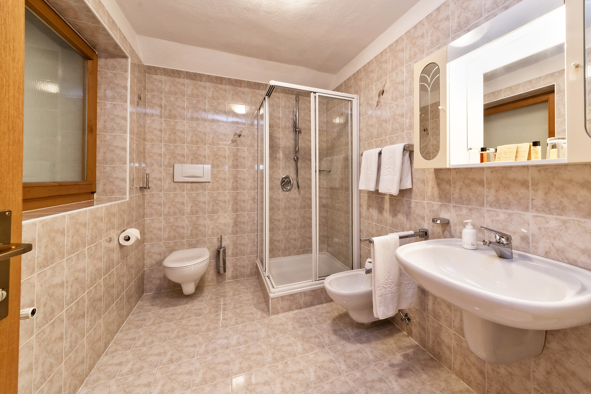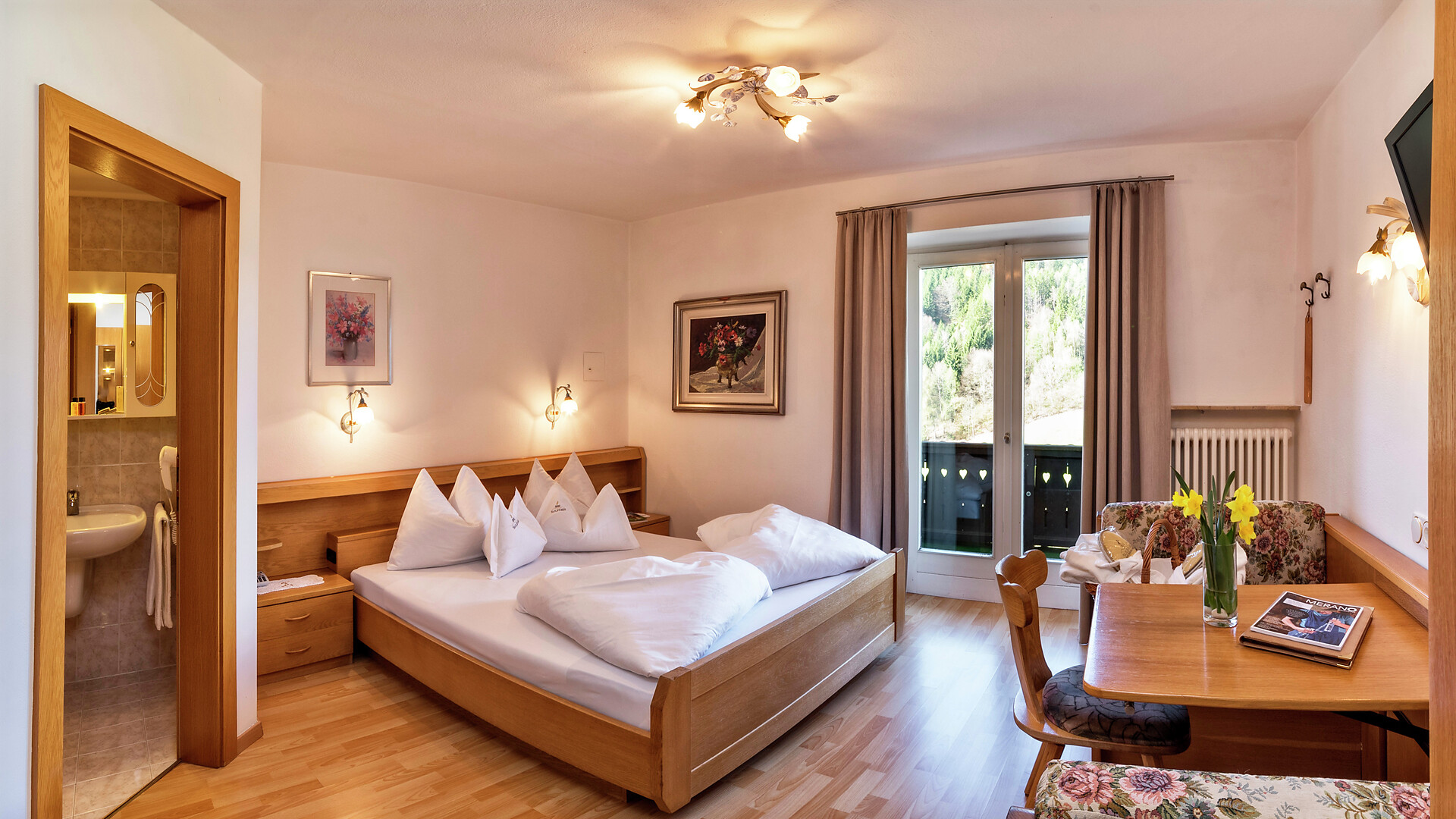 Dusche, WC, Föhn, Schlaf- und Wohnraum, Telefon, Radio, Sat-TV, Wireless, Safe und Südbalkon.