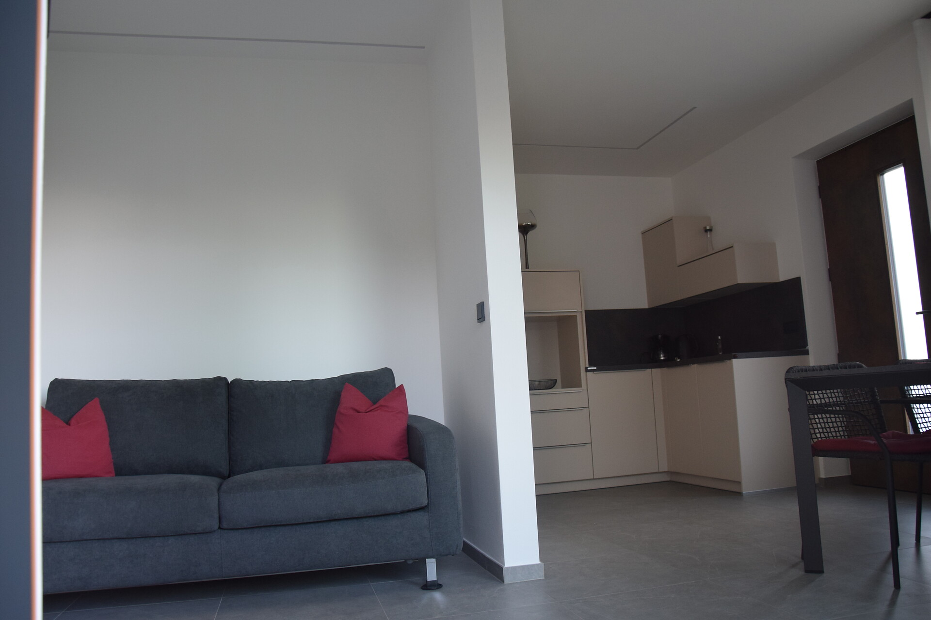 Unser 38 m2 Appartement Pinot Grigio ist für 2 – 4 Personen geeignet. Die Wohnung besteht aus einer Wohnküche mit Schlafsofa, ein getrenntes Schlafzimmer, einem Bad mit Dusche WC und Bidet und einer Terrasse mit angrenzendem Garten in Richtung Südosten. Für wohlige Wärme im Winter sorgt eine Fußbodenheizung.