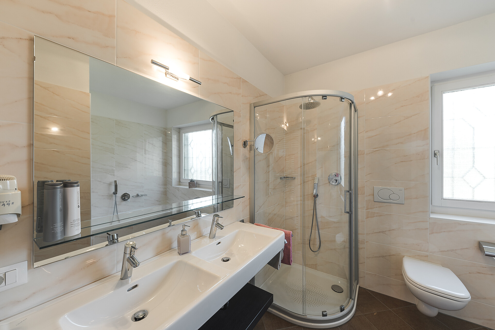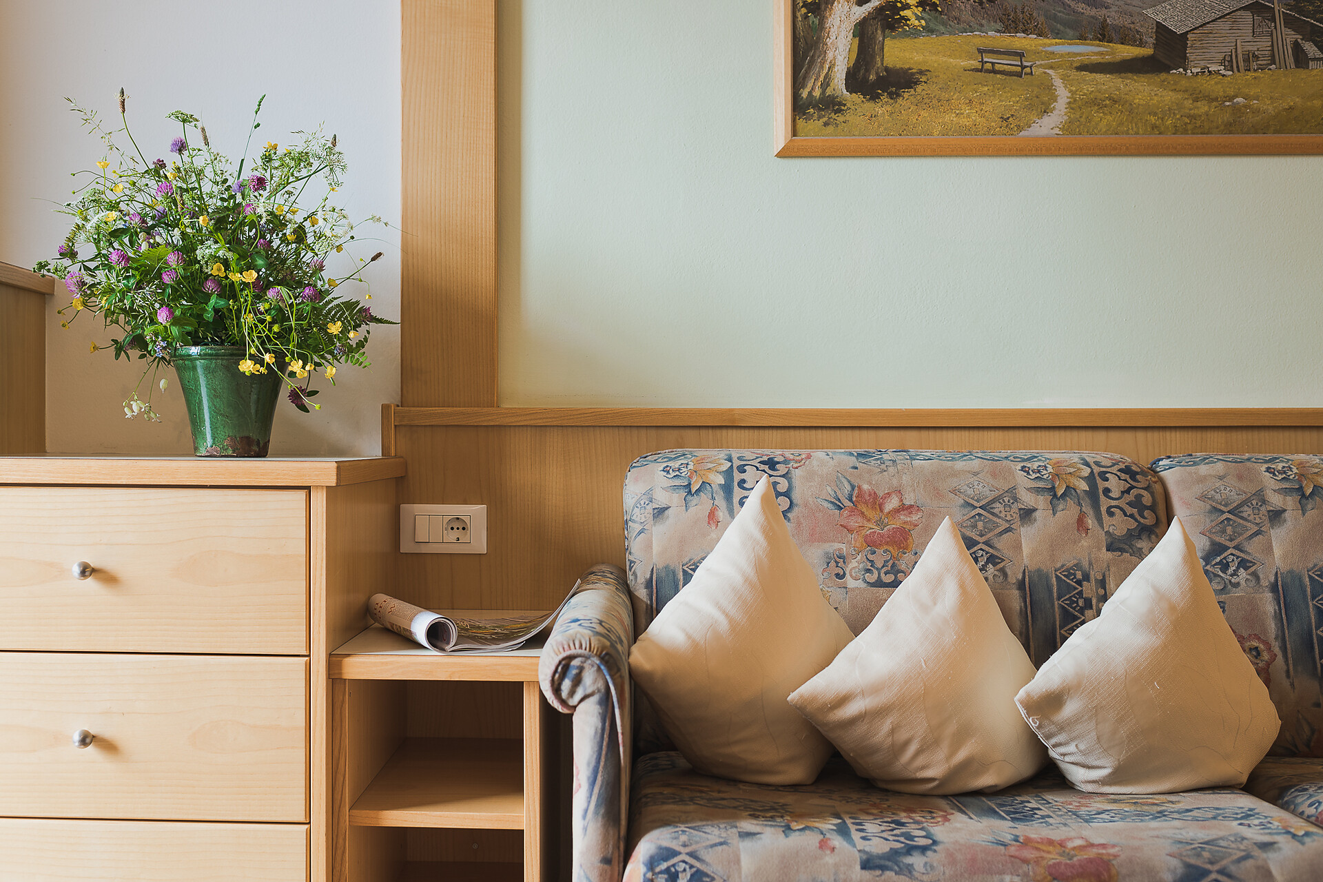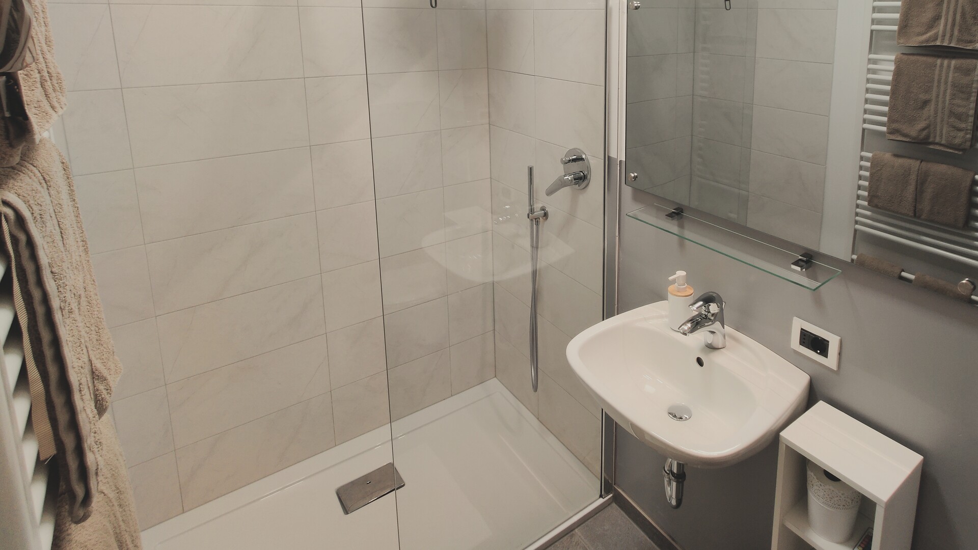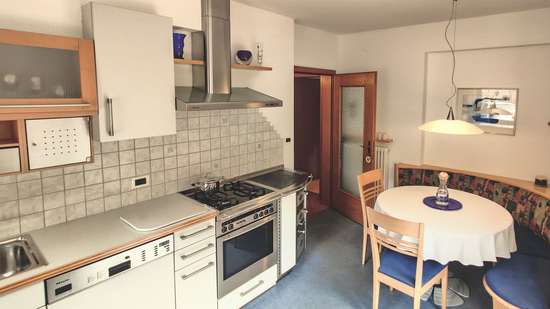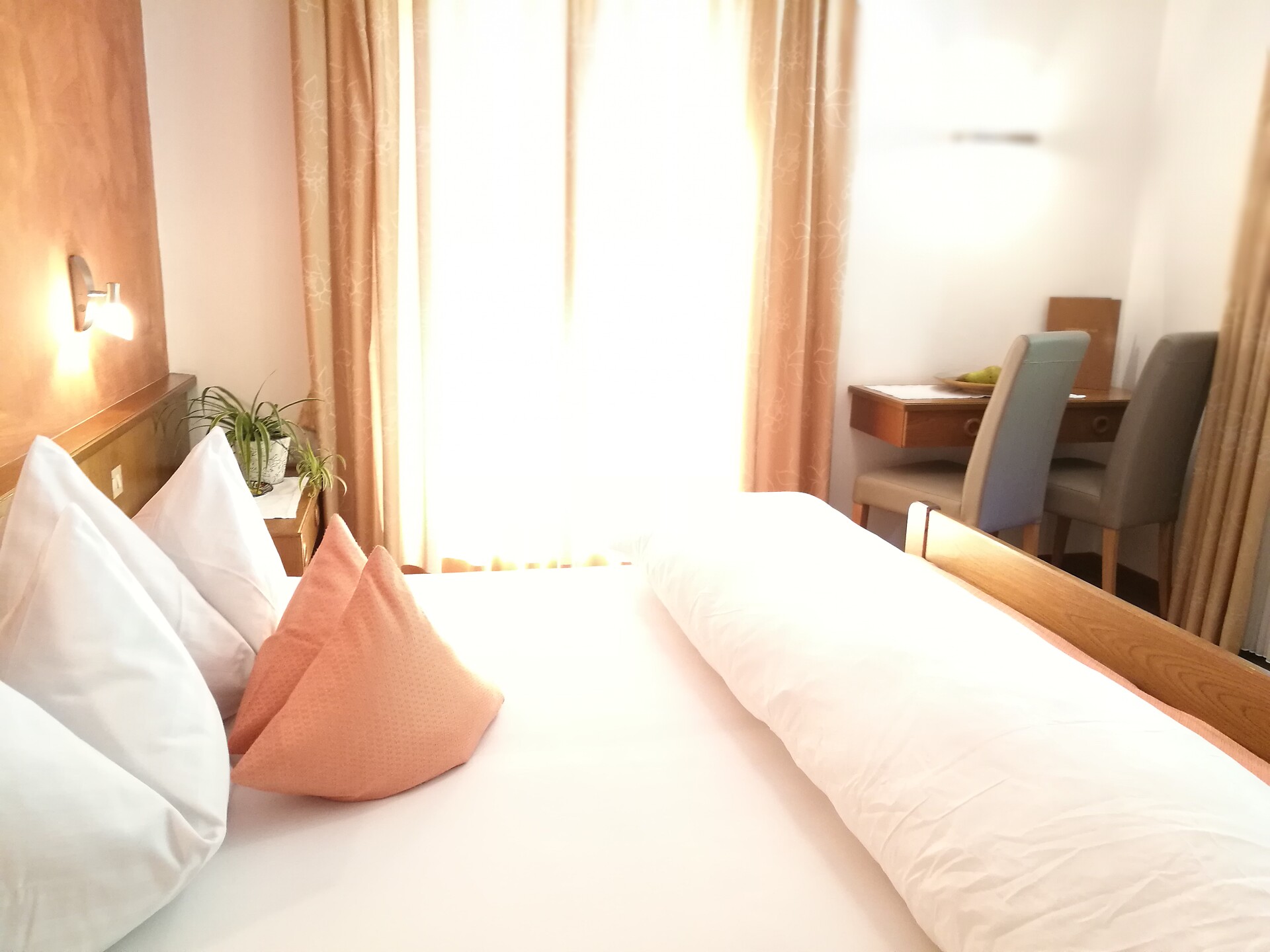 Ferienapartment Christine ca. 53 m² / 2 - 4 Personen / ebenerdig Ideal für Familien und für Paare oder Freundinnen, die getrennt schlafen möchten. Das Besondere an dieser Wohnung: Großes Badezimmer mit Dusche und Badewanne. Die Terrasse hat direkten Zugang zu unserer Apfelwiese "Gala" und einen schönen Blick auf die Apfelwiesen und auf die Berge Ifinger und Hirzer. Ausstattung • 2 Schlafzimmer, eines mit SAT TV (43 Zoll) • Großes Badezimmer mit Tageslicht, Doppelwaschbecken, Regendusche und Badewanne, Kosmetikspiegel und Föhn. • Wohnraum mit Doppelschlafcouch, SAT TV (43 Zoll), Küchenzeile und Essecke. Spülmaschine, Kühlschrank mit Gefrierfach, zwei Kochfelder, Kaffeemaschine (Filter), Wasserkocher und Geschirr. Spülmittel und Tabs sind vorhanden. • Großzügige Terrasse mit Holzmöbel, Sonnenschirm und direkten Zugang nach Draußen • Beschattung durch Jalousien, Safe im Apartment • Leihregenschirm und Holzschuhlöffel • Wlan • Bettwäsche und Handtücher sind vorhanden und werden jederzeit auf Wunsch gewechselt. Bitte Badetücher f&uu