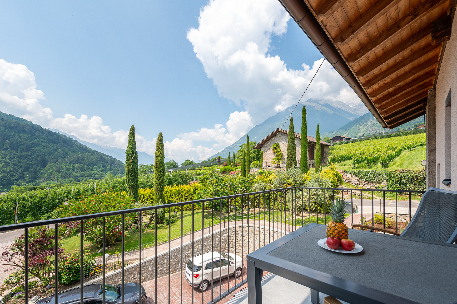 Verschiedene Wanderwege, beispielsweise der jahrhundertealte Algunder Waalweg und der Marlinger Waalweg beginnen unter dem Haus. Optimale Busverbindung nach Algund, Meran, Vellau, Partschins!