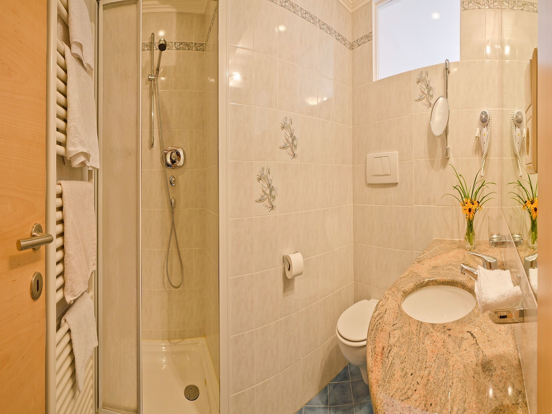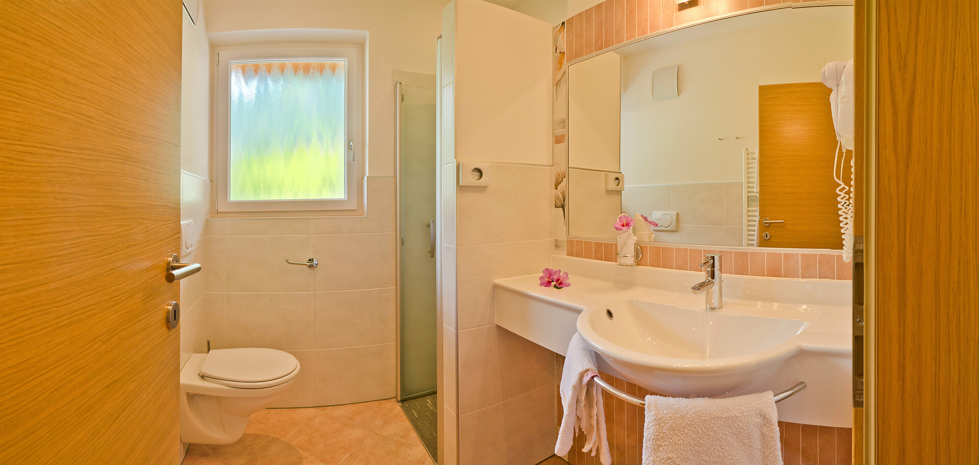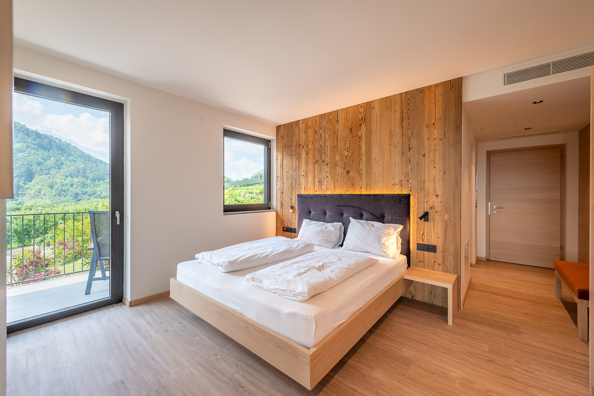 Doppelzimmer, Doppelbett, Balkon, Allergikerzimmer, Safe, Dusche / Bad, Haarfön, TV, Satellit/Kabel, WLAN, Internetanschluss, Haupthaus, Panoramablick, Südseite