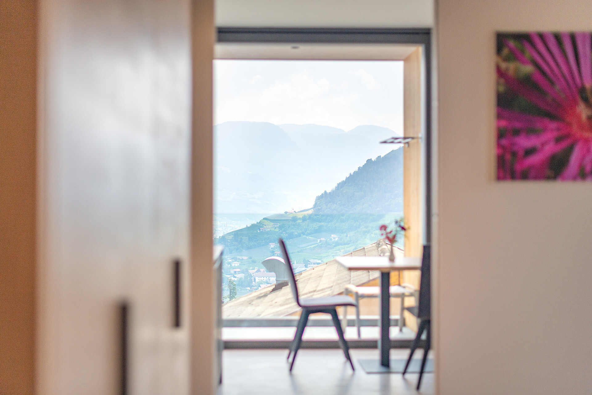 Unsere Suite Apfelblüte 55m² mit Süd- Ostbalkon und herrlichen Blick auf Schloss Tirol und Meran. Diese Suite hat ein geräumiges Schlafzimmer mit zwei Fenster, einen Wohnraum mit Südbalkon und Panoramablick, eine gemütliche Sitzecke, Sofa (mit Matratze), Sat-TV, Safe, Telefon sowie Wifi in allen Bereichen. Das Bad ist modern eingerichtet, mit einem großen Fenster, Dusche/WC und Fön. Die gut ausgestattete Küche kann zum Aufpreis dazu gebucht werden.