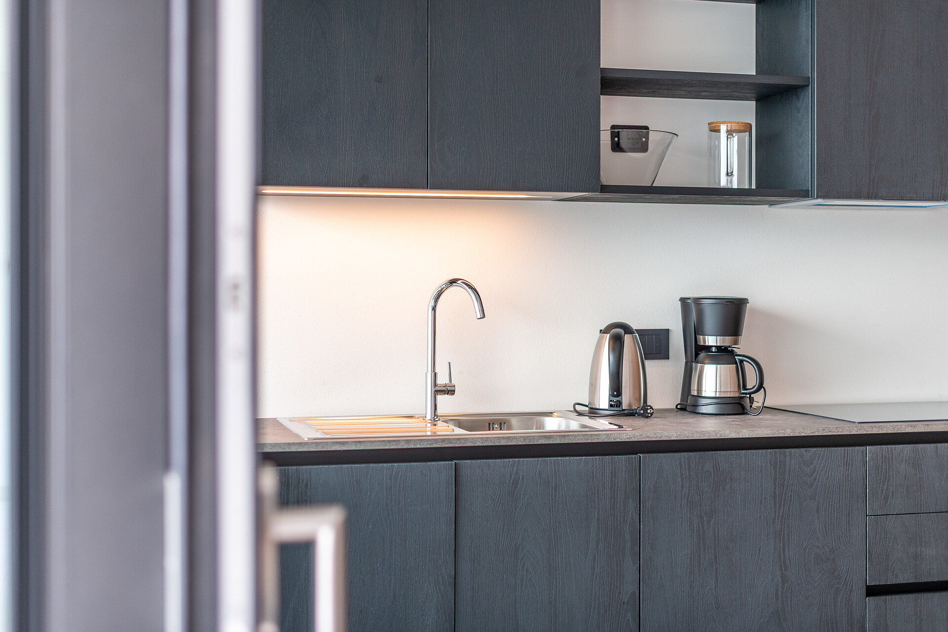 Diese Wohnung hat 38m², ein modernes Bad, eine voll eingerichtete Küche mit Spülmaschine, Induktionsherd,, Toaster, Kaffeemaschine und einen sonnigen Westbalkon mit Blick in den Vinschgau und eine windgeschützte Loggia mit seitlichen Blick auf Dorf Tirol.