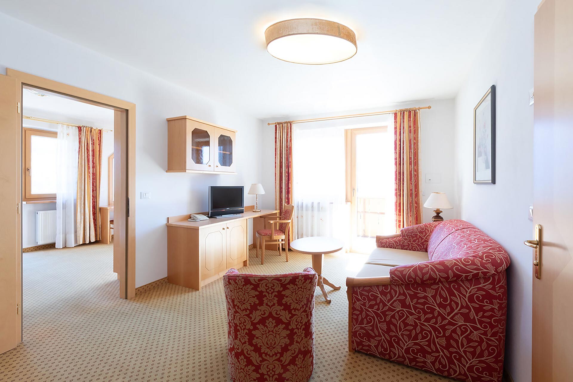 Suite, Doppelbett, Bettsofa, Balkon, Wohnecke, Minibar, Safe, Dusche / Bad, Bidet, Haarfön, Bademantel, TV, Satellit/Kabel, WLAN, Dependance, Südseite