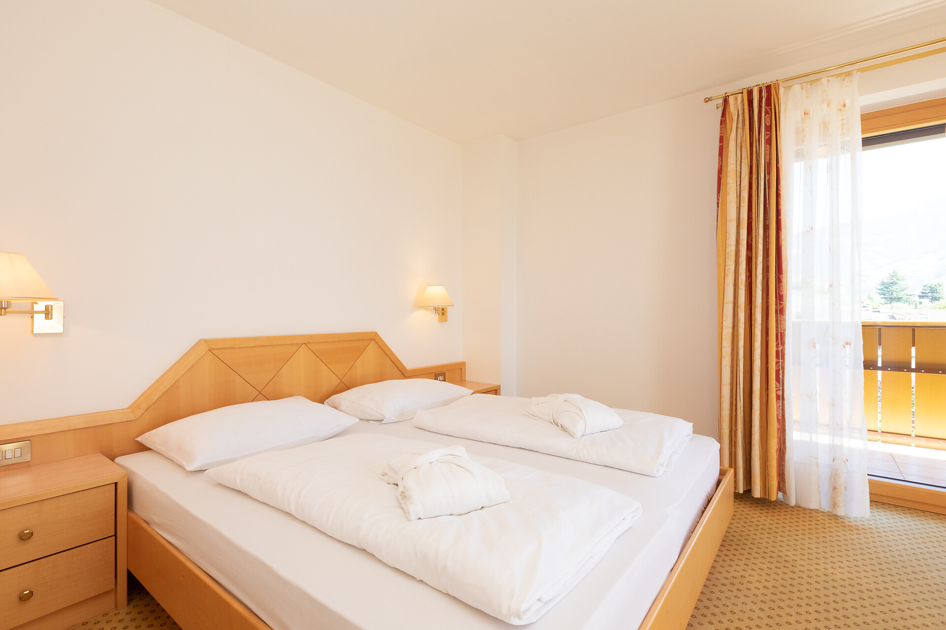 Doppelzimmer, Doppelbett, Balkon, Terrasse, Wohnecke, Minibar, Safe, Dusche / Bad, Bidet, Haarfön, Bademantel, TV, Satellit/Kabel, WLAN, Dependance, Südseite