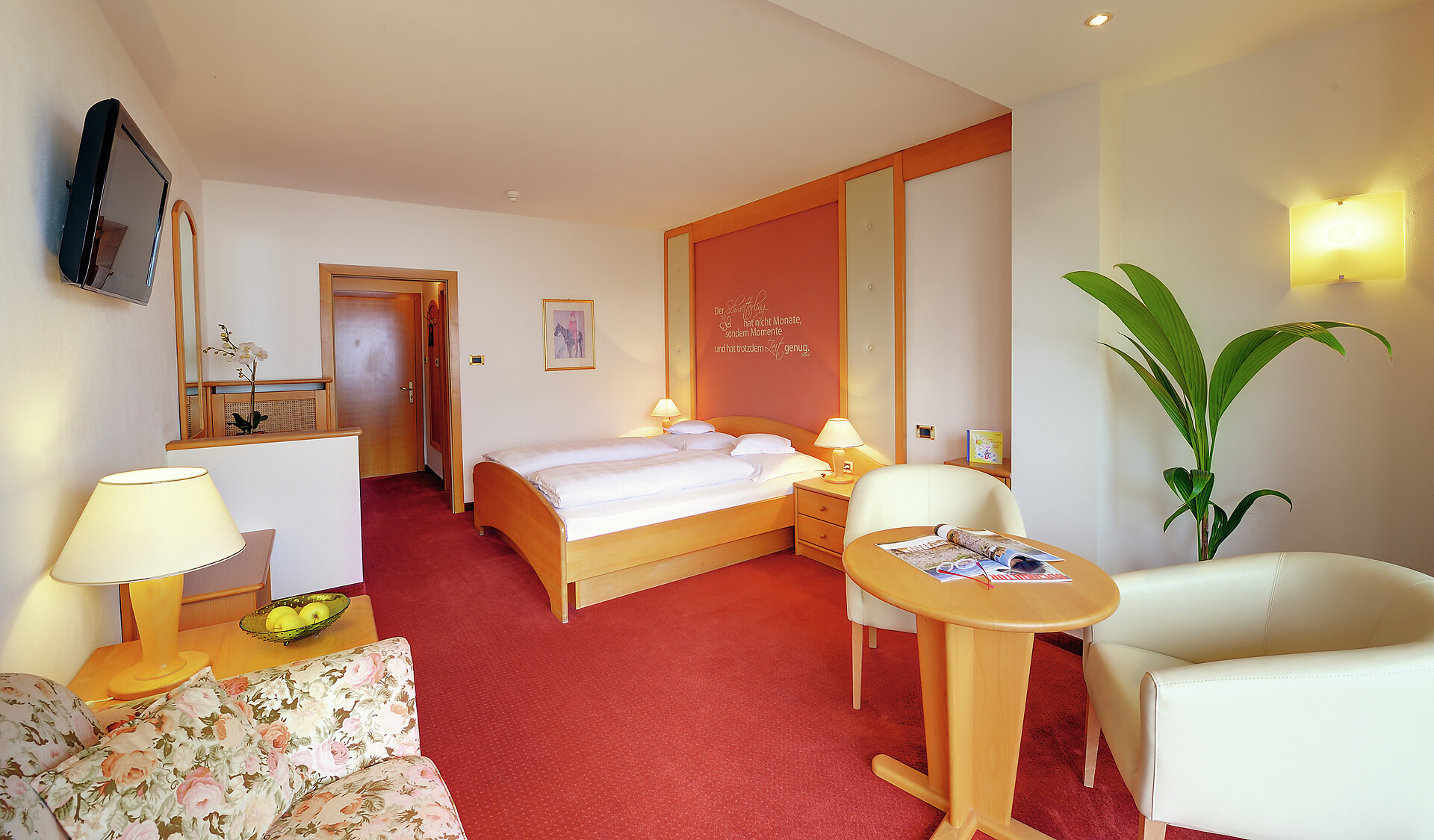 Die Mohnsuiten können auch als FEWO ohne Verpflegung gemietet werden. Fragen Sie dafür direkt im Hotel an.