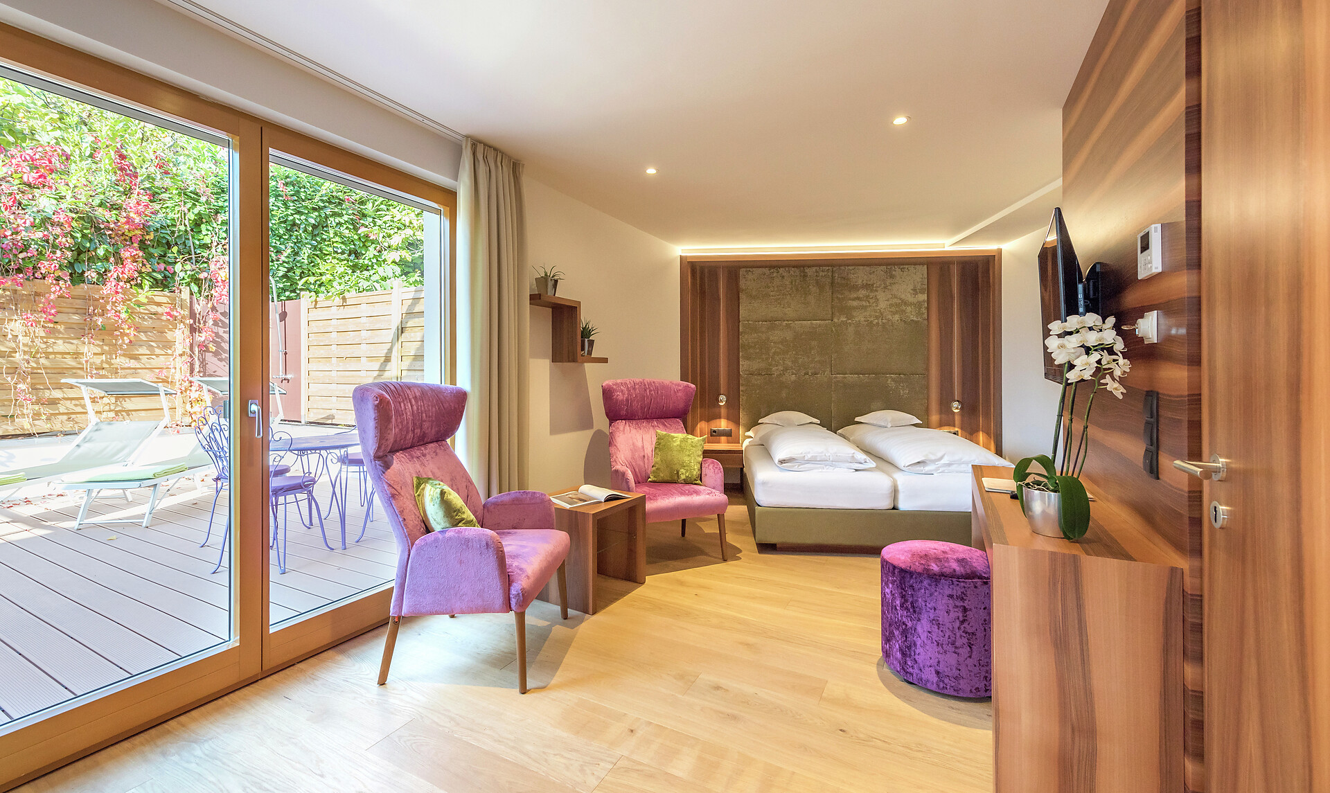 Familiäre Südtiroler Gastlichkeit erwartet Sie vom ersten bis zum letzten Urlaubstag. Viel Licht, viel Holz, viele Blumen – spiegeln unsere Naturverbundenheit wider. Aber auch klare Linien, kombiniert mit einheimischen Hölzern, lassen die neuen Suiten zu besonderen Lebensräumen werden. Unkomplizierte, frische und saisonale Südtiroler Küche mit mediterraner Leichtigkeit servieren wir in unserem Ristorantino "il giardinetto". Endlich mehr Freiraum für unsere Gäste, essen Sie wann immer Sie Lust haben bei uns...