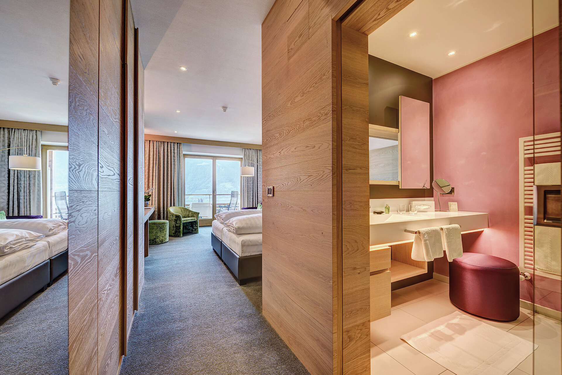 Möchten Sie - durch Verbindungstür - getrennt schlafen, dann ist dies in diesen Zimmern möglich.