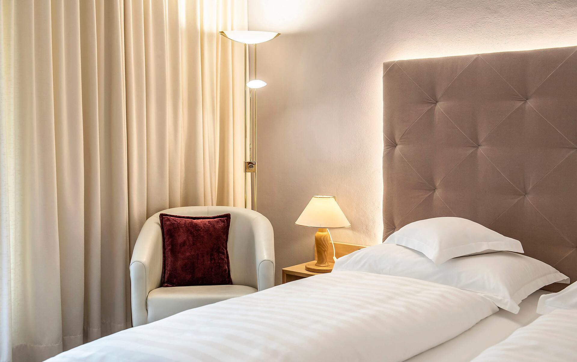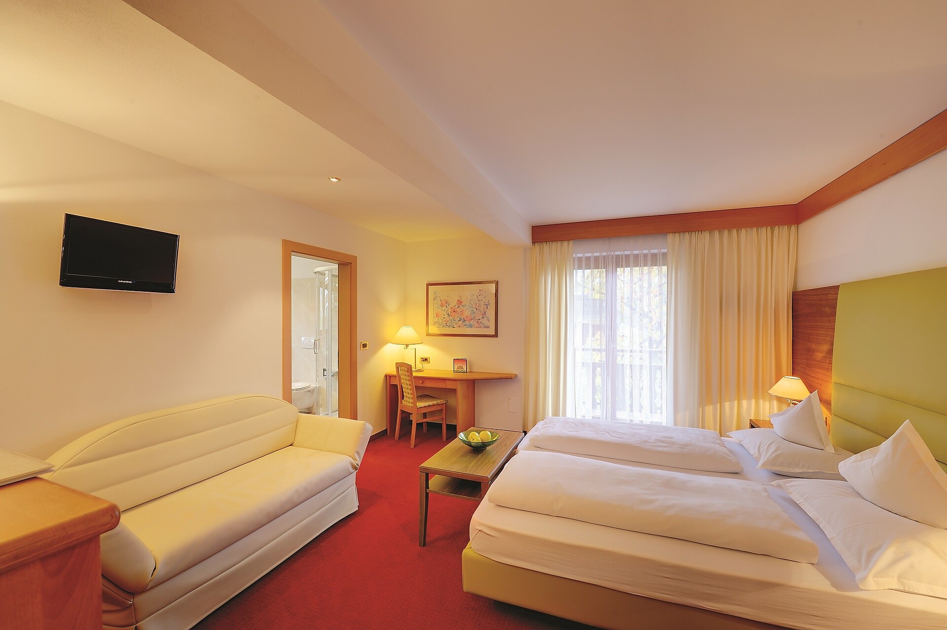 Möchten Sie - durch Verbindungstür - getrennt schlafen, dann ist dies in einigen Zimmern dieser Kategorie möglich. Nähere Auskunft telefonisch oder per Email.
