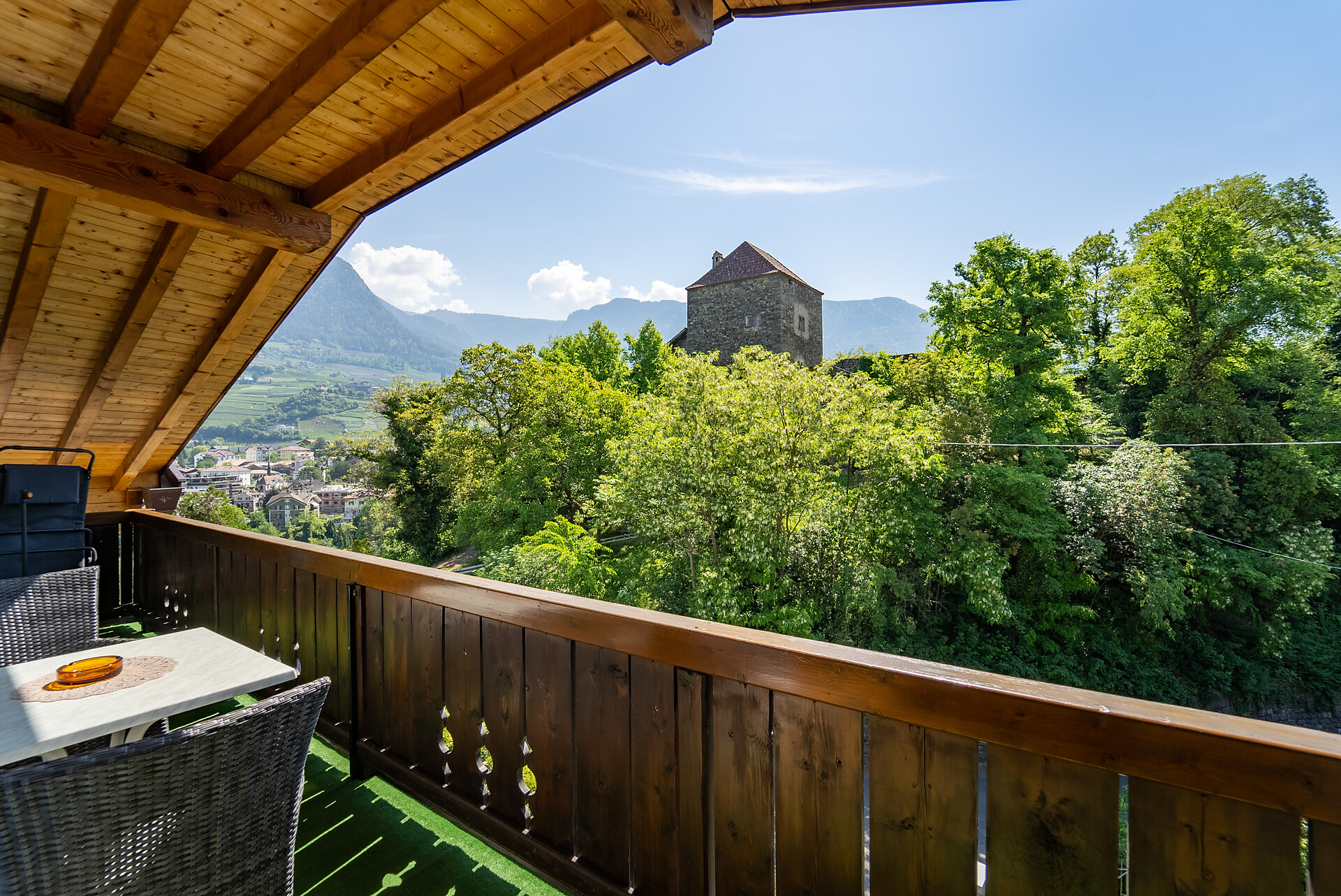 - Balkon mit Liegestuhl, Sonnenschirm und gemütlicher Sitzgelegenheit.