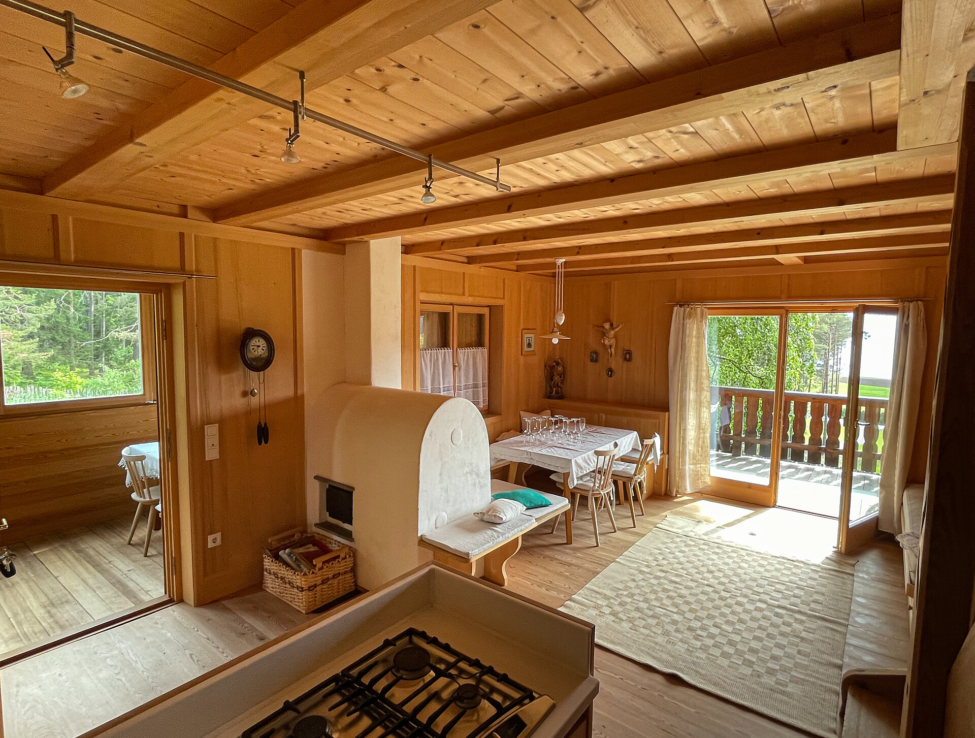 Einzelbett, Doppelbett, Babybett, Bettsofa, Balkon, Terrasse, Garten, Kachelofen/Offener Kamin, Bettwäsche vorhanden, Nichtraucher-Apartment, 2 oder mehr Schlafzimmer, Wohnküche, Kaffeemaschine, Geschirrspülmaschine, Gasherd, Geschirrausstattung, Kochfeld, Wasserkocher, Backrohr, Dusche/Bad, Haarfön, Badetücher, Waschmaschine im Apartment, TV, WLAN, Internetanschluss, Haupthaus, Panoramablick, Südseite