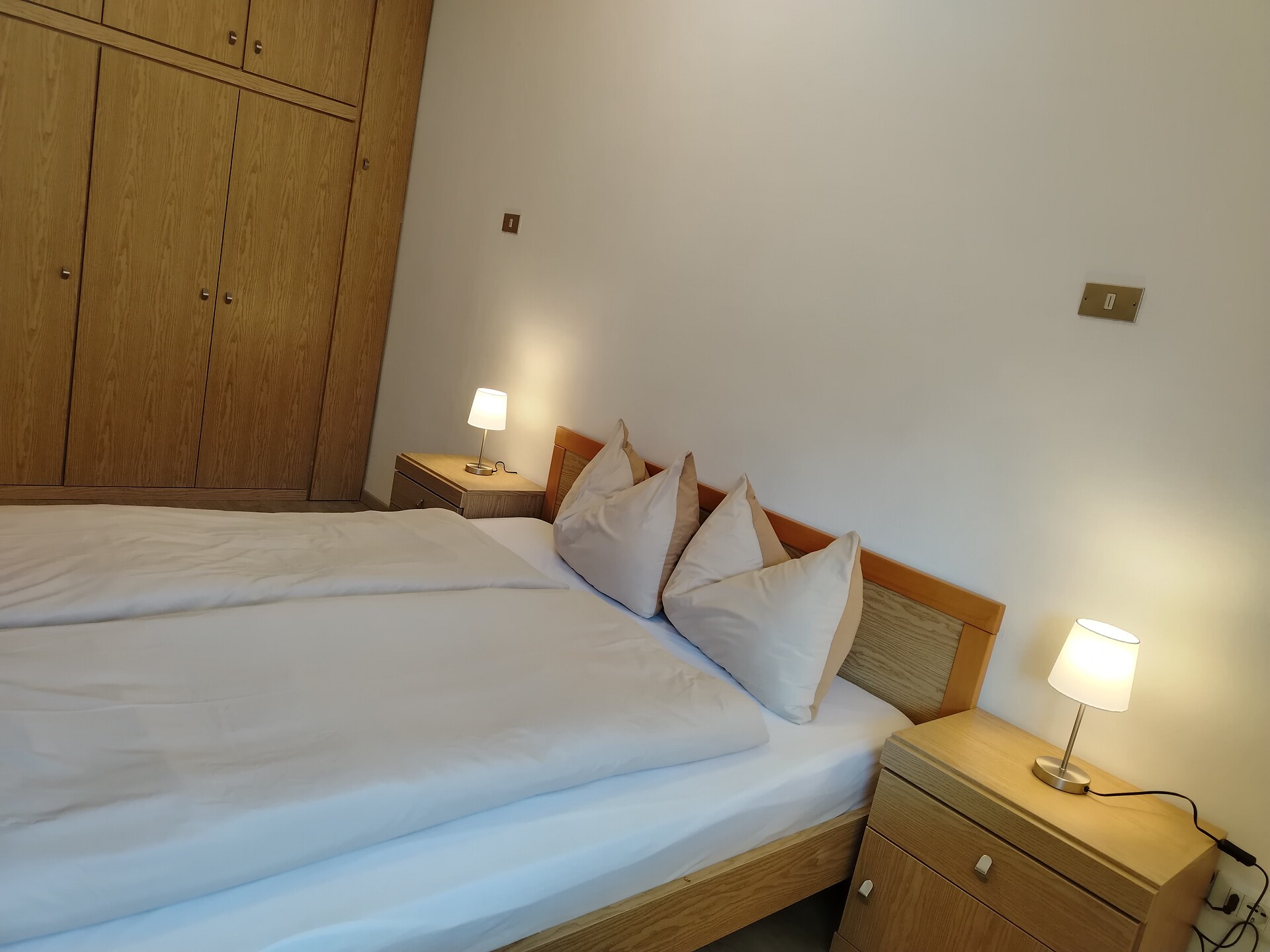 Die helle und gemütliche 32 m2 Ferienwohnung ist ideal für 2 Personen und für Familien mit kleinen Kindern und bietet eine freundliche Atmosphäre zum Wohlfühlen. Vom Eingangsbereich aus sind die voll ausgestattete Küche und das moderne Bad erreichbar. Der Wohn- und Schlafraum ist komfortabel eingerichtet und verfügt über ein Doppelbett sowie eine Schlafcouch (135cm x 140cm). Bettwäsche und Handtücher sind vorhanden. Auf Anfrage steht ein abschließbarer Fahrradraum zur Verfügung; ebenso auf Anfrage ein