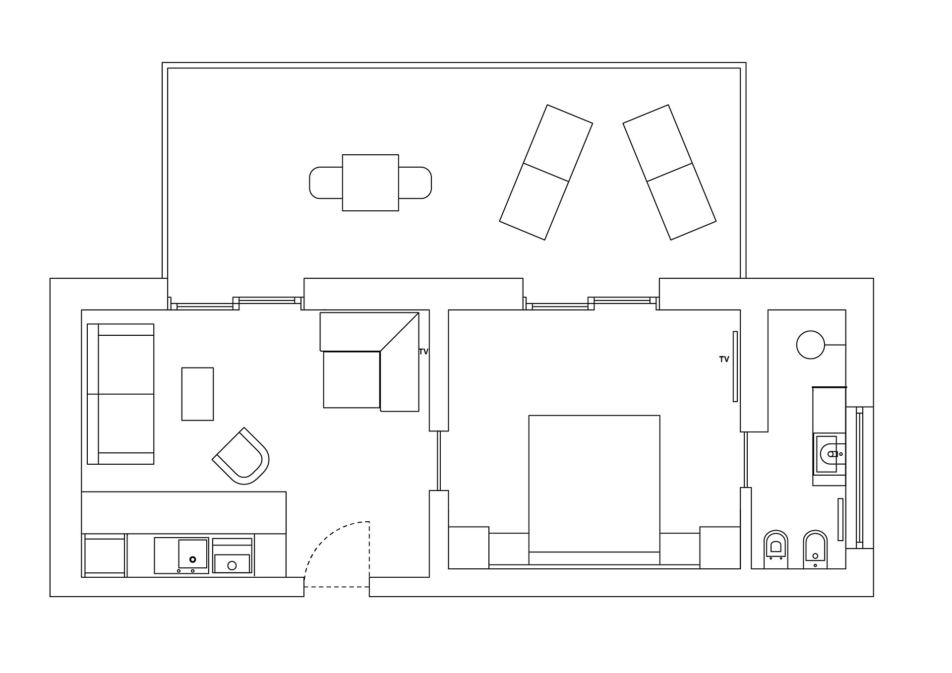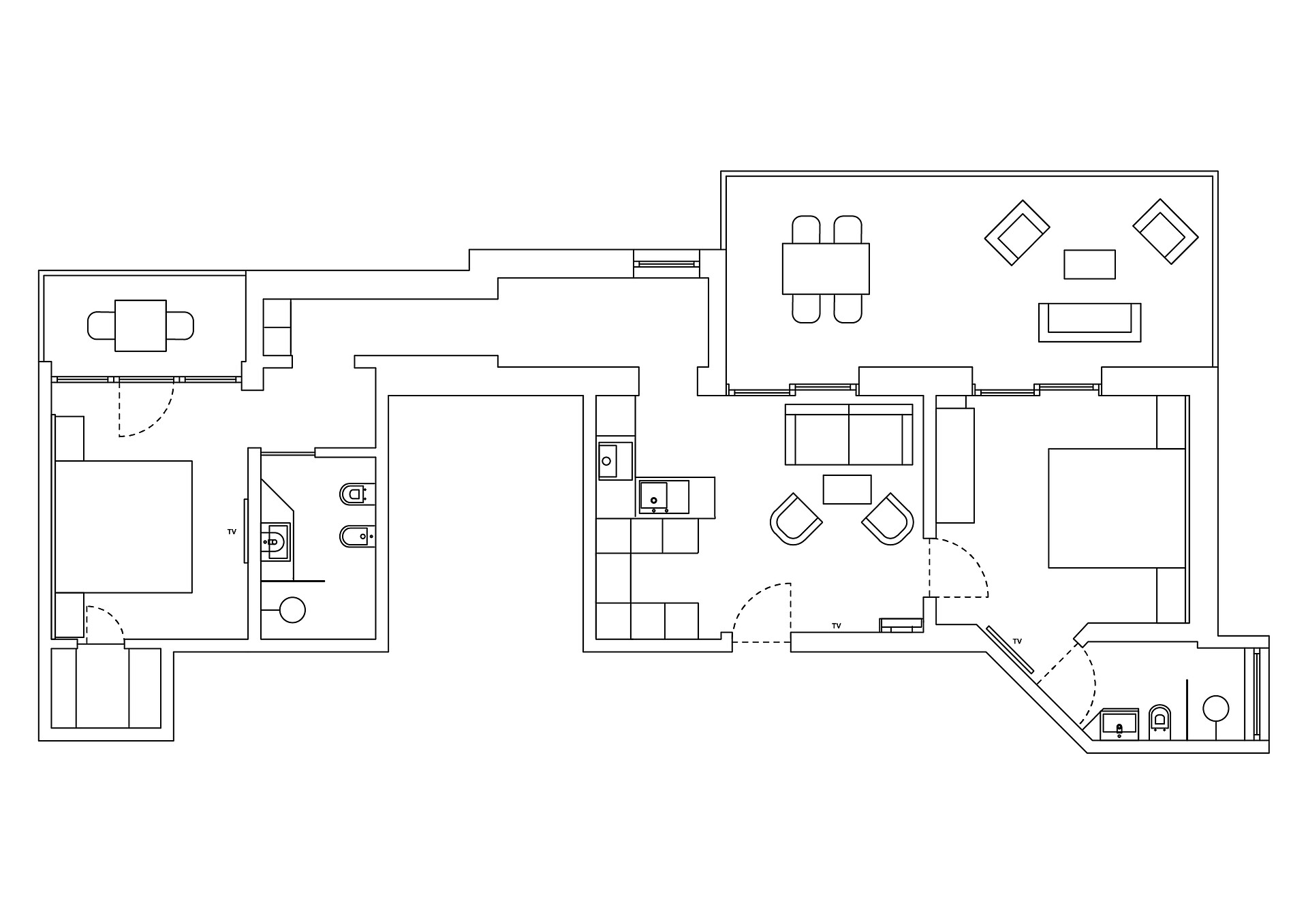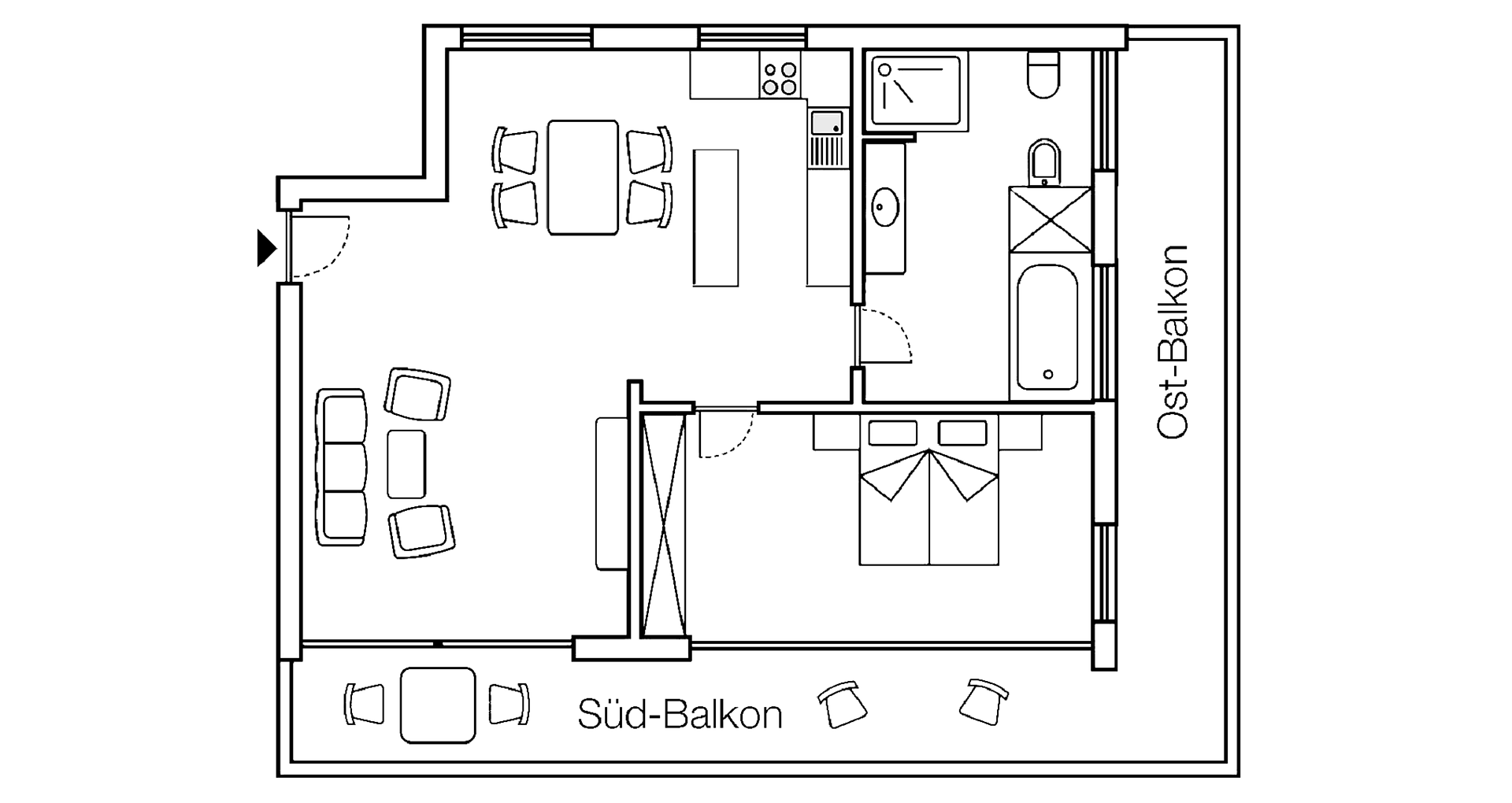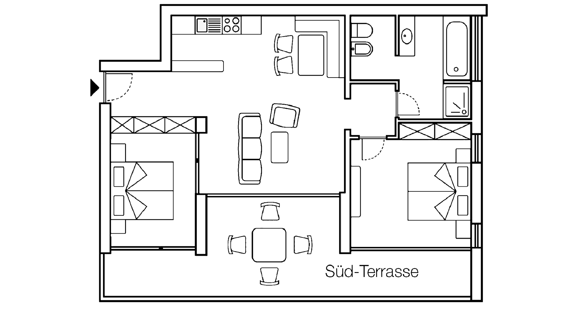 Das Appartement verfügt über 2 Doppelzimmer, einen Wohnraum mit Flat-TV, Safe und einer Küchenecke, welche mit Herd, Kühlschrank, Mikrowelle, Geschirrspülmaschine, Wasserkocher, Kaffeemaschine, Toaster und Geschirr ausgestattet ist. Das Badezimmer verfügt über eine Dusche, Badewanne, WC, Bidet, Fön und Beautyspiegel. Handtücher, Pooltücher und Geschirrtücher sind vorhanden.