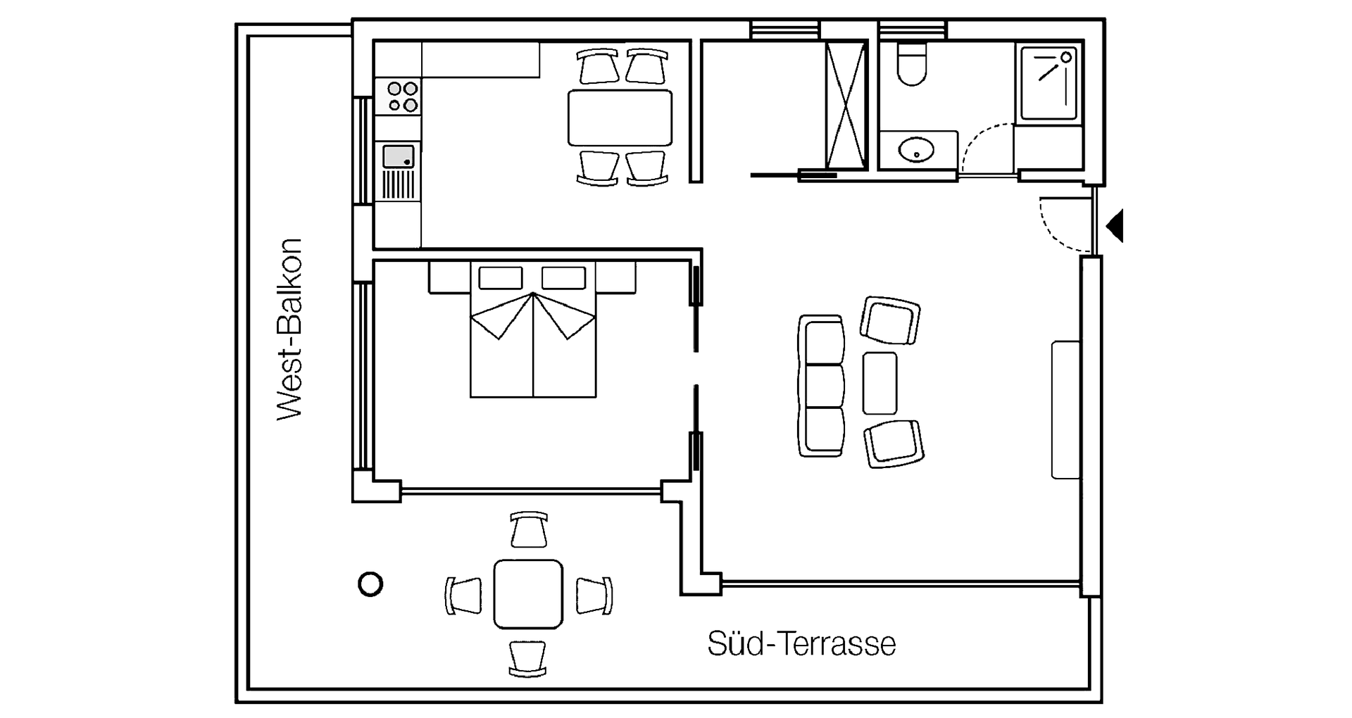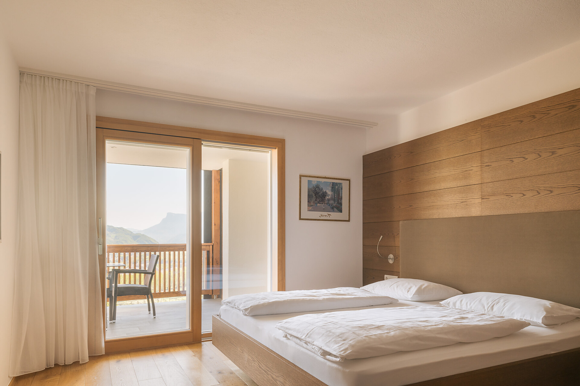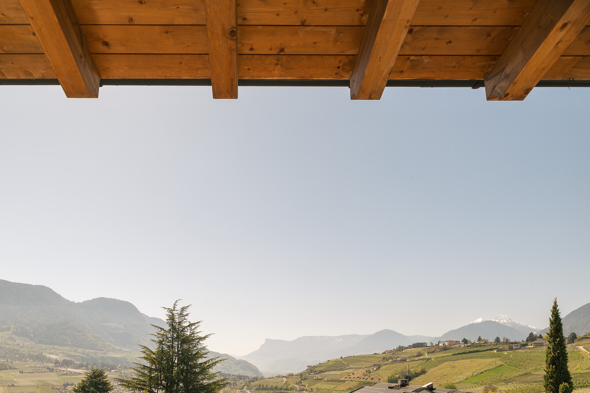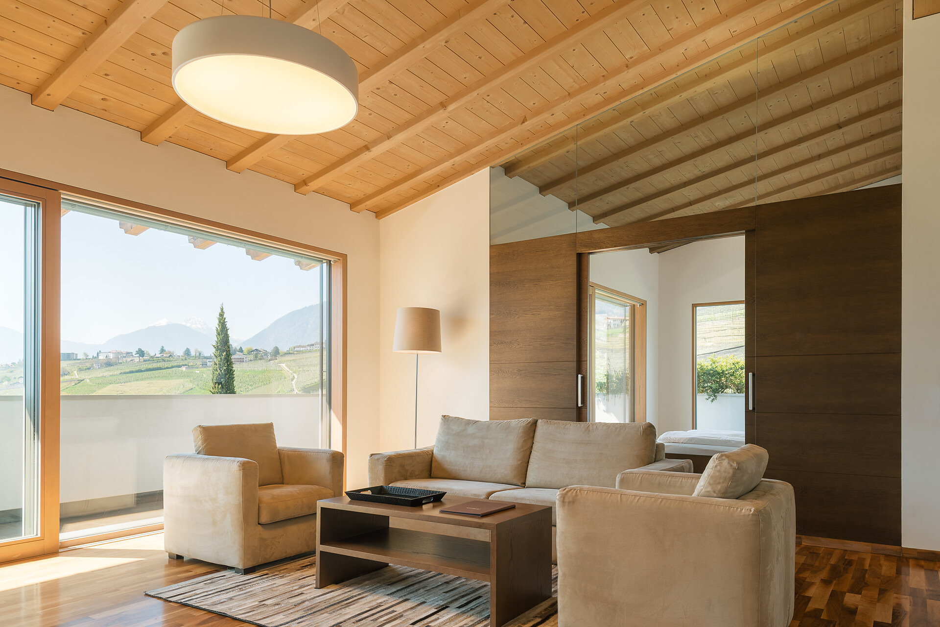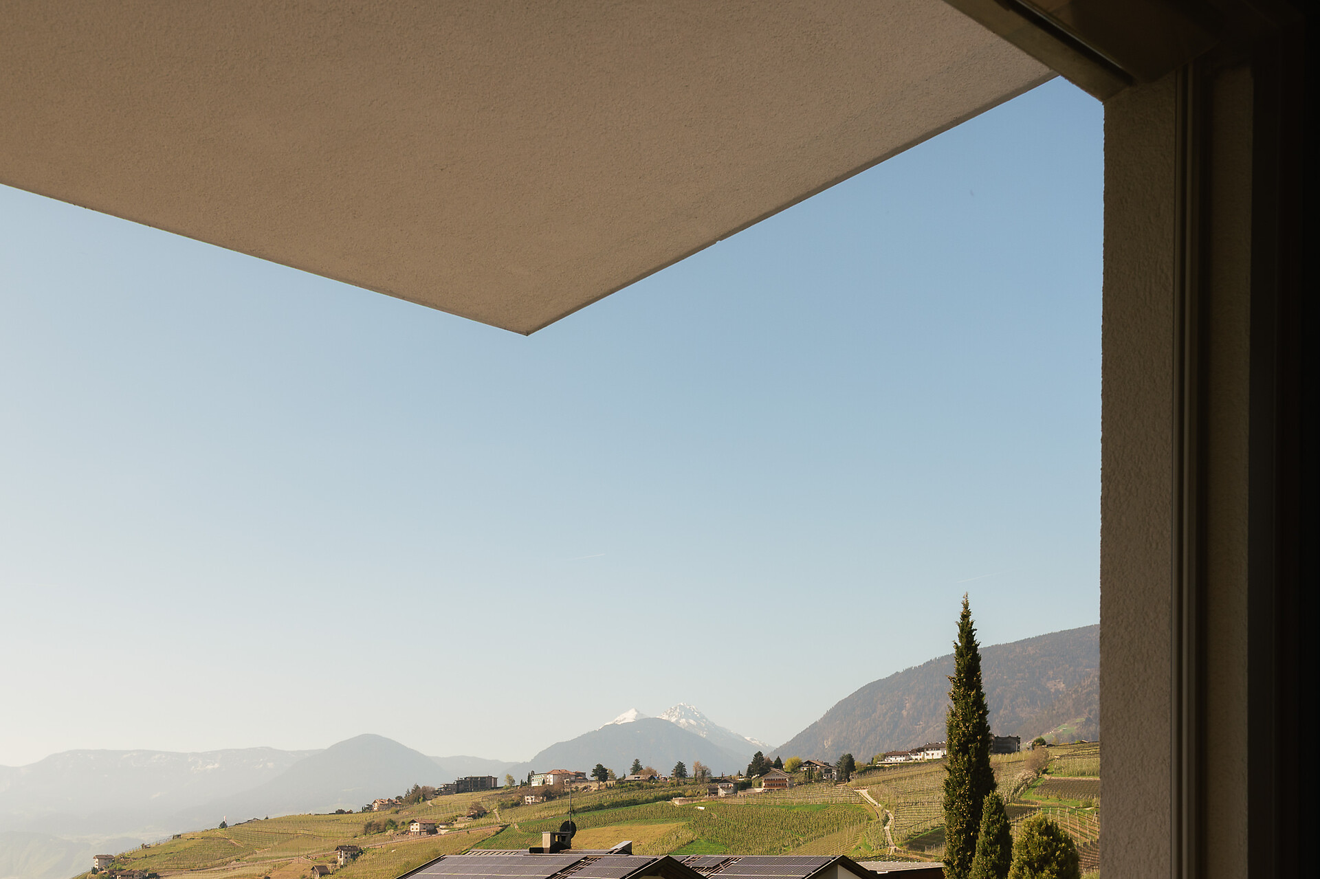 Appartement 1-4, geeignet für 2-4 Personen, ca. 74 m², das Appartement ist mit edlen Materialien und mit Holzboden ausgestattet, es verfügt über eine große überdachte Südterrasse mit Panoramablick auf Meran und das Etschtal, eine Belüftungsanlage reguliert die Be- und Entlüftung sowie Heizung und Kühlung. Alle Fenster und Balkontüren sind mit elektr. Raffstore ausgestattet.