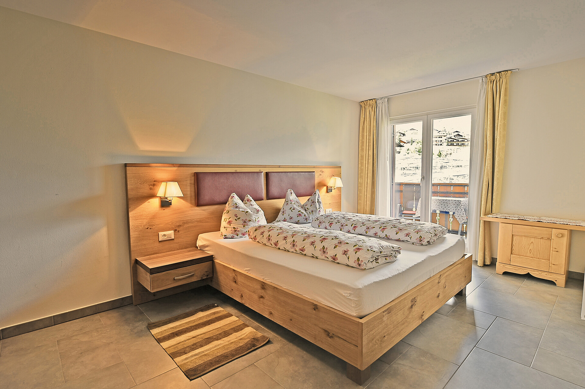 Doppelbett, Doppelschlafcouch, Balkon, Allergikerzimmer, Separater Wohnraum, Bettwäsche vorhanden, Safe, Wohnküche, Kaffeemaschine, Elektroherd, Mikrowelle, Geschirrausstattung, Wasserkocher, Dusche/Bad, Bidet, Haarfön, Badetücher, TV, Satellit/Kabel, WLAN, Reinigung auf Anfrage, Haupthaus, Panoramablick, Südseite