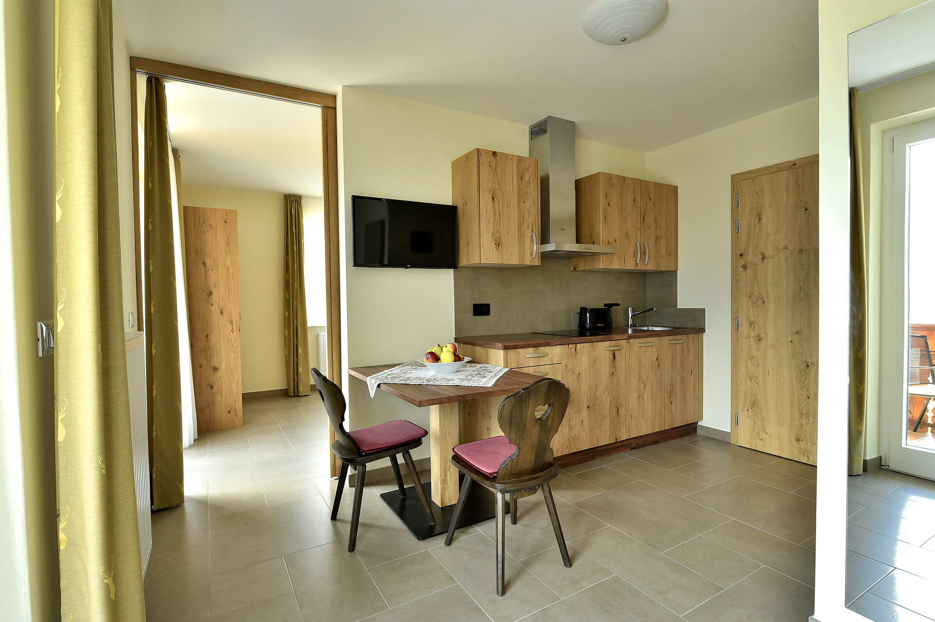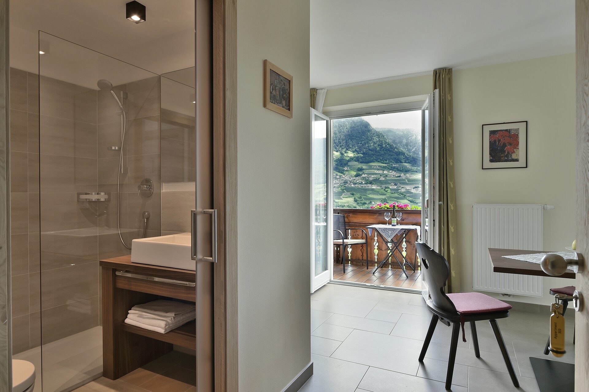 Umgeben von Obstbäumen, absolut ruhig ,ohne Durchfahrtsverkehr liegt unser Appartmenthaus nur 10 Minuten vom Ortskern entfernt. Minigolf, Tennisplätze u. Bushaltestelle in unmittelbarer Nähe. Von jedem unserer App. kann man einen wunderschönen Panoramablick geniessen. Wir bieten Ihnen hochwertig eingerichtete Appartments in einer familiären Atmosphäre.- Unseren Gästen steht ein überdachter /geschlossenen Parkplatz, sowie gratis wifi in allen Appartments zu Verfügung.-