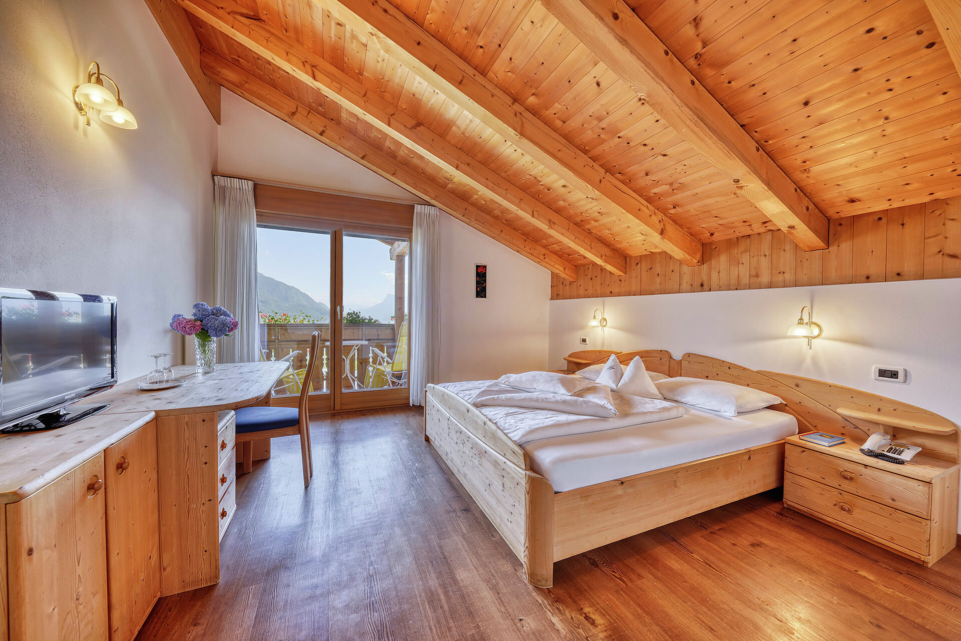 Nice double room with sloped ceiling, Shower/WC, south-facing balcony with magnificent panoramic views, TV, telephone, safe and WIFI