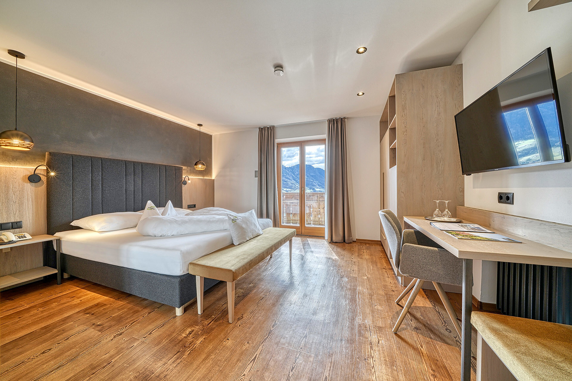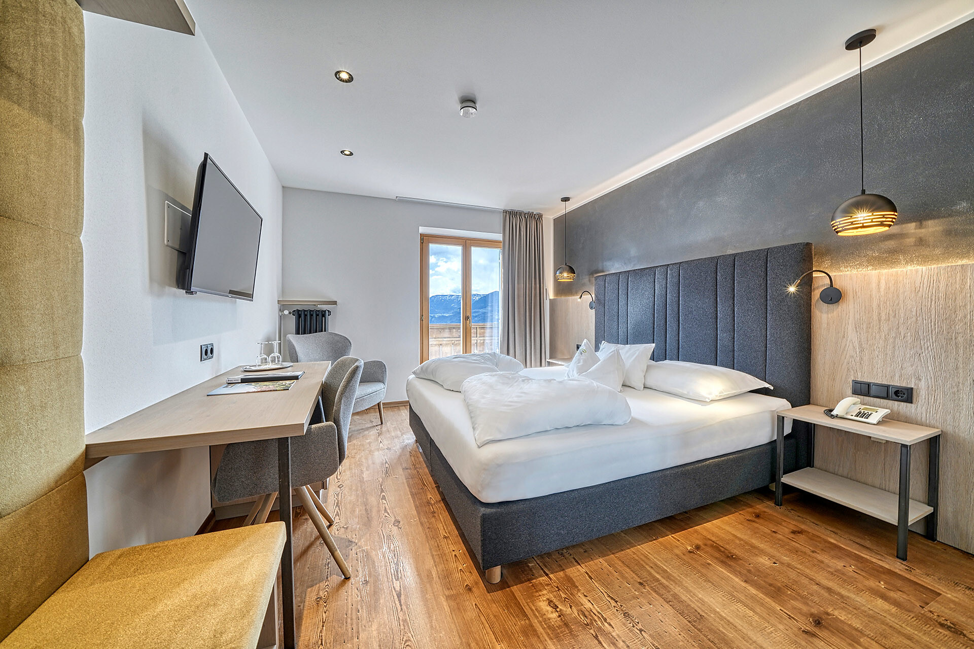 Double room with shower/WC, south-facing balcony with magnificent panoramic views, TV, telephone, safe and WIFI.