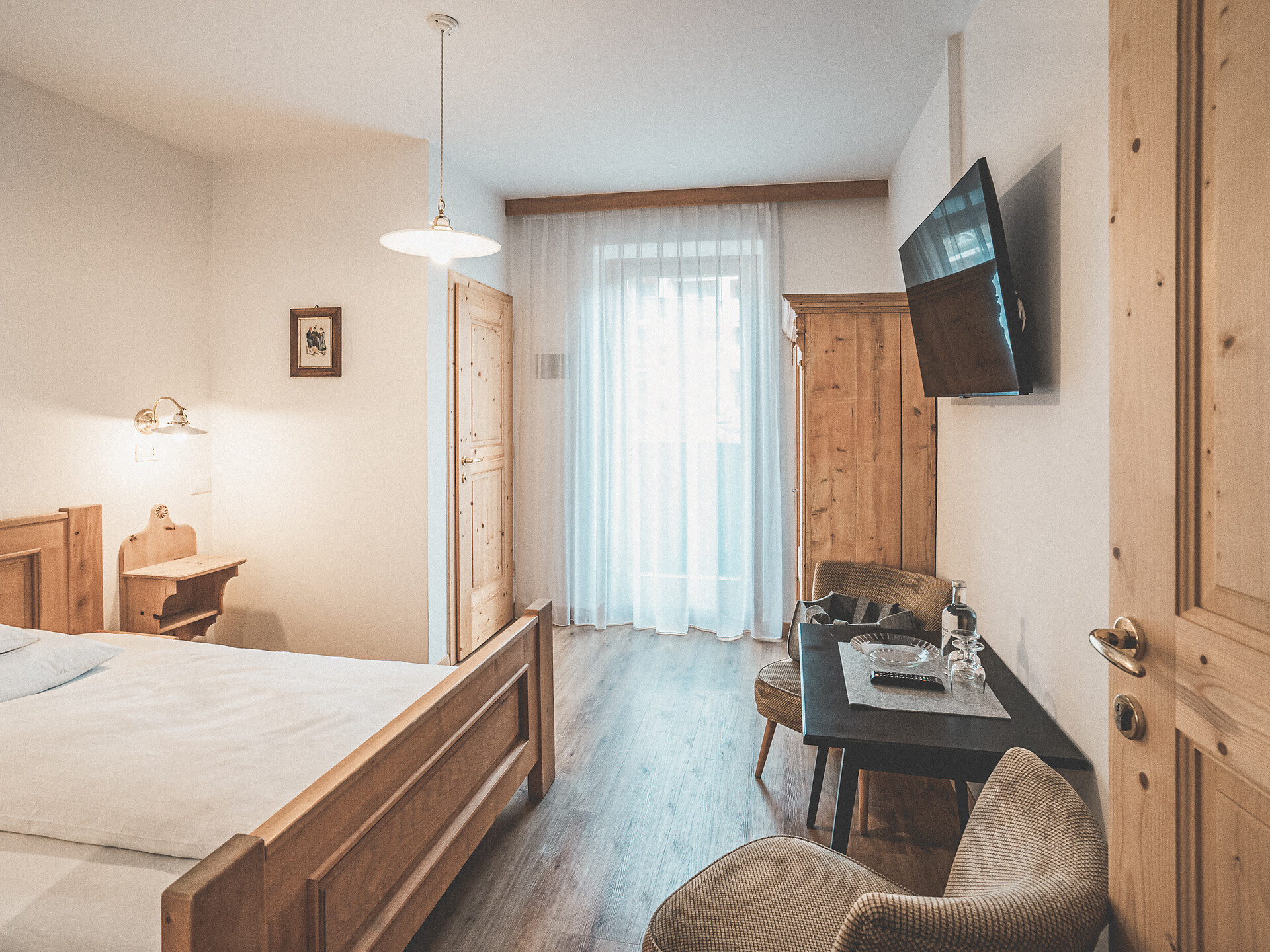 New, furnished with sleep-promoting Swiss pine, balcony, which overlooks directly onto our garden and mountains. LCD satellite TV , radio, phone and safe. Bathroom with shower and hairdryer.
