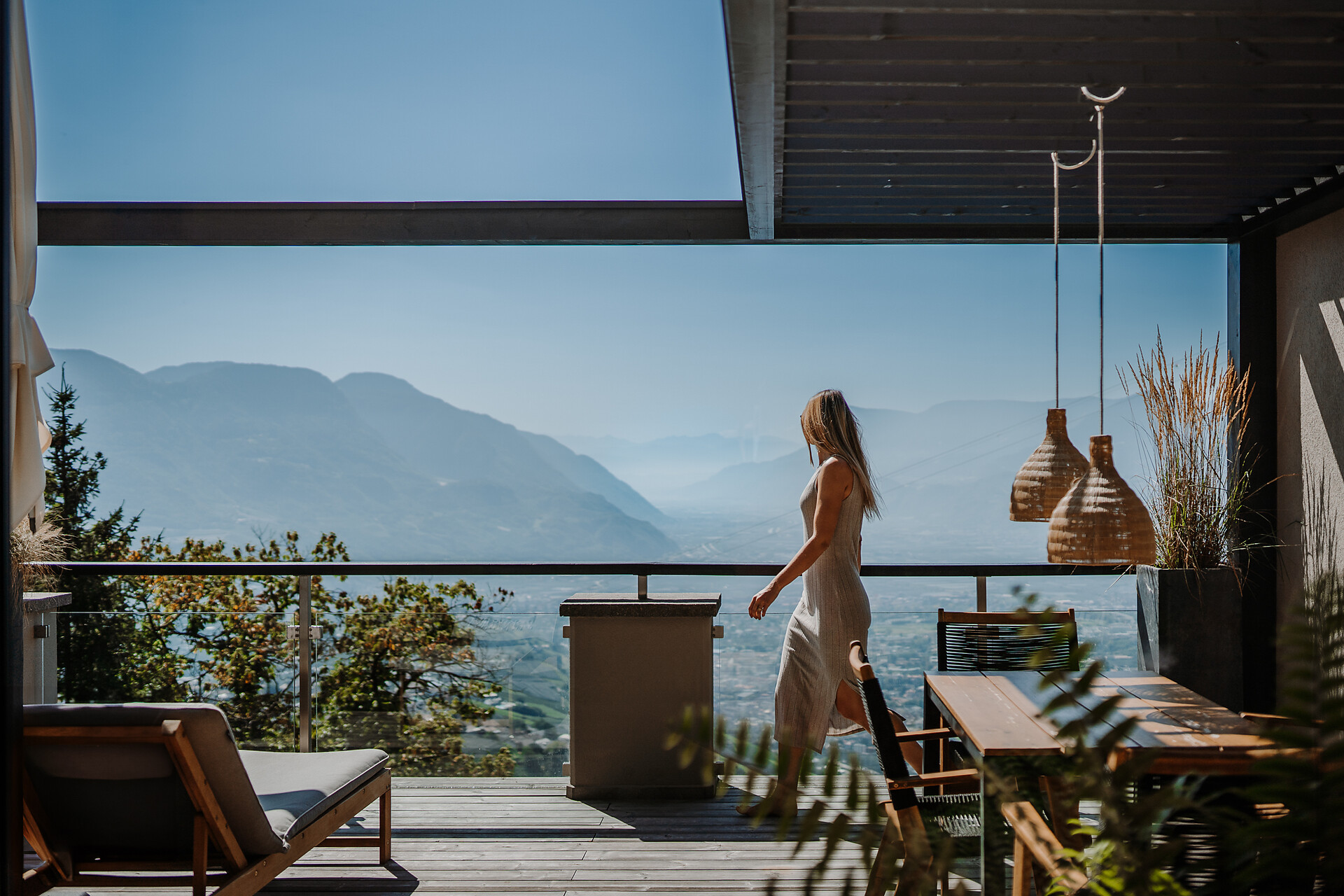 A gigantic view, a private terrace and two new and stylish apartments. Where there was once a large meadow with ferns, our "farnhaus" now stands in the midst of nature, in a quiet location and yet easy to reach. The entire Adige Valley stretches out in front of us, a spectacle at any time of the day or night, and Merano and the Tyrolean Castle lie at our feet. A perfect starting point for hikes and beautiful walks.
