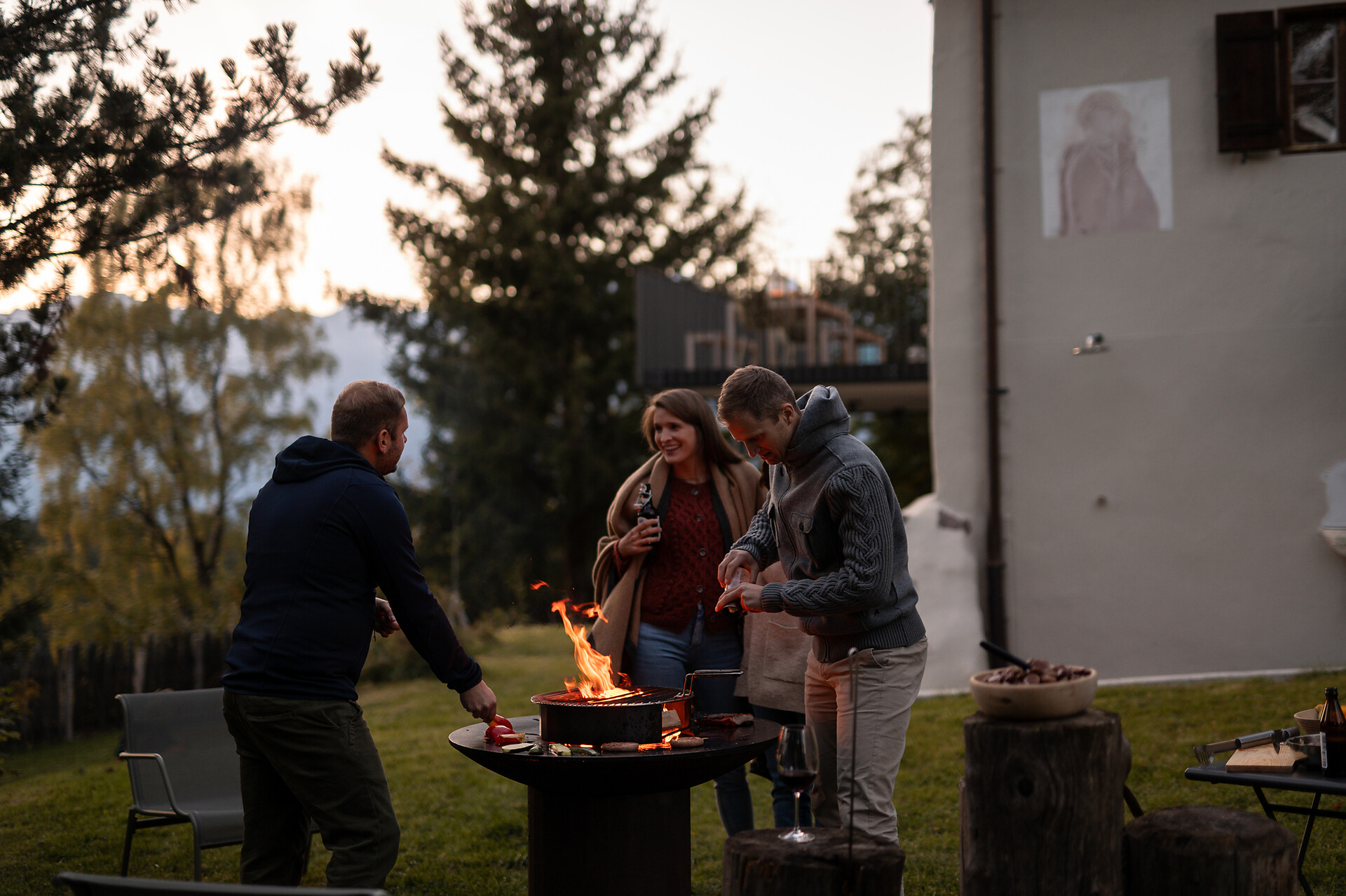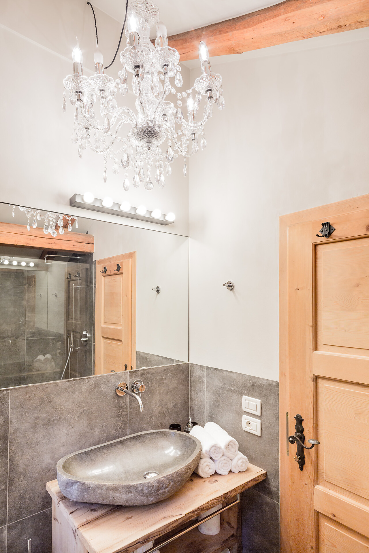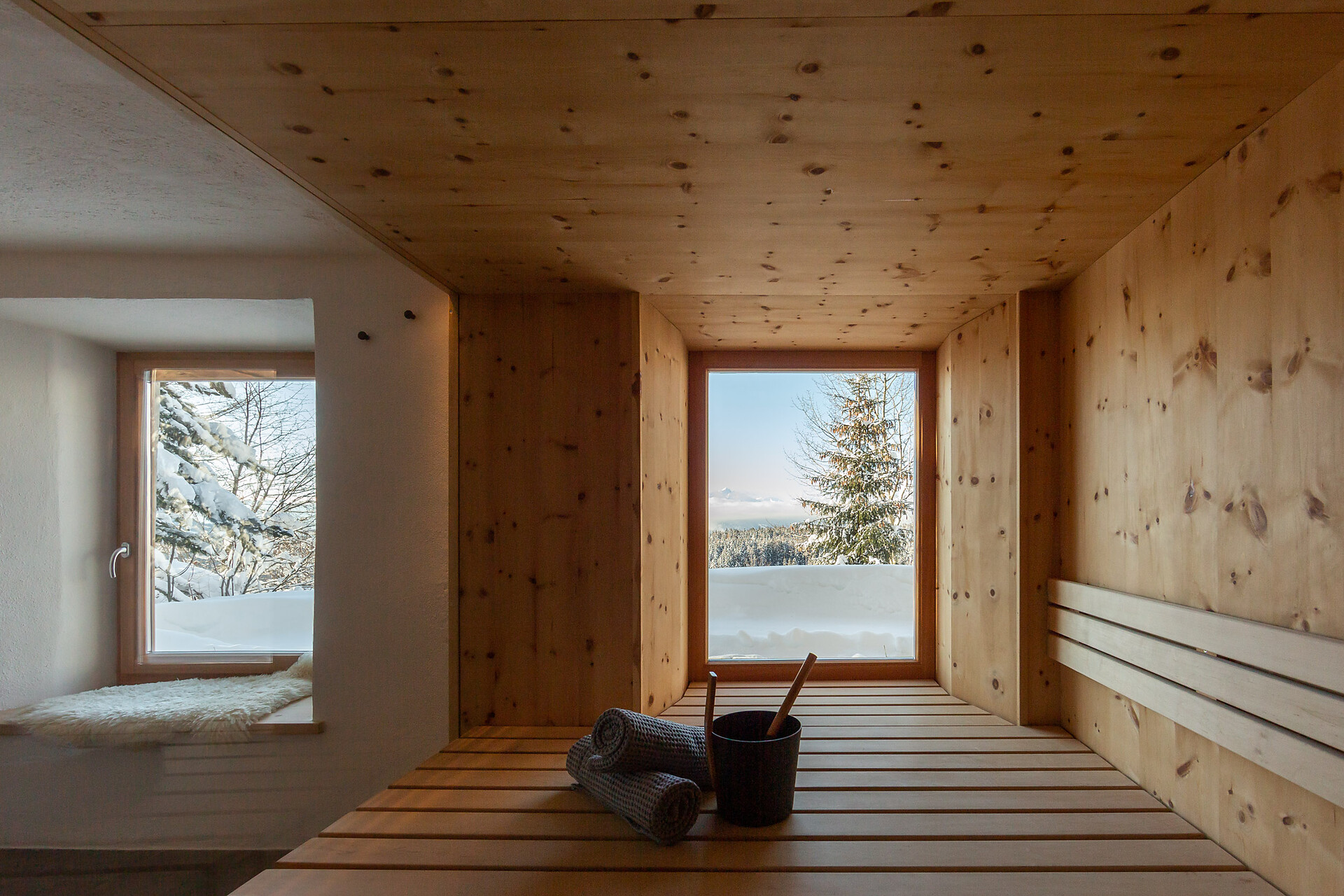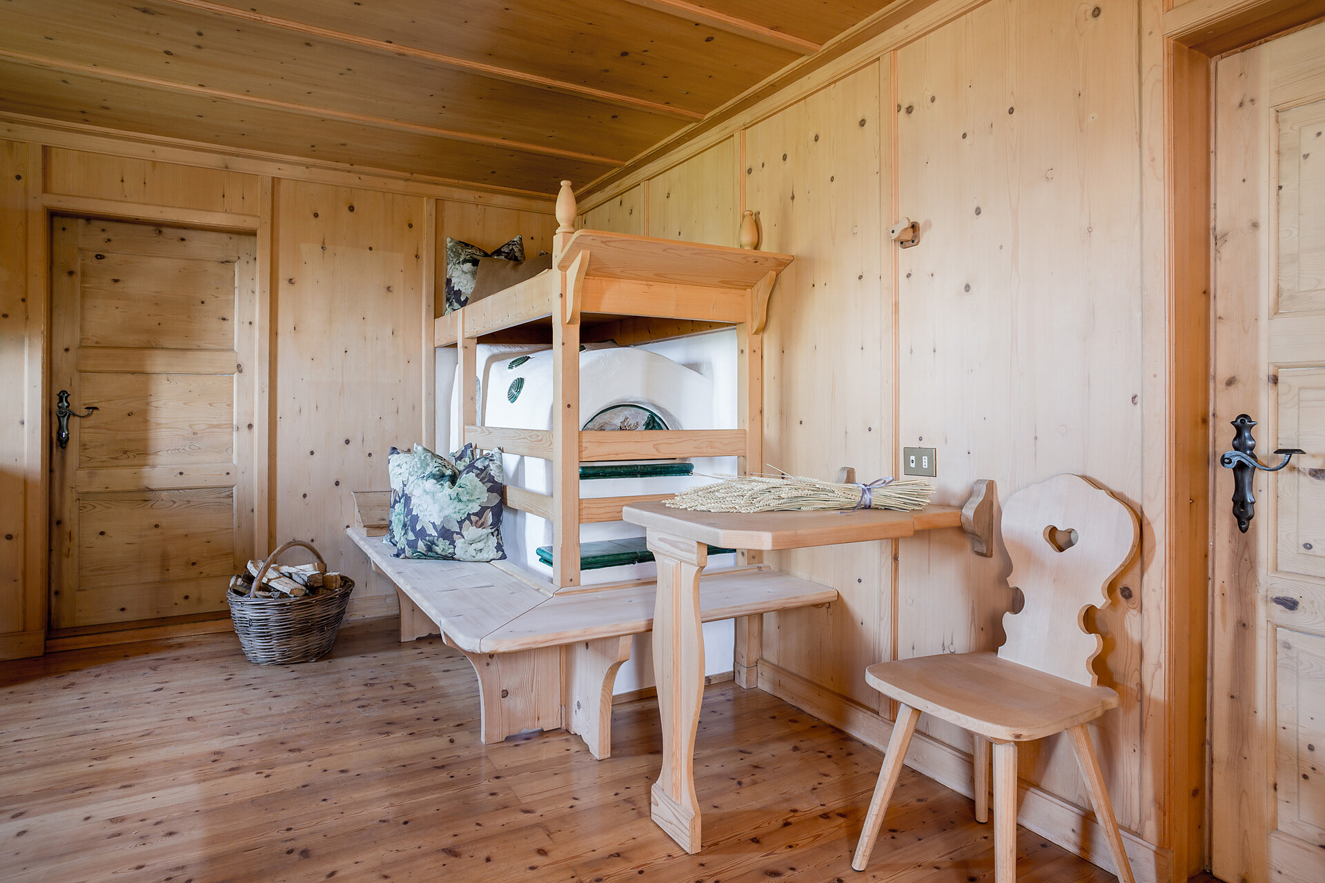 The Chalet, 170 square meters, comprises four double bedrooms (two with a extra bed) and one single bedroom. There is also a spacious kitchen, a living room, the entrance, three bathrooms, the storeroom and the original south tyrolean wood farmhous parlour Stube with the oven. Chalet Zoila can accommodate maximum eight to 12 people. Also for use the big garden area and the private sauna with relax room in the chalet.