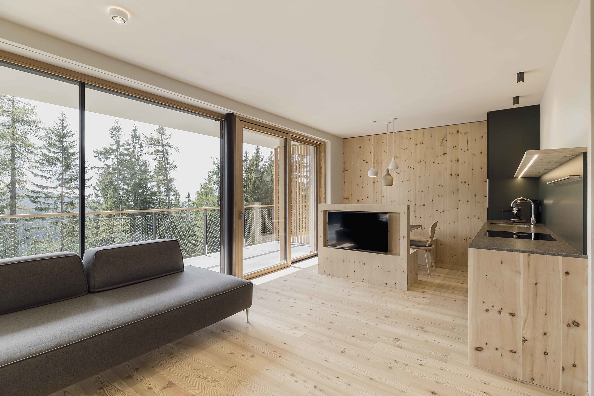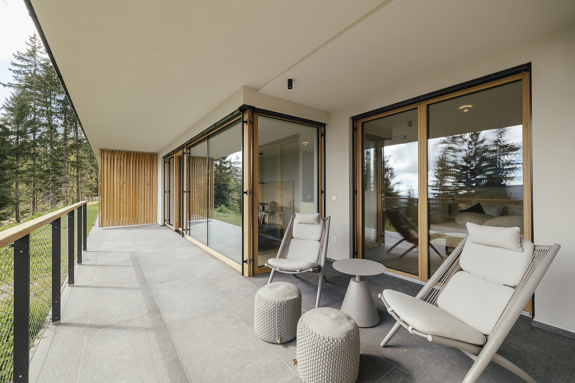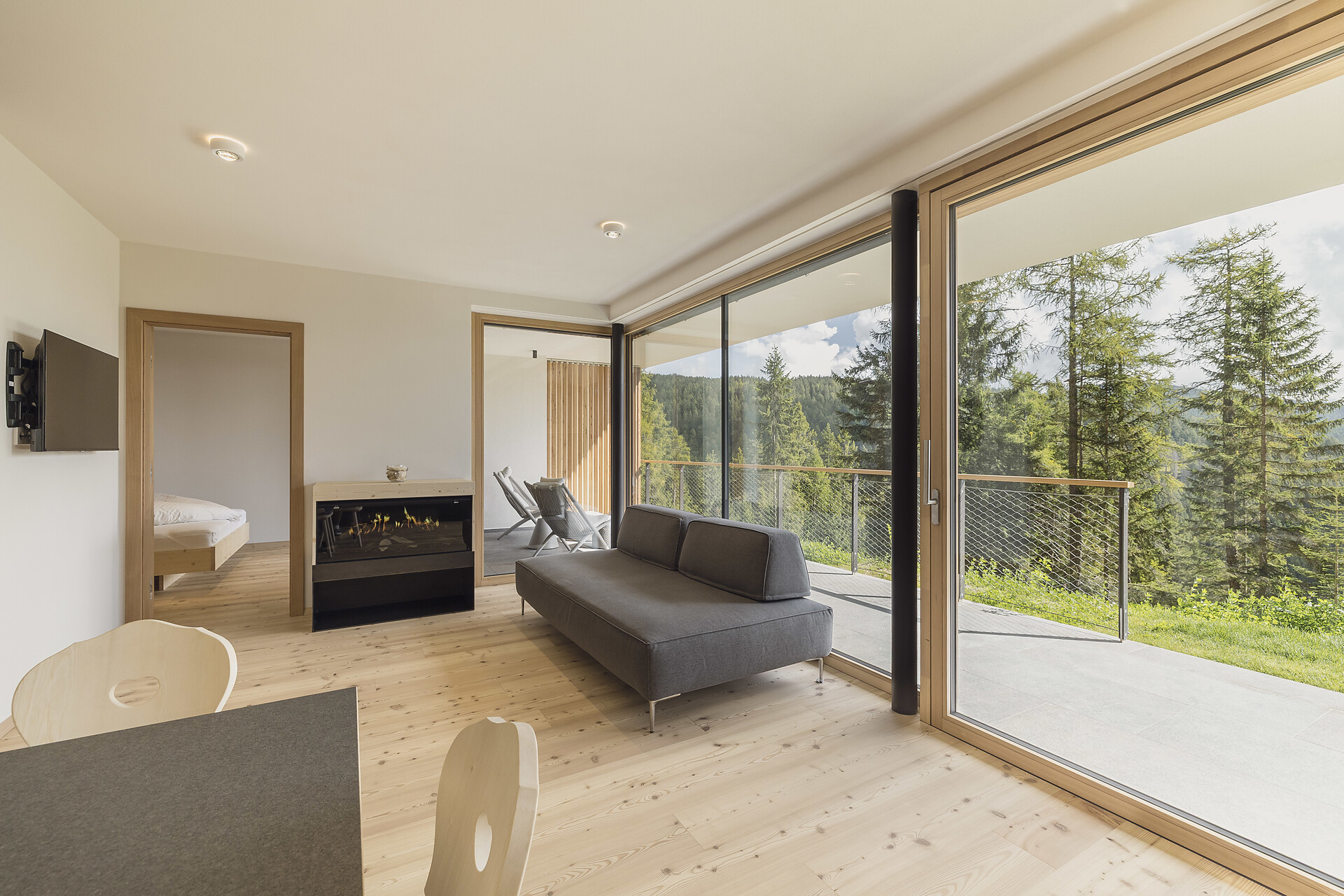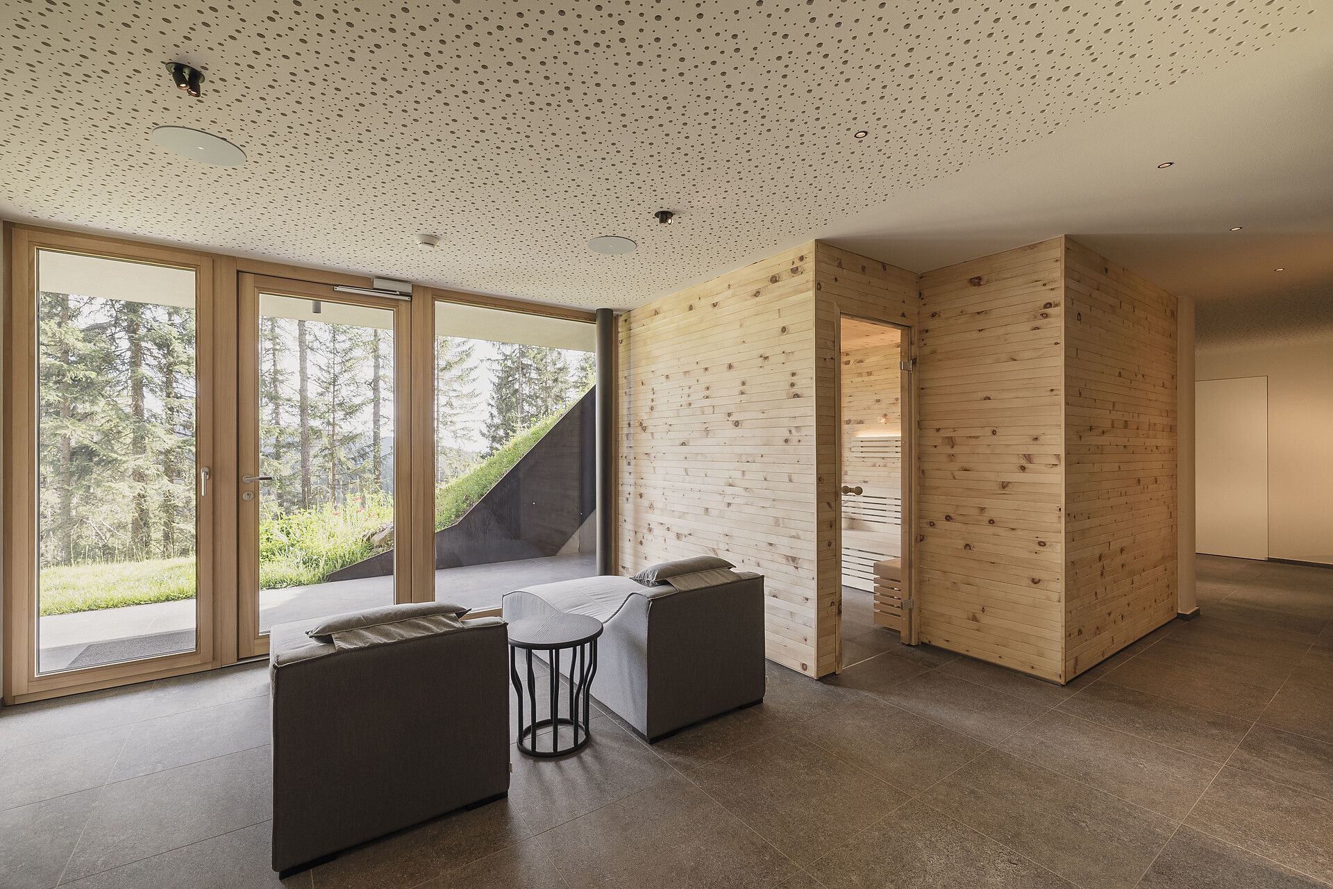 In addition, a relaxing sauna area awaits you in the lodges with direct access to the forest and the mountain spring.