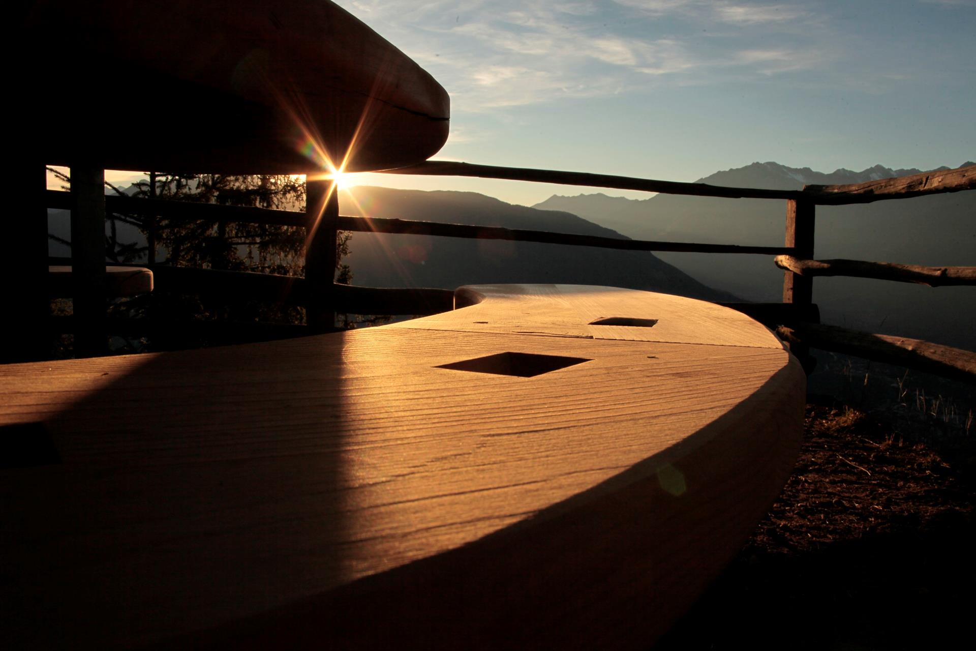 The Kanzele viewpoint is the perfect location for a rest area. A teepee has been erected on Hochsulfen, inviting visitors to retreat and pause for a moment. These two locations, as well as the ones in Vöran, are situated on popular hiking trails and offer ideal opportunities to experience the atmosphere in peace and quiet. Whether for a short break, a picnic together or simply to enjoy the view.