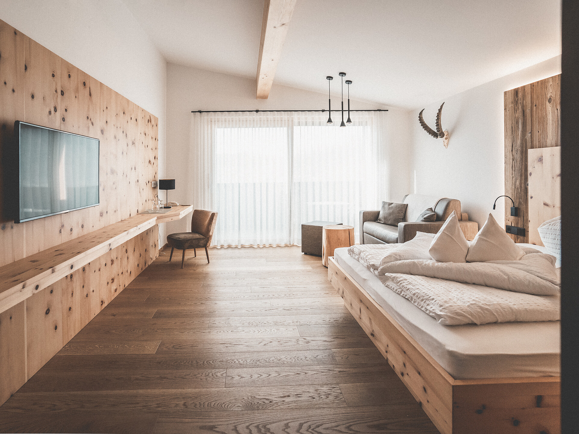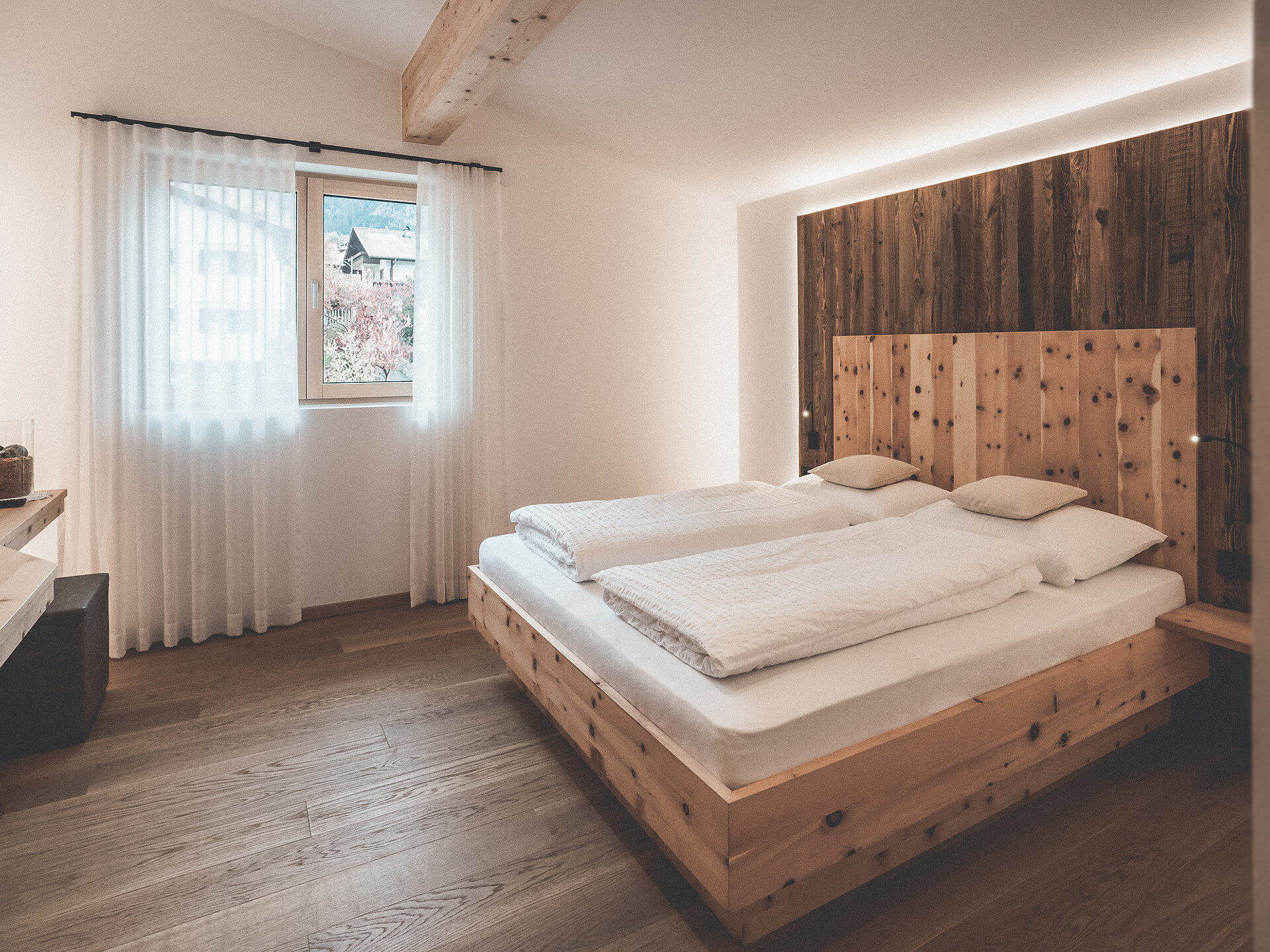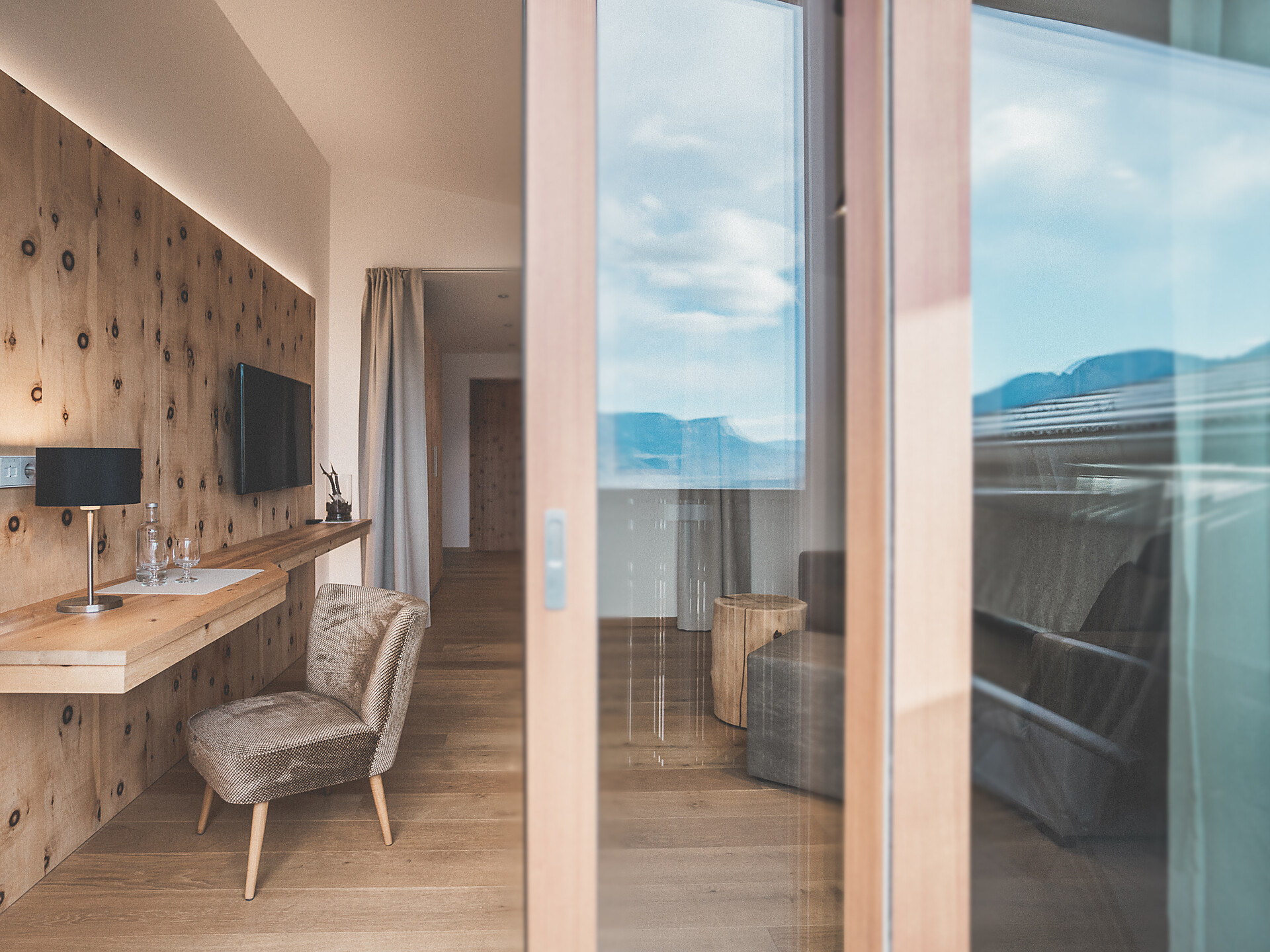 Our small hotel with just 13 rooms is tucked away on a quiet side street in the center of Dorf Tirol – the perfect starting point to explore the surroundings without needing a car. The cozy atmosphere isn’t just because of the limited number of guests, a maximum of 25, but also thanks to the warm hospitality: from the moment you arrive to the moment you leave, everyone knows each other, shares hiking tips, or chats about life.