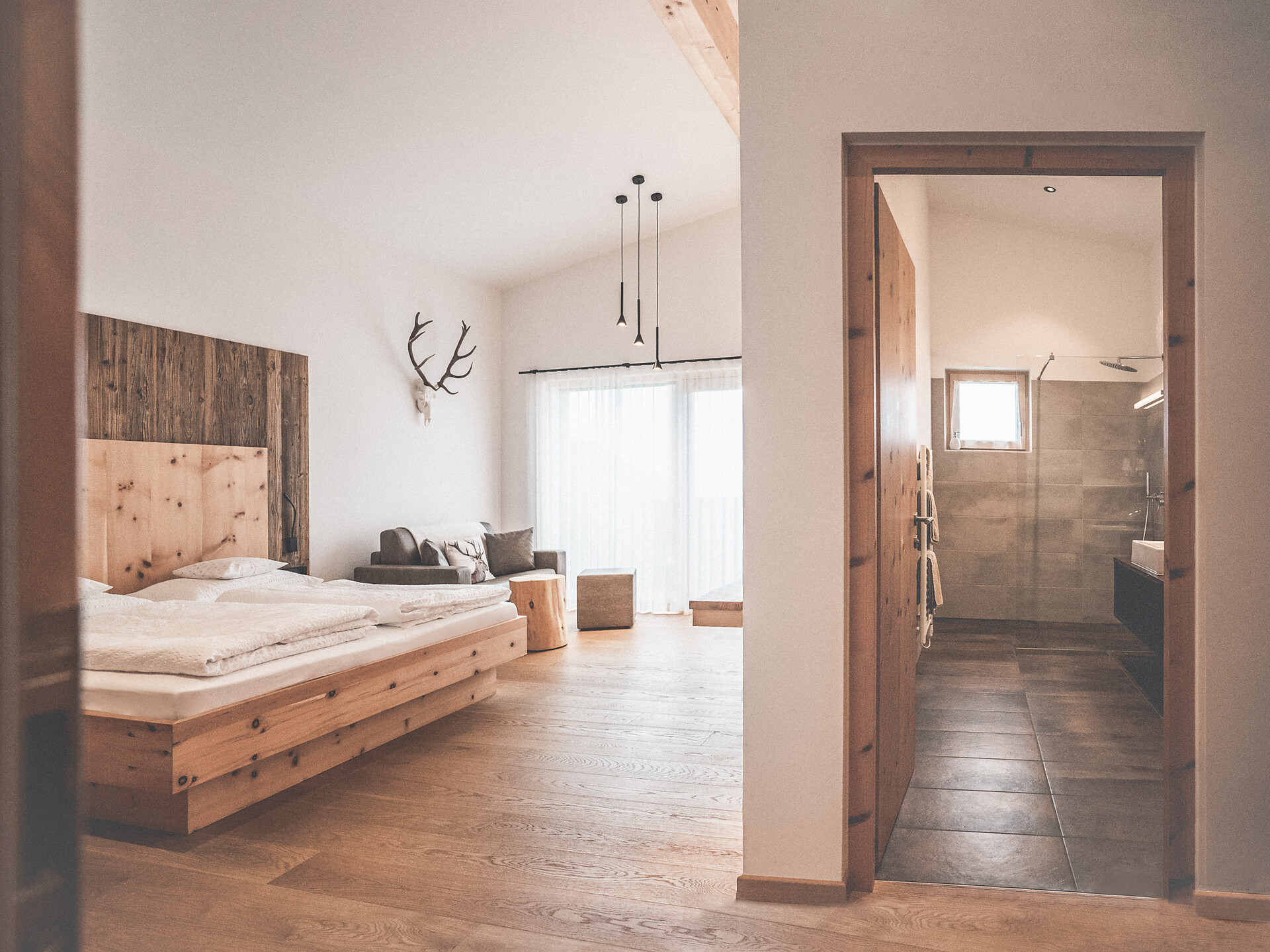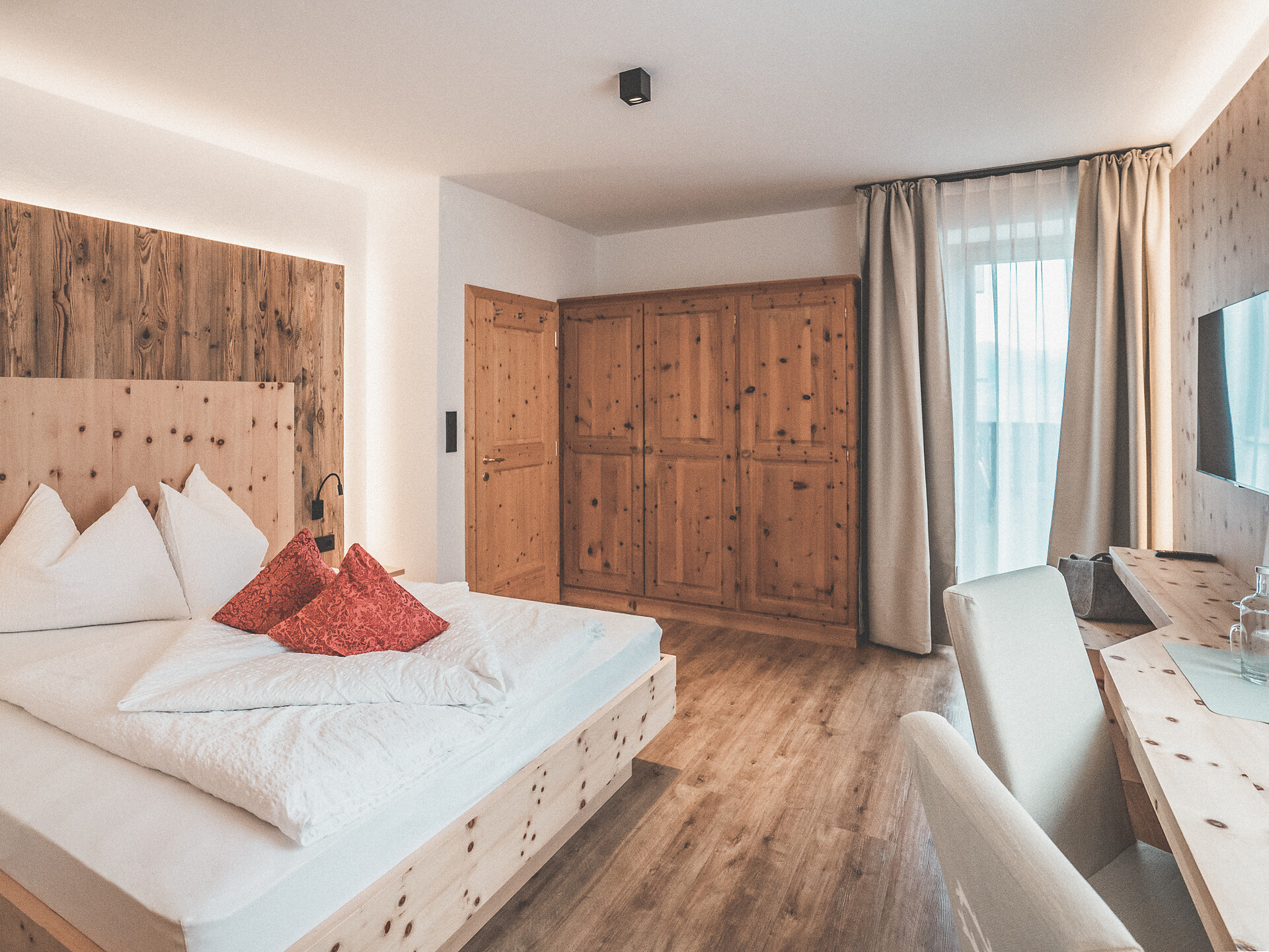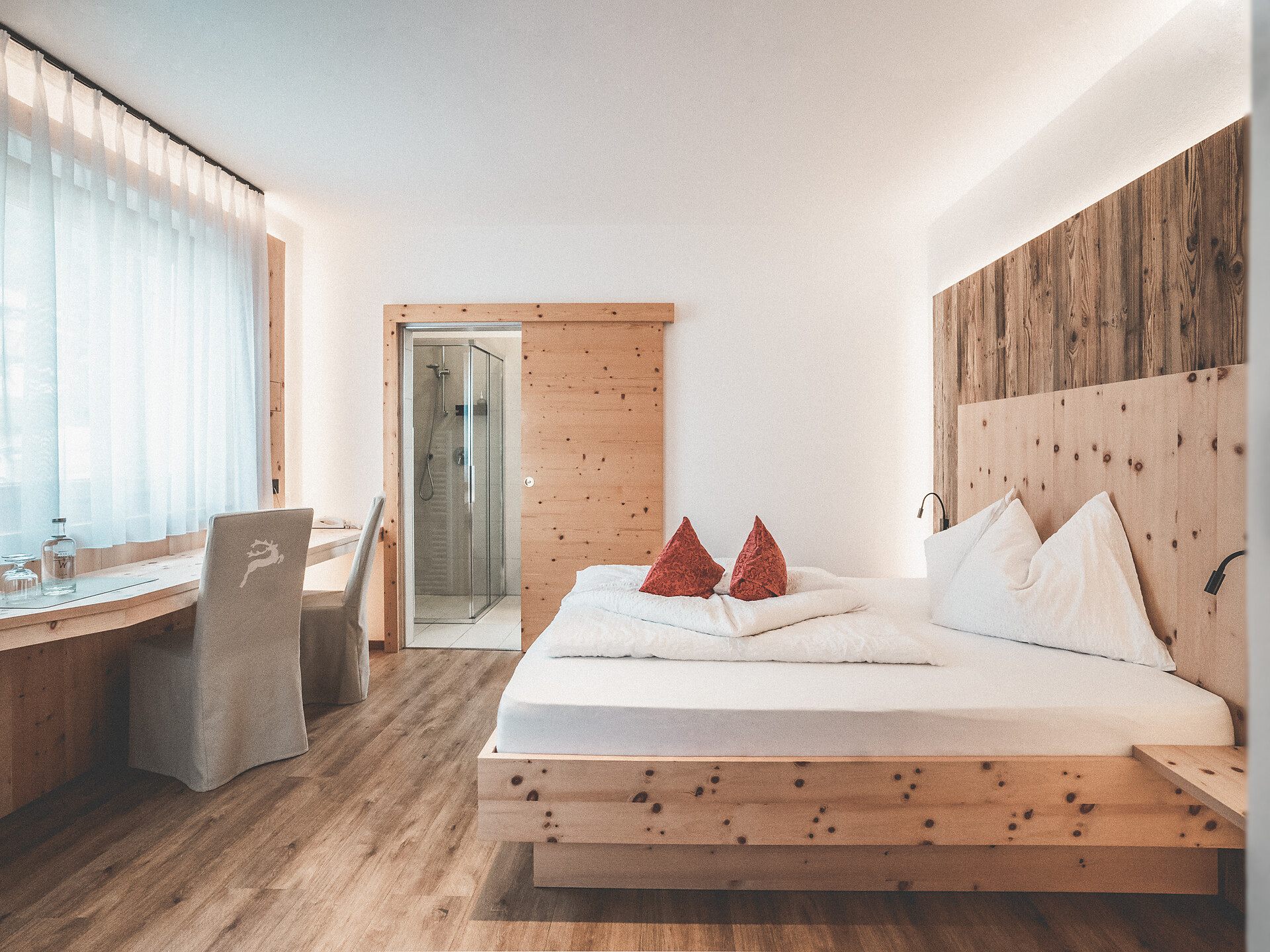 Our small hotel with just 13 rooms is tucked away on a quiet side street in the center of Dorf Tirol – the perfect starting point to explore the surroundings without needing a car. The cozy atmosphere isn’t just because of the limited number of guests, a maximum of 25, but also thanks to the warm hospitality: from the moment you arrive to the moment you leave, everyone knows each other, shares hiking tips, or chats about life.