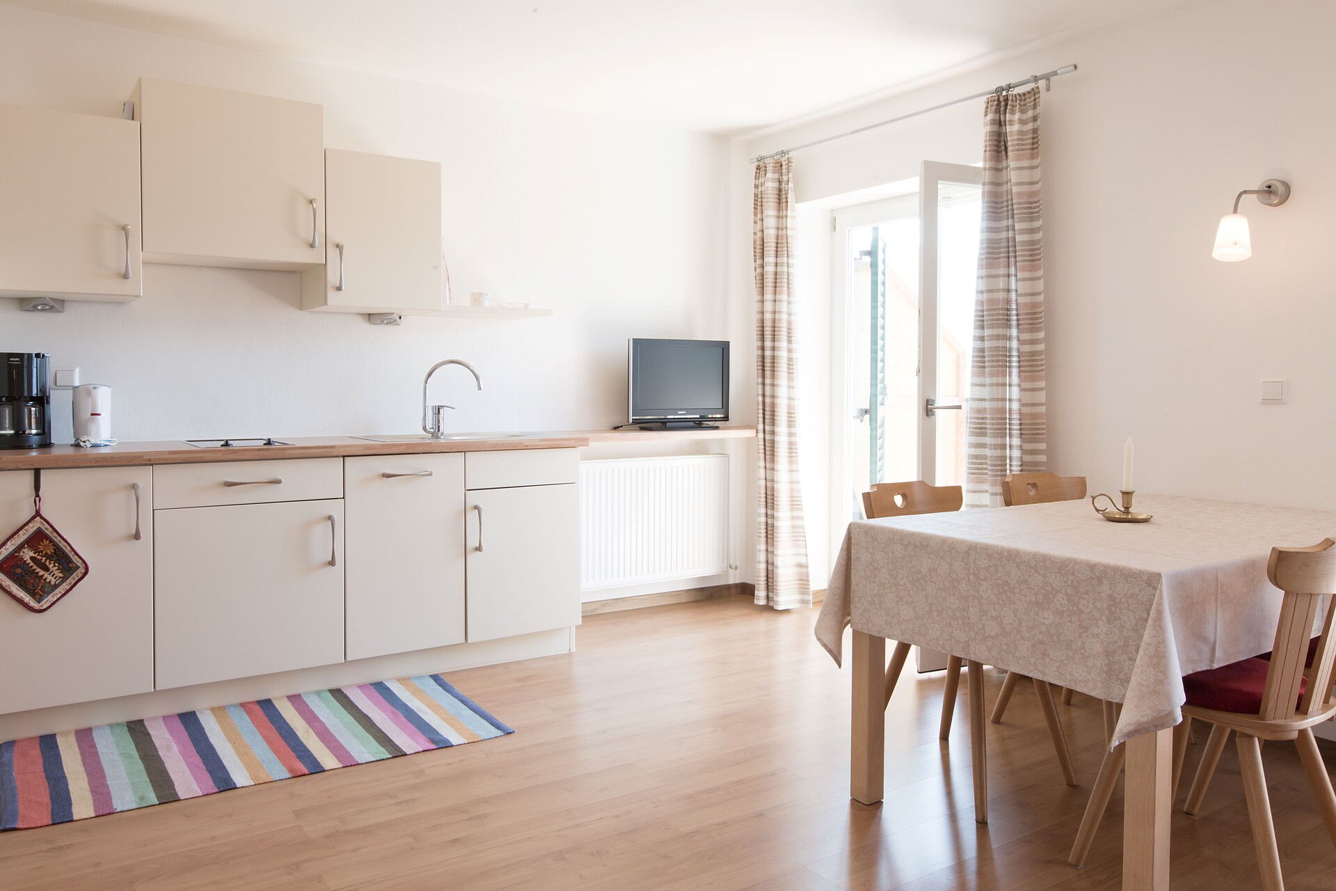 Double bed , Extra bed, Double sofa bed, Balcony, Bed linen provided, Safe, Non-smoking apartment, Eat-in kitchen, Coffee machine, Dishwasher, Electric cooker, Cutlery provided, Water boiler, Shower/Bath tub, Hair dryer, TV, Satellite/Cable, WLAN, Main building, Panoramic view, South view
