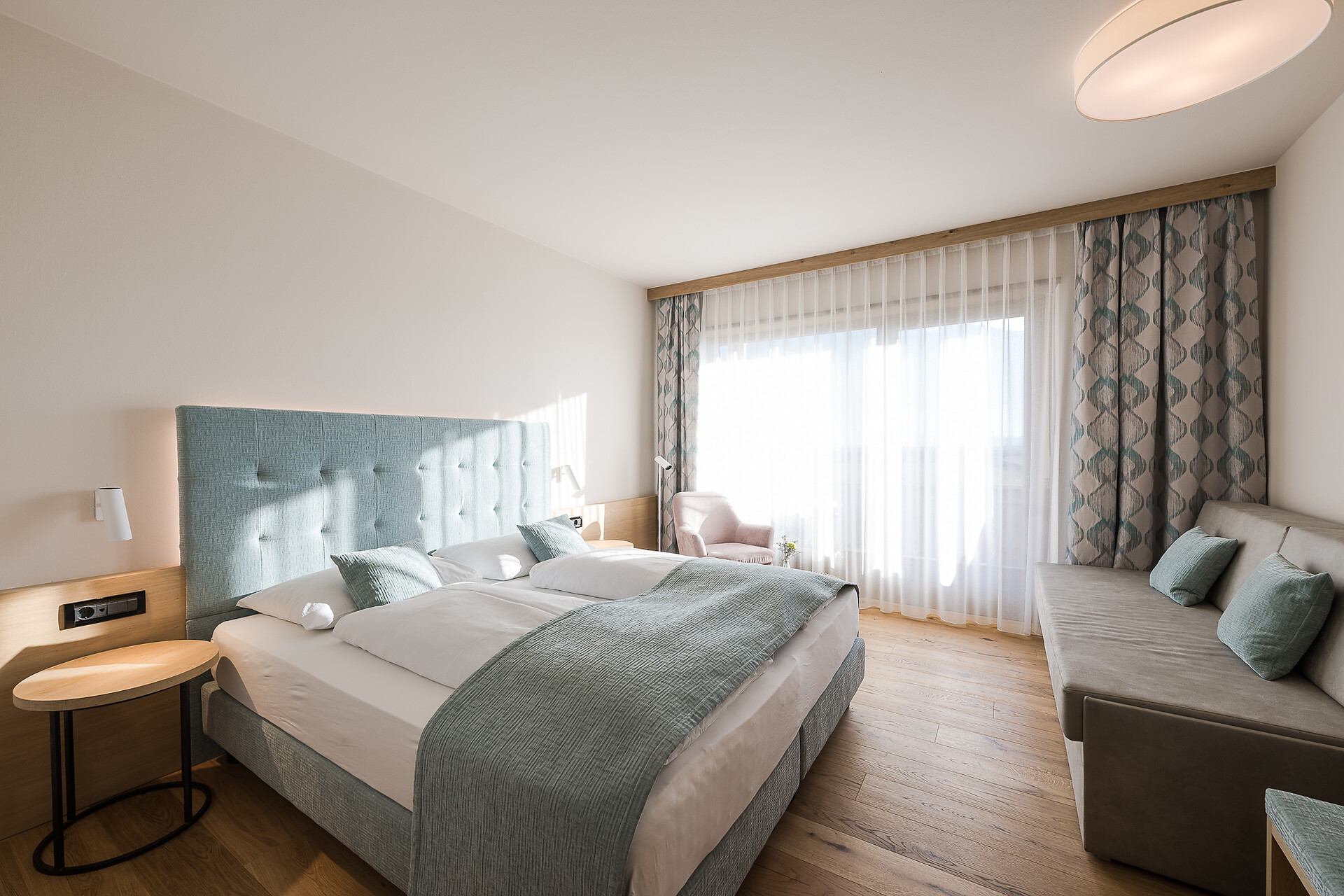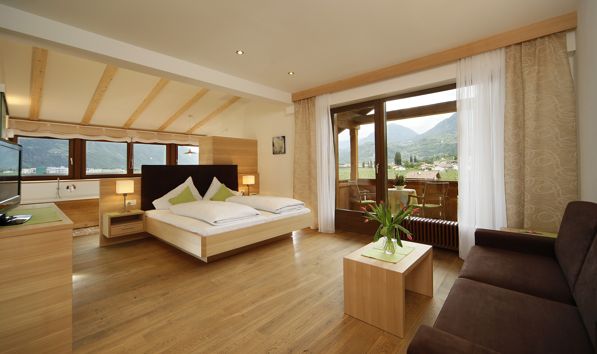 Double room, Double bed , Balcony, Living area, Safe, Non-smoking room, Shower / Bath tub, Hair dryer, TV, Satellite/Cable, WLAN, Main building, Panoramic view, South view