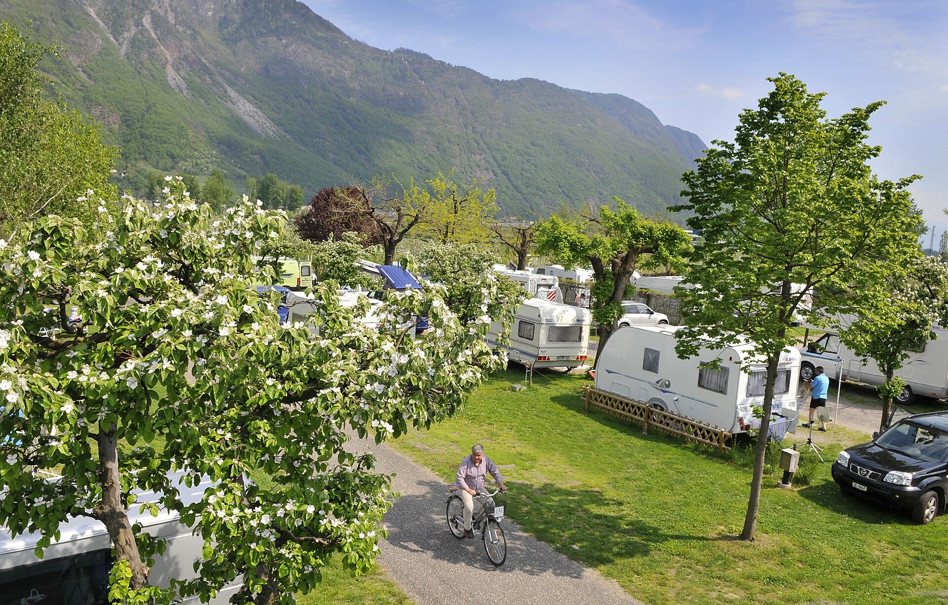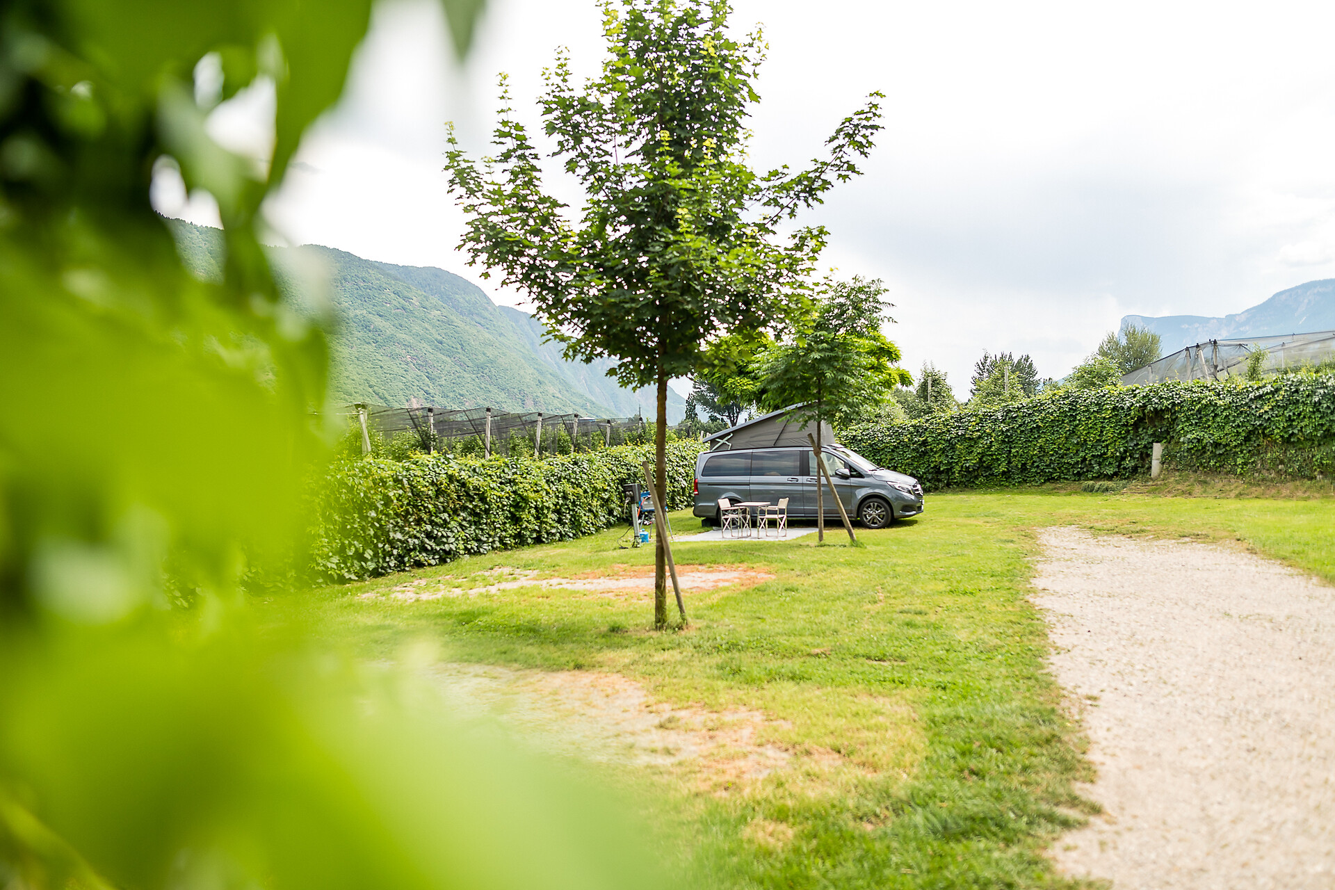 The Arquin campsite is situated on a 1,5 ha large area surrounded by orchards at the beginning of Lana (7 km of distance from Meran and 20 km from Bozen).