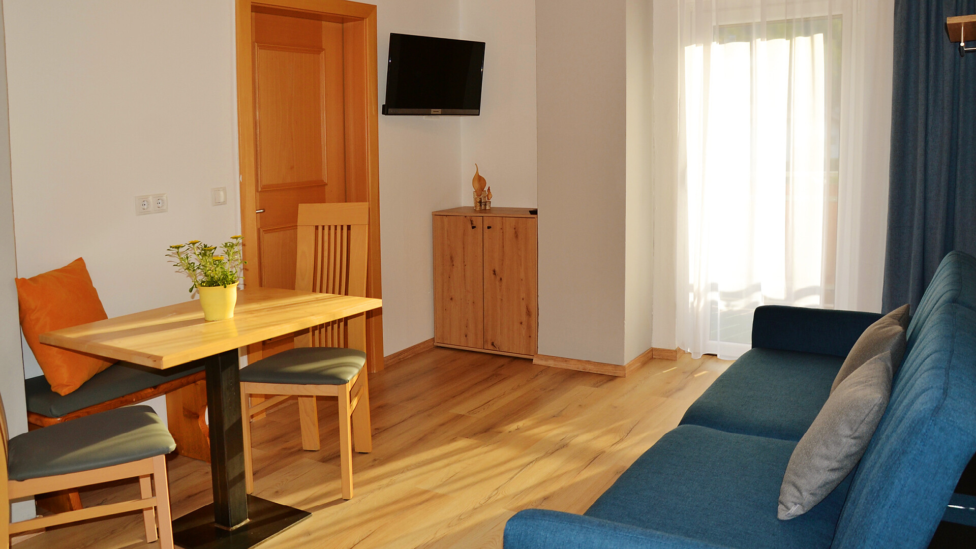 Equipment: Double bed , Double sofa bed, Balcony, Separate living area, Bed linen provided, Safe, Eat-in kitchen, Coffee machine, Electric cooker, Microwave, Cutlery provided, Hob, Water boiler, Shower/Bath tub, Hair dryer, TV, Satellite/Cable, WLAN, Main building, Panoramic view, South view