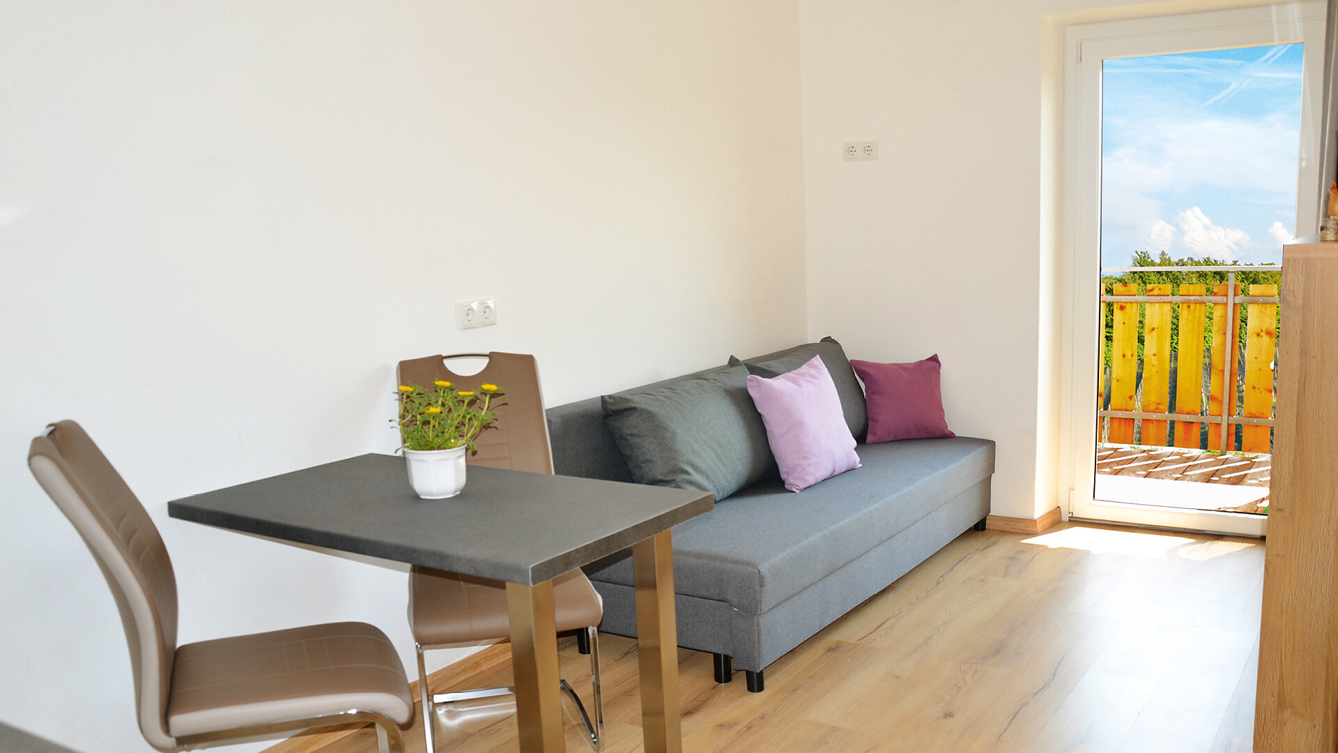 Our new modern apartments feature two new modern bedrooms, a separate new modern living/sleeping area with sofa, a new modern kitchen, a new large modern bathroom (shower, toilet), balcony, satellite TV, safe, kitchen with filter coffee machine, kettle, microwave, refrigerator with freezer compartment, ceramic hob, extractor hood, dishes and cookware, tea towels, bed linen, hand towels, bath towels.