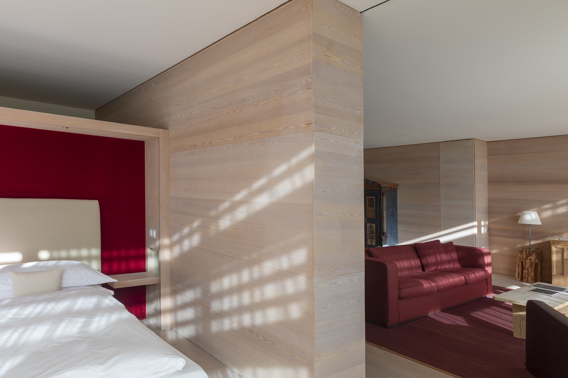72 m² with a balcony or terrace and a stunning view over the South Tyrolean mountains. This room is a fusion of the traditional and the modern: a comfortable sofa in timeless design harmonises with the corner seating arrangement consisting of old South Tyrolean farmhouse furniture. A natural clay wall separates the bathroom with panoramic view from the sleeping area. Separate toilet, hair dryer, cosmetic products from South Tyrol, bathrobes and bath slippers, phone, a hifi stereo with iPod port, free WiFi Internet access, mini bar, safe. All Suites are non-smoking suites.