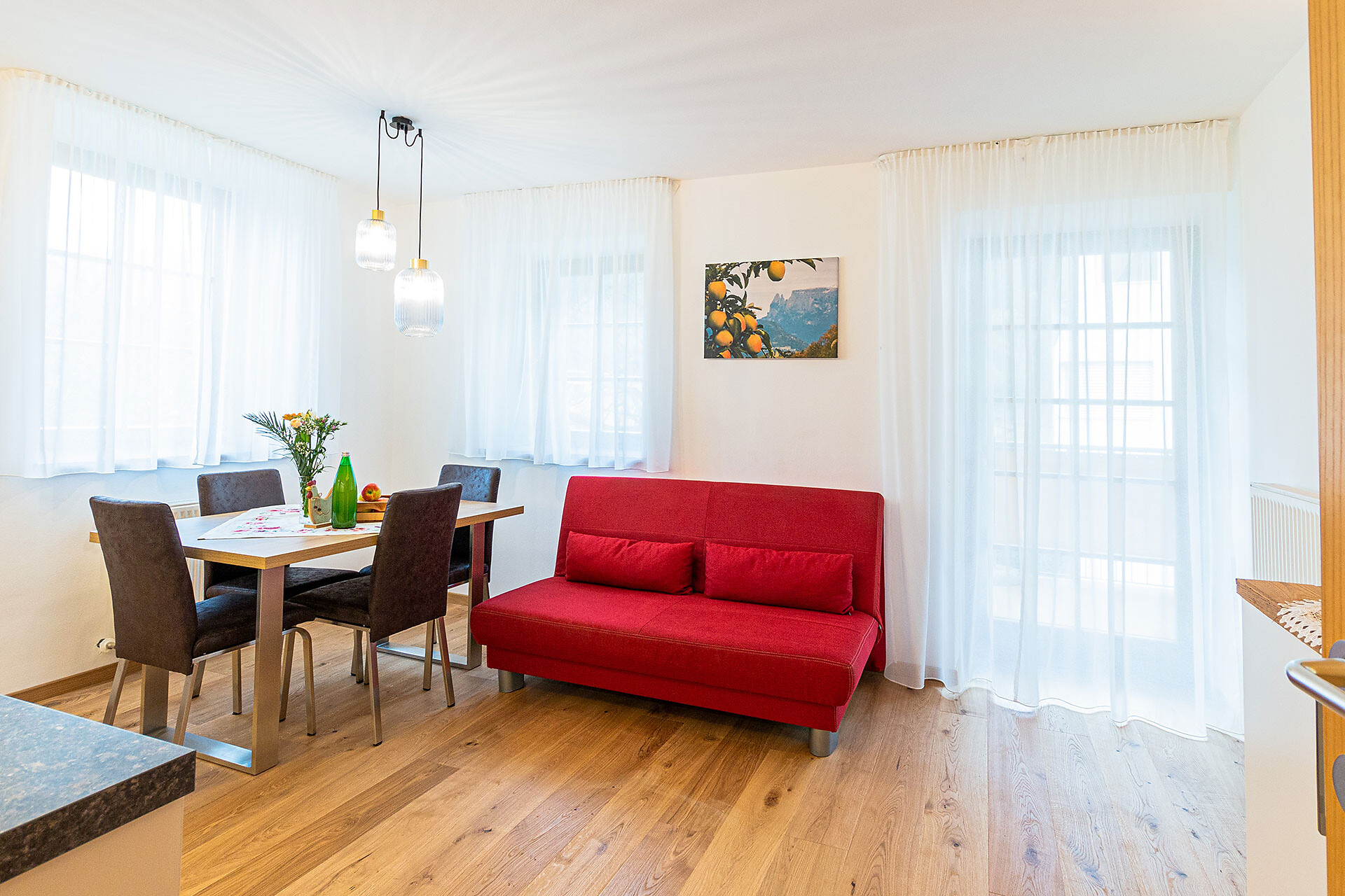 Double bed , Extra bed, Cot, Double sofa bed, Terrace, Garden , Air conditioning, Anti-allergic room, Handicapped accessible, Separate living area, Bed linen provided, Safe, Non-smoking apartment, 2 or more bedrooms, Located on the ground floor, Separate kitchen, Eat-in kitchen, Coffee machine, Dishwasher, Electric cooker, Microwave, Cutlery provided, Hob, Water boiler, Shower/Bath tub, Hair dryer, Towels, Bathtub, TV, Satellite/Cable, WLAN, Final cleaning included, Main building, Panoramic view