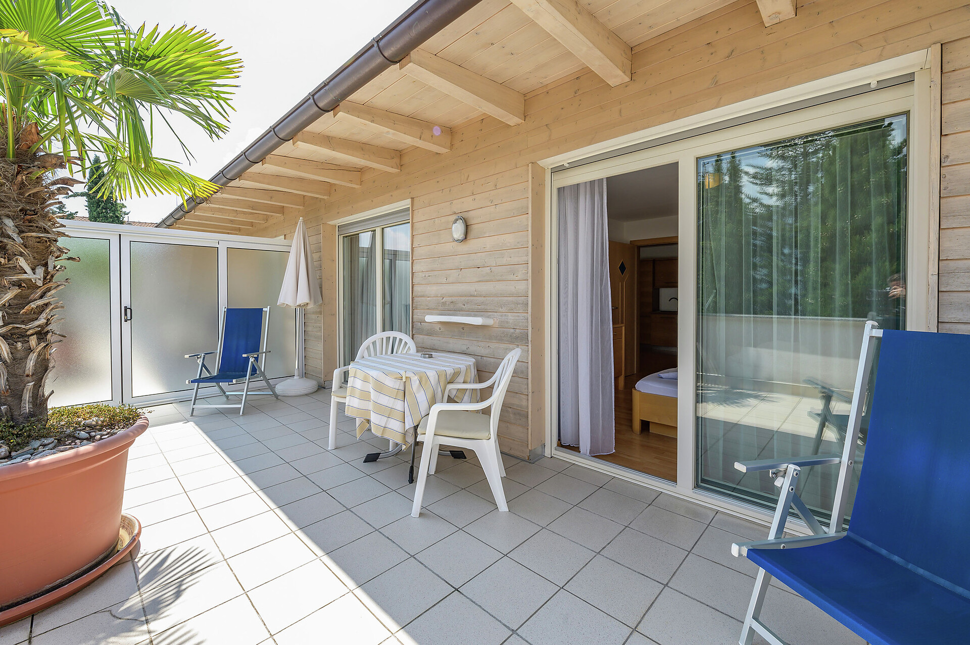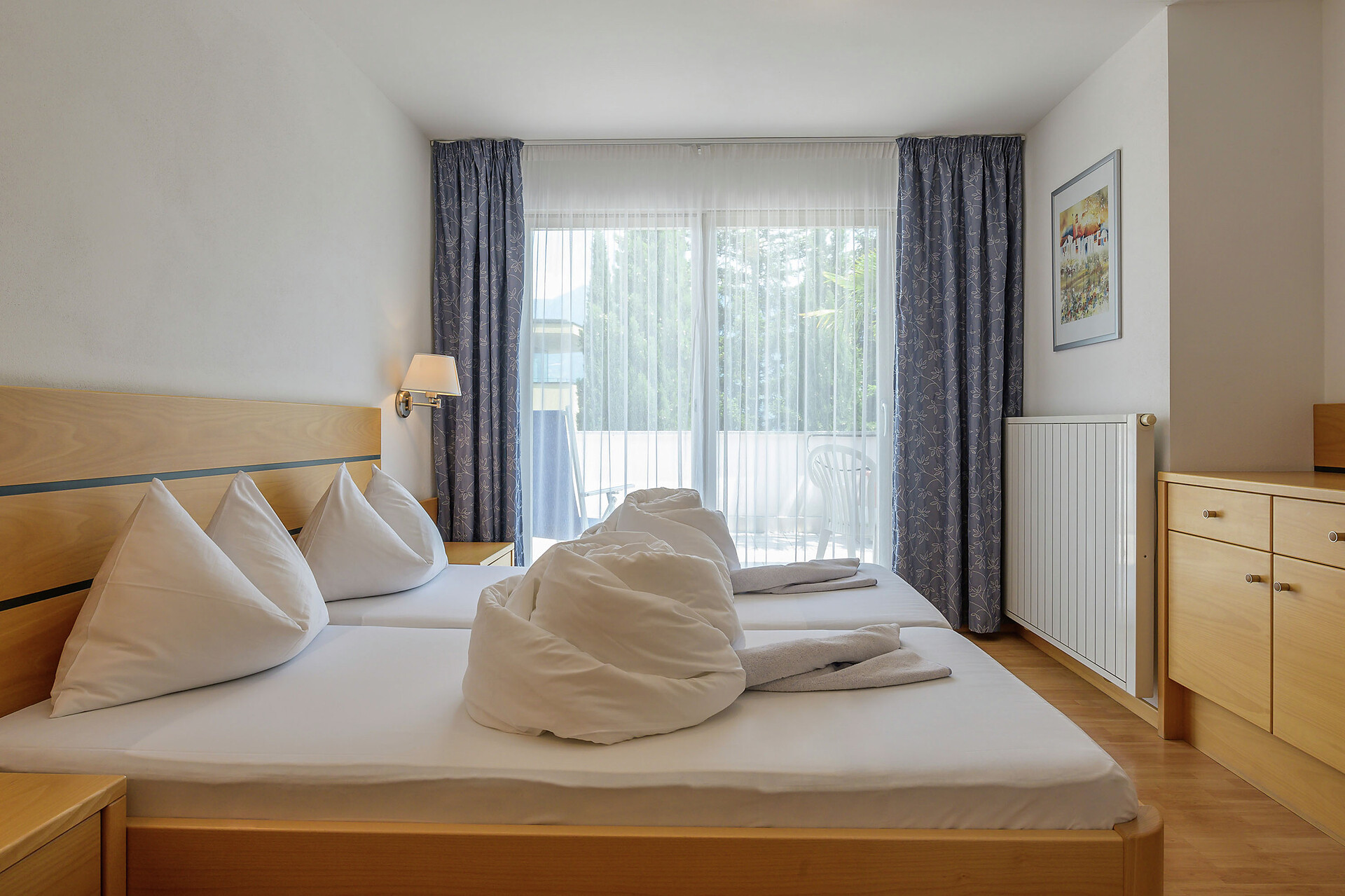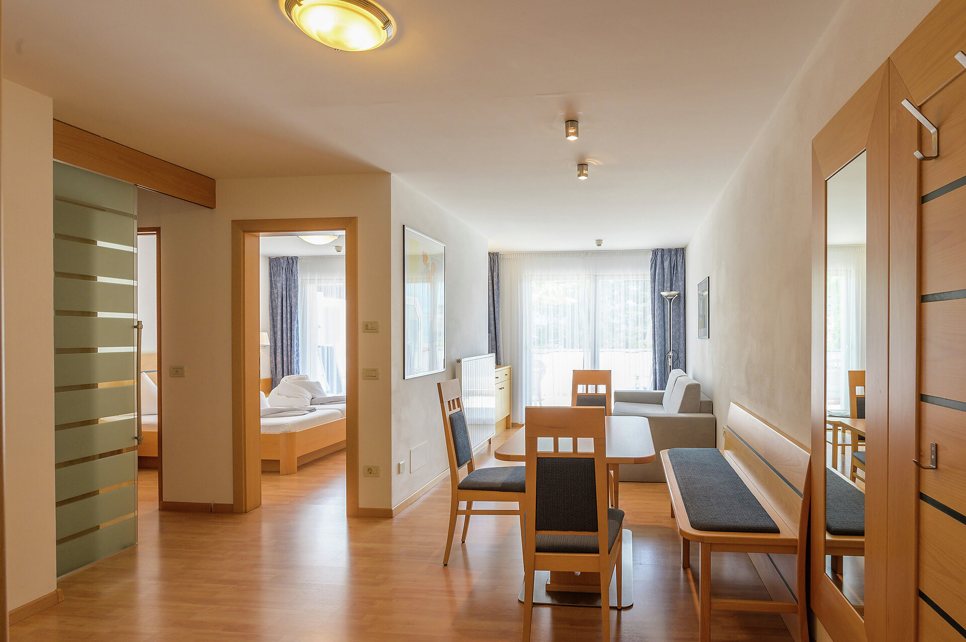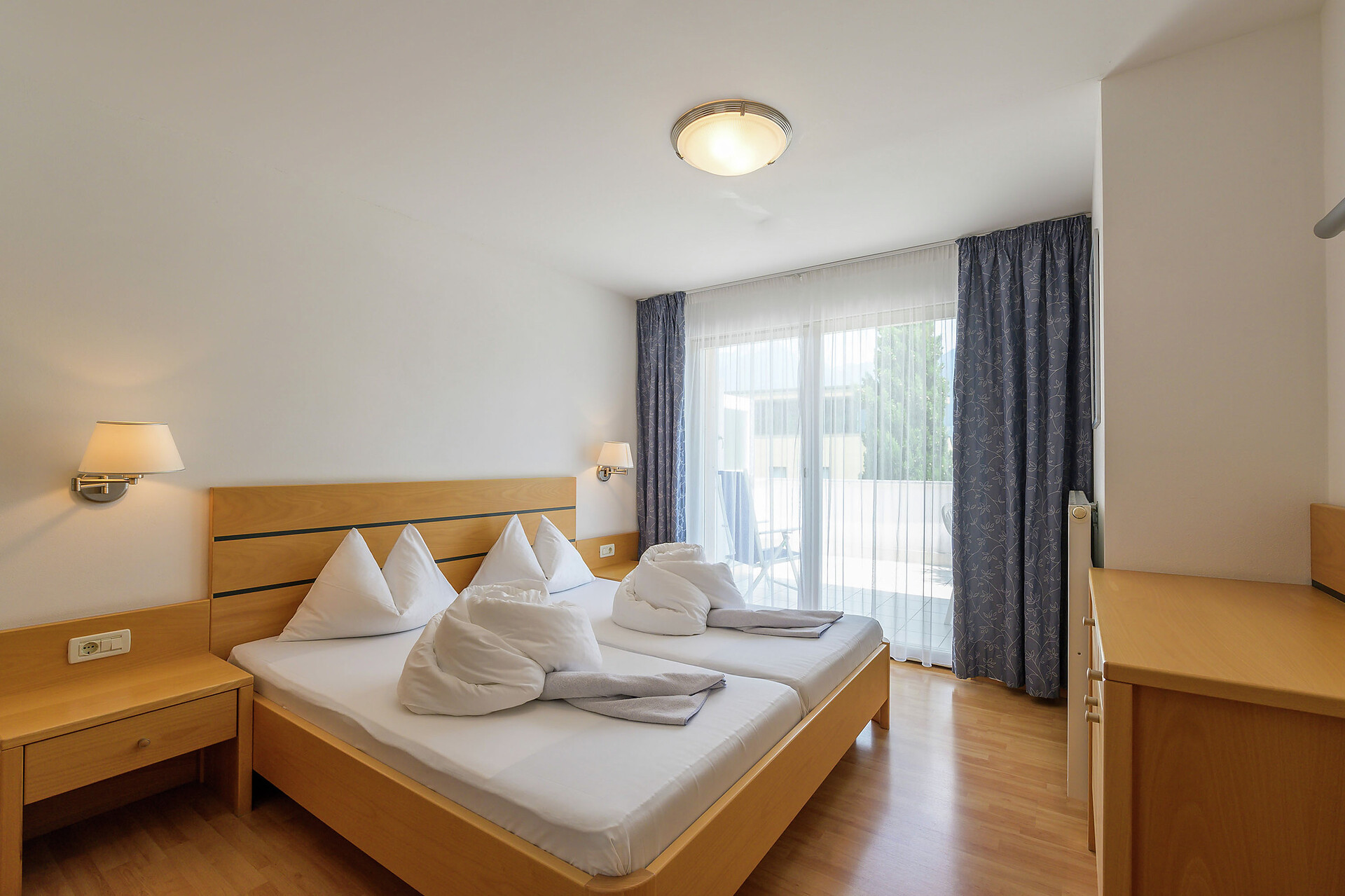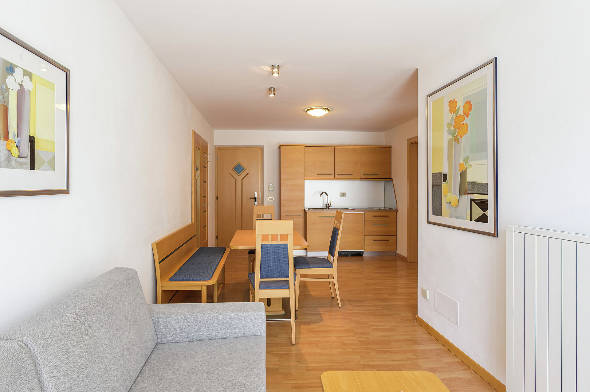 Holiday apartment with air conditioning for 2-4 people (approx. 45 m²) on the second floor of the Residence Victoria, with living room with daybed and separate sleeping room, anteroom with functional kitchen unit, bathroom with WC, shower, in part bidet, hairdryer, sat-TV, phone, WiFi internet and connection, deposit box, garage space, bed linen, hand and bath towels, as well as towels and bathrobes for the spa.