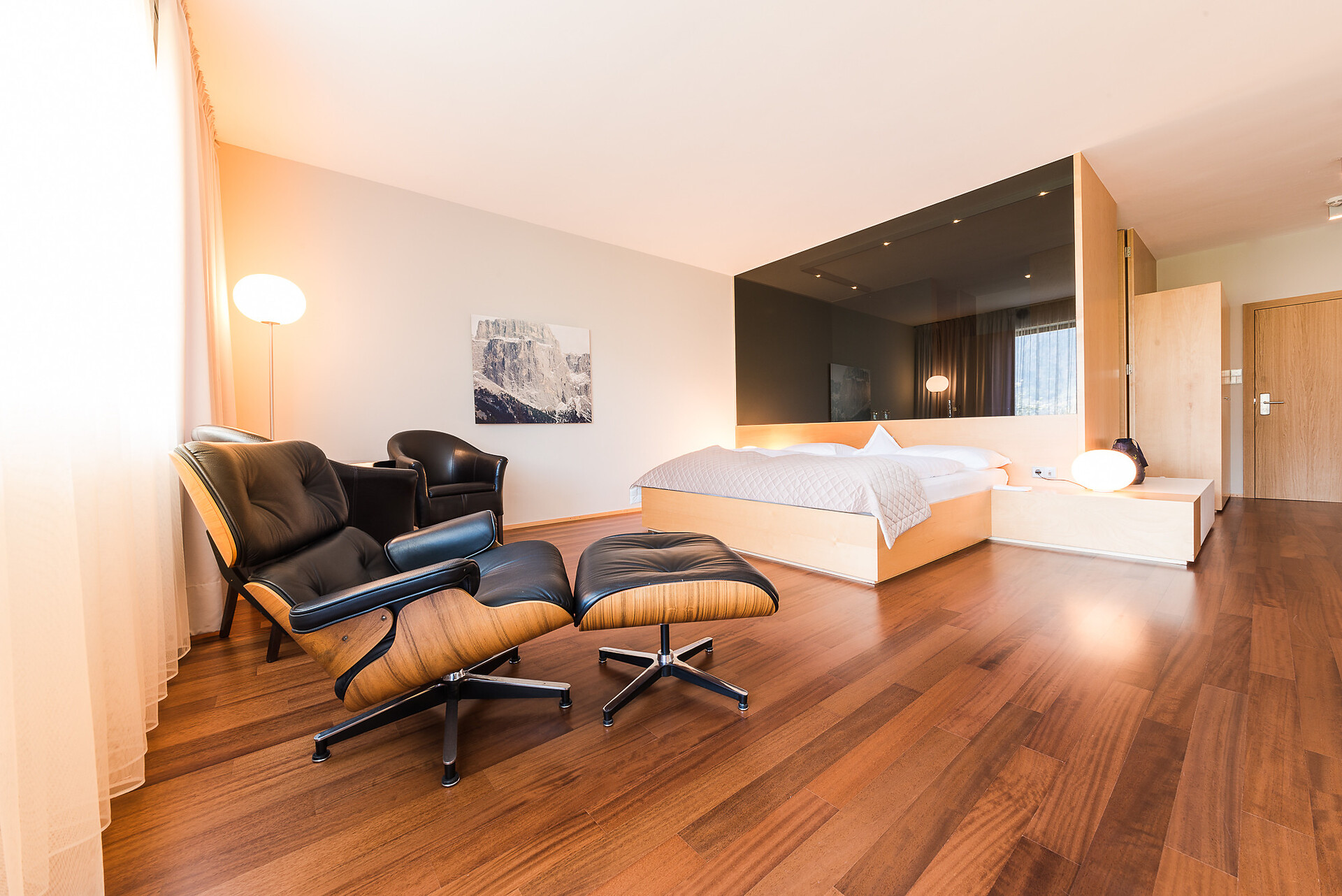 The rooms in the ‘Deluxe’ category impress with a wonderful view of Merano, elegant and refined interiors and selected furnishings, including numerous unique pieces. Designed by architects with great attention to detail, each room is unique.