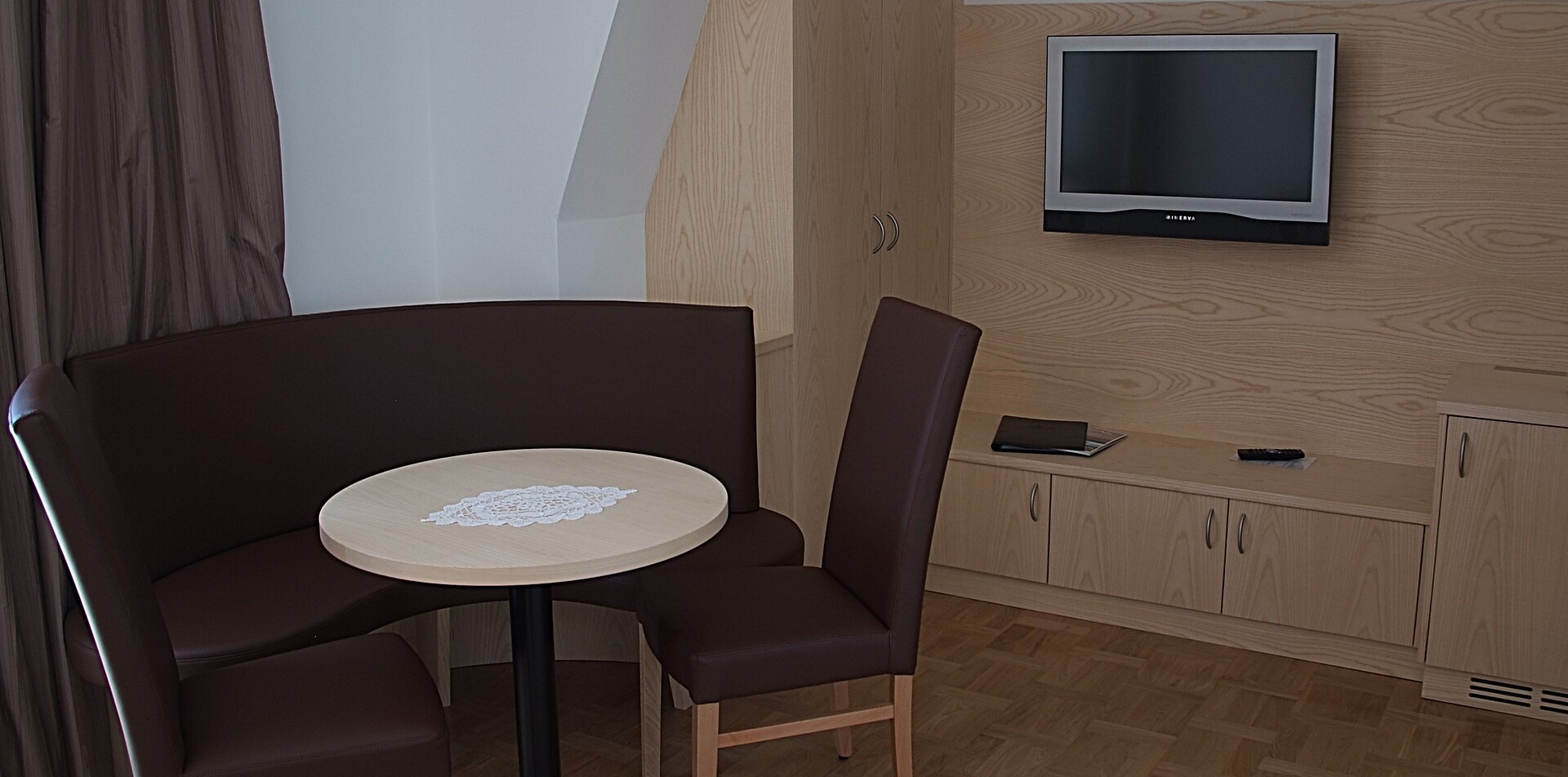 spacious single room (ca.18m²) with shower, toilet , direct dialing phone, SAT TV with 32 inch flat screen TV and balcony to the south side with awning.