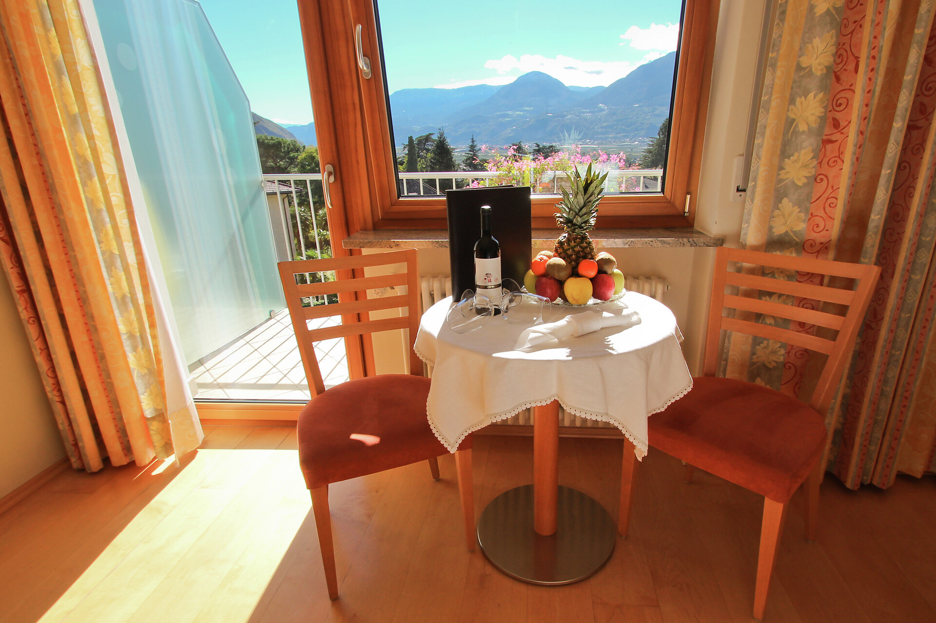 The culinary fact must not be forgotten either. Our kitchen will spoil you with international delicacies as well as the well-known South Tyrolean cuisine. And we also like to serve you a good drop of wine from South Tyrol.