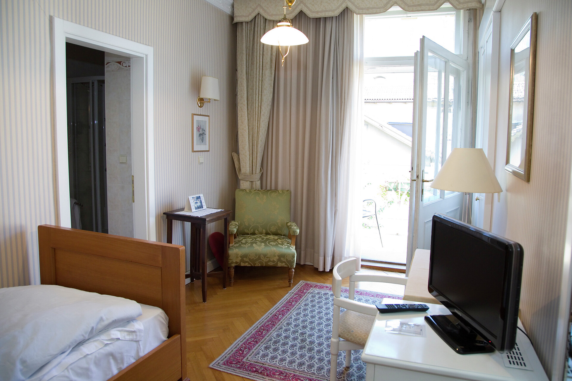 The hotel rooms are large and spacious, each one different with its unique character. Each room has a bath tub or shower with WC, hairdryer, radio, TV (with international channels), modern flat screen television, direct dial telephone, safe and minibar and some rooms are equipped with a balcony. Driks and bevarages are not includet in all services