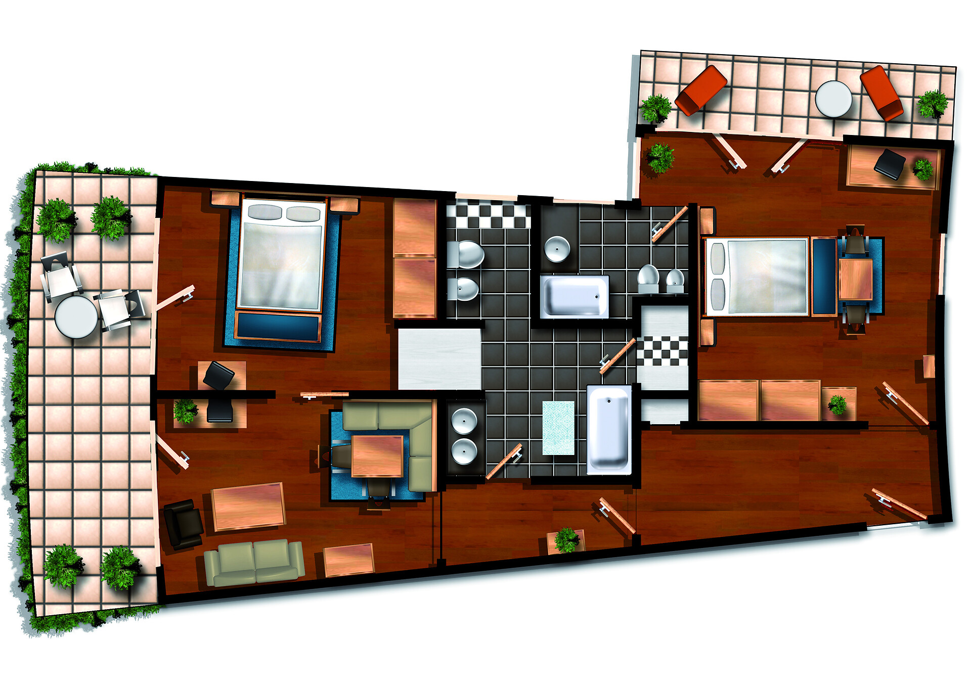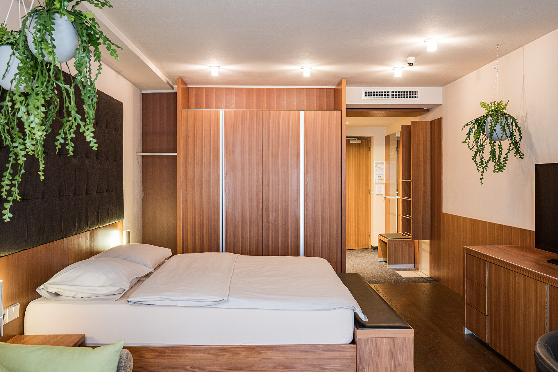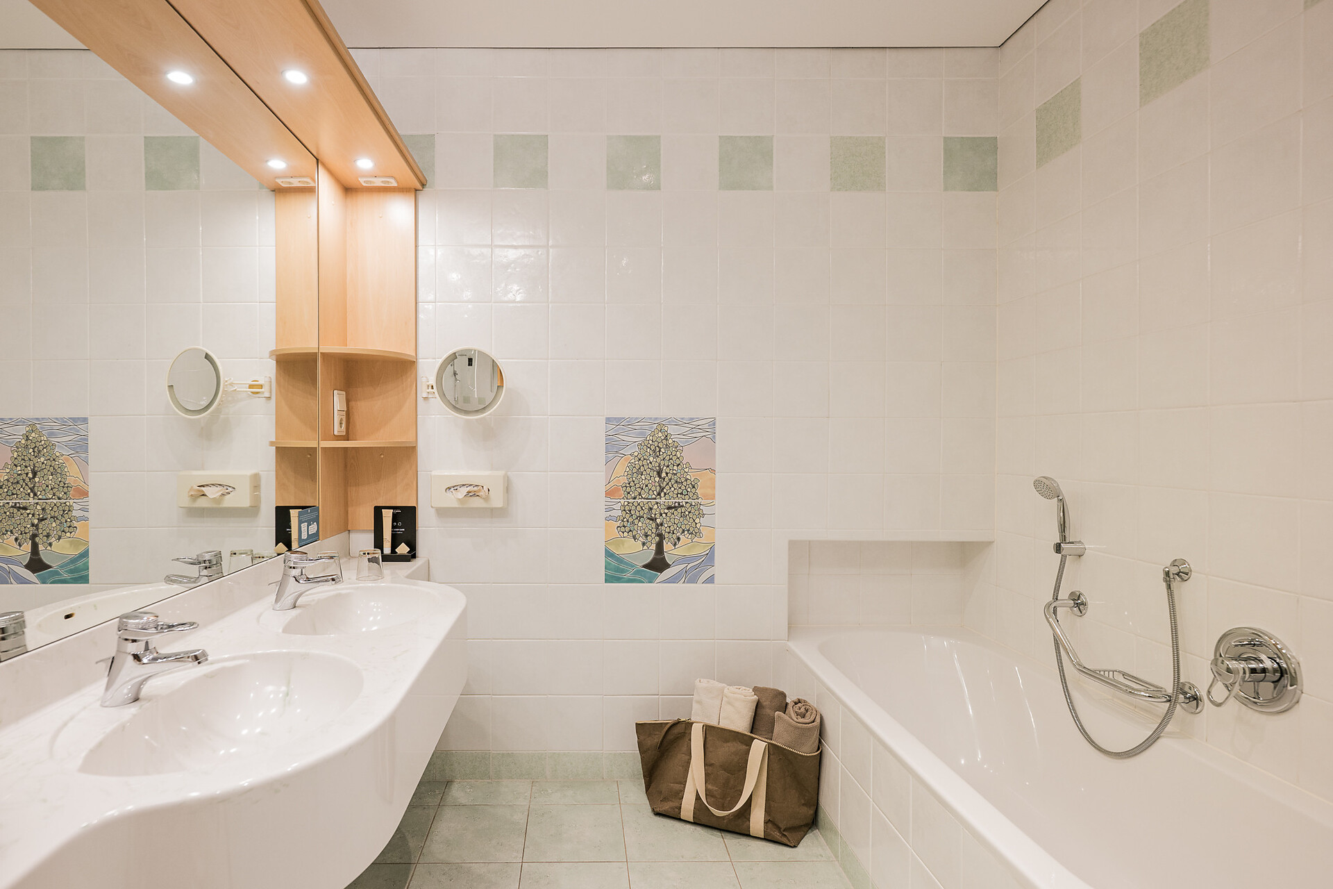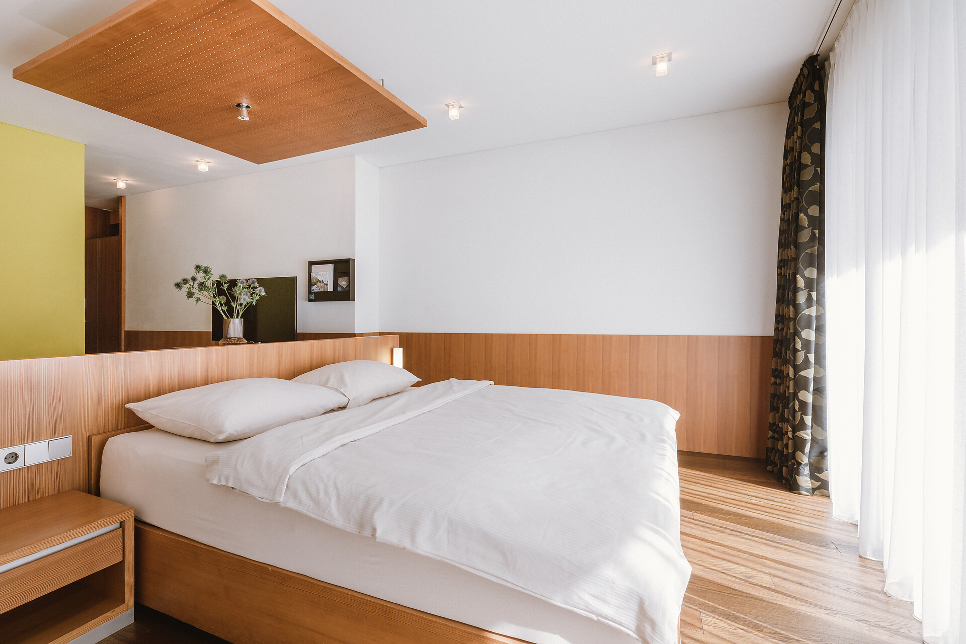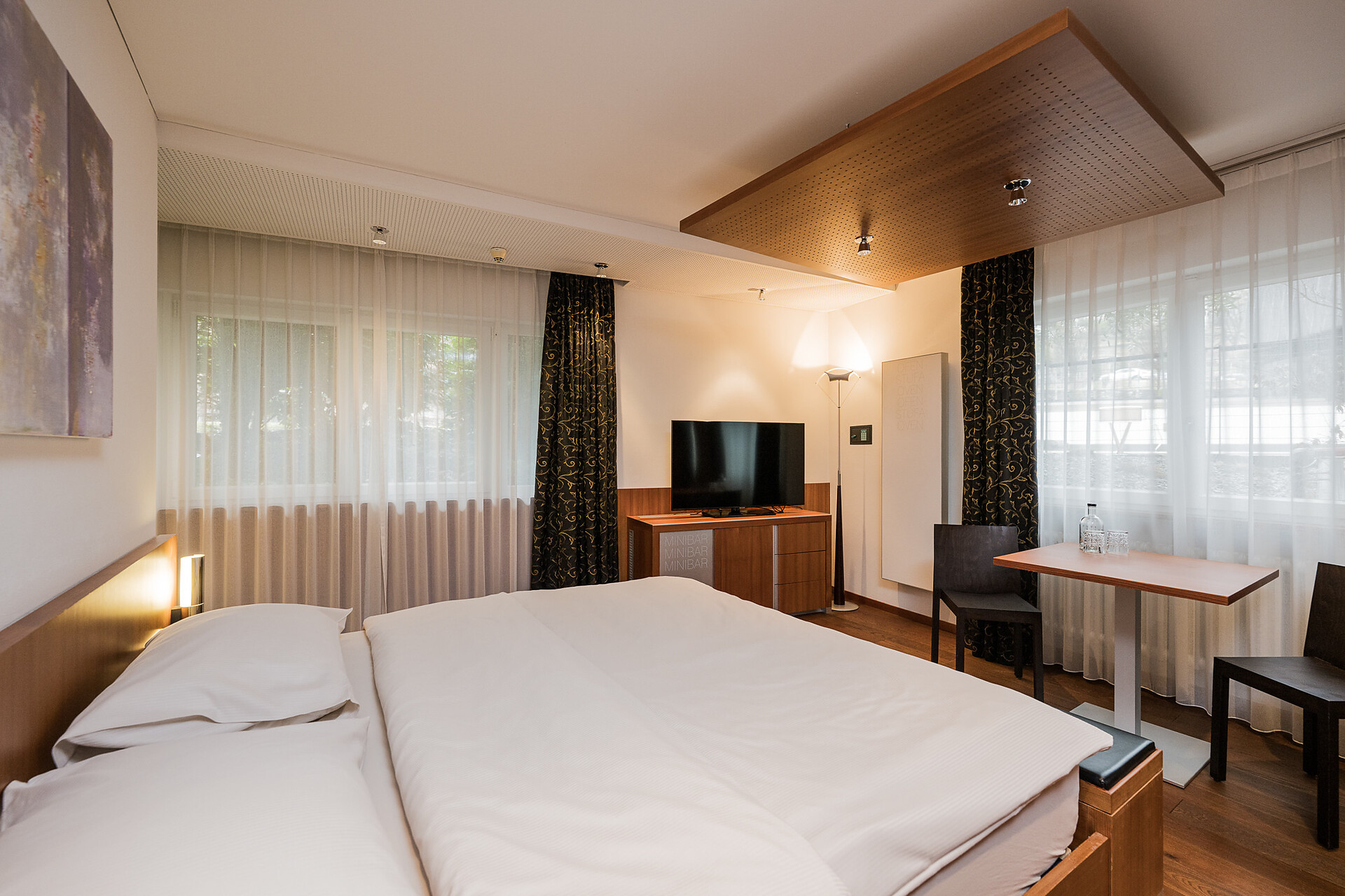 "Stammhaus" suite: a big and beautiful suite on the 5° floor with balcony to the south side, 48m² large, with separate sleeping and living room, shower, bidet, bath tub, furnace, hair dryer, bidet, TV, InterNet connection, safe, garage. NEW: big panorama-terrace with 32m²,