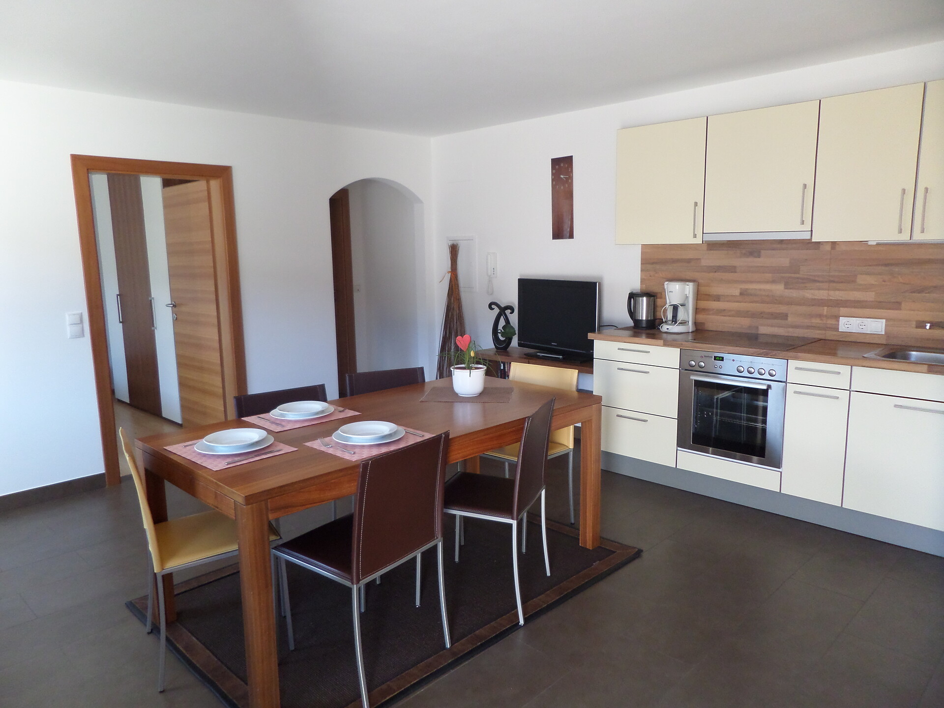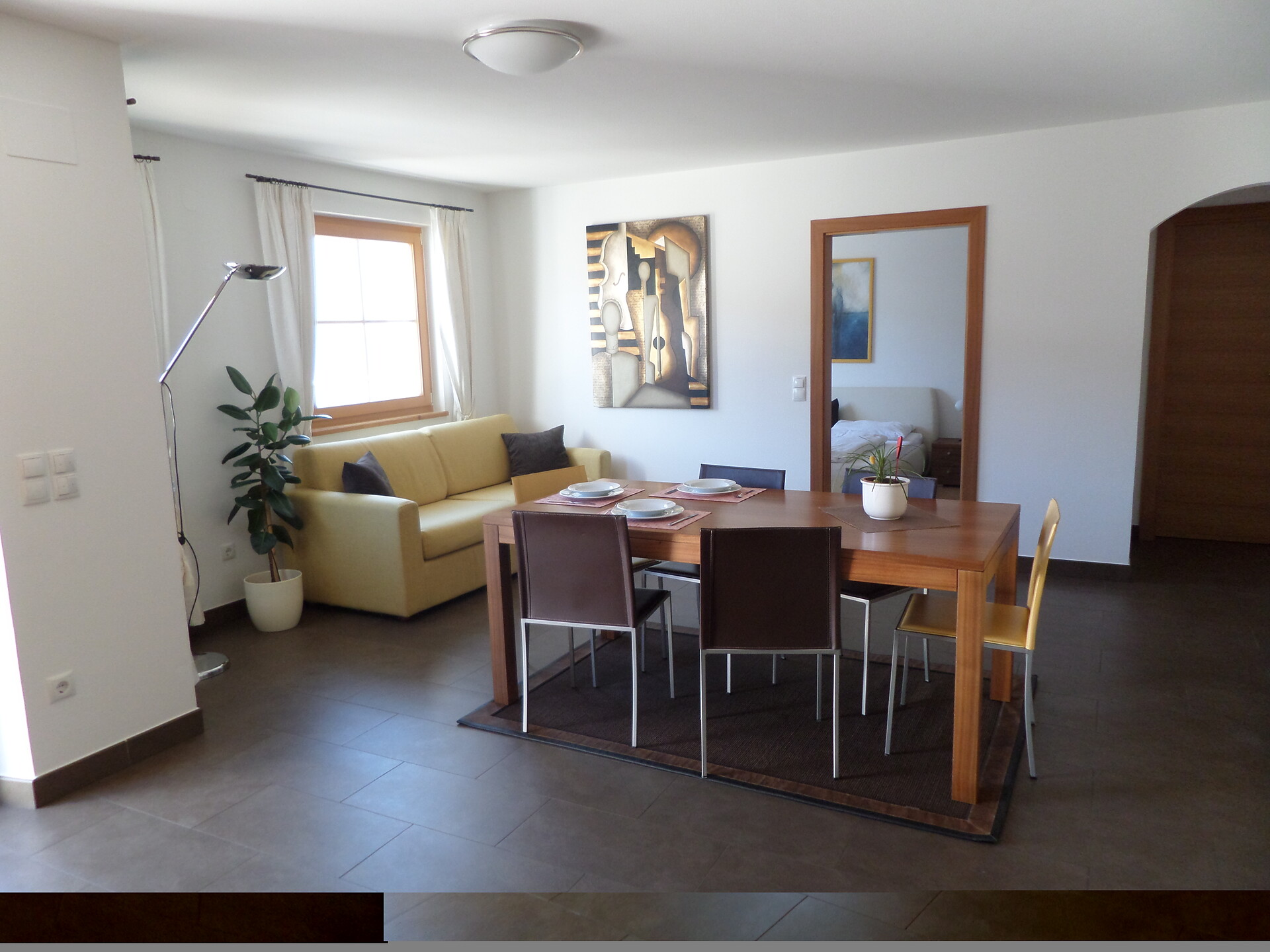 Double bed , Extra bed, Cot, Sofa bed, Double sofa bed, Terrace, Garden , Bed linen provided, Safe, Eat-in kitchen, Coffee machine, Dishwasher, Electric cooker, Cutlery provided, Water boiler, Oven, Shower/Bath tub, Bidet, Towels, TV, Satellite/Cable, WLAN, Cleaning upon request, Panoramic view, South view