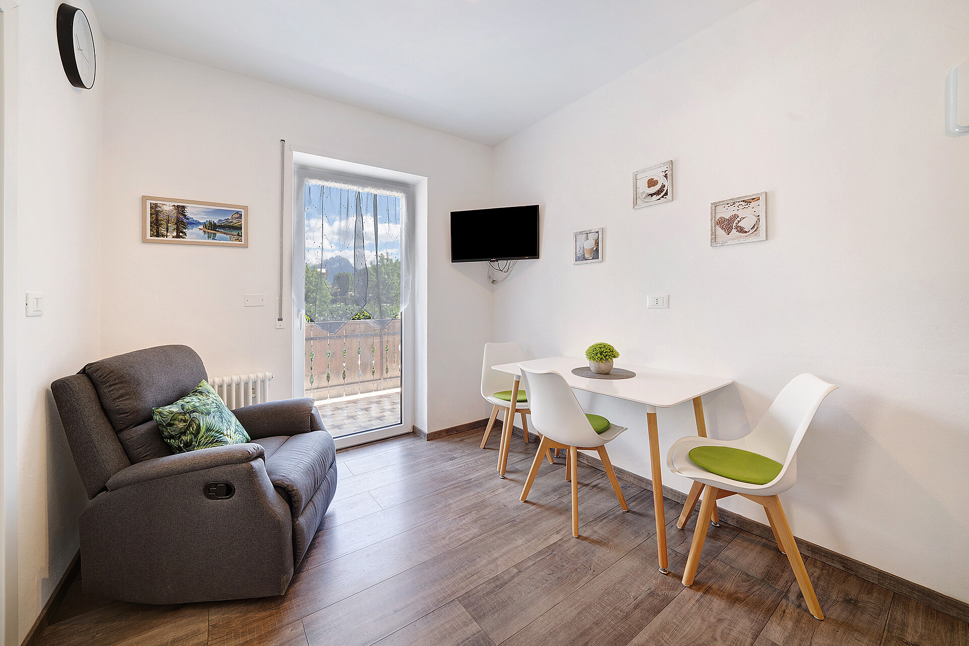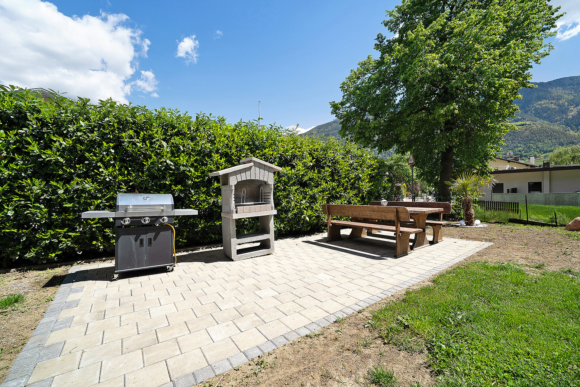 The highlight of this accommodation is its private balcony where you can admire the mountain views.The property also has access to a shared outdoor area which includes garden, a barbecue and a playground.