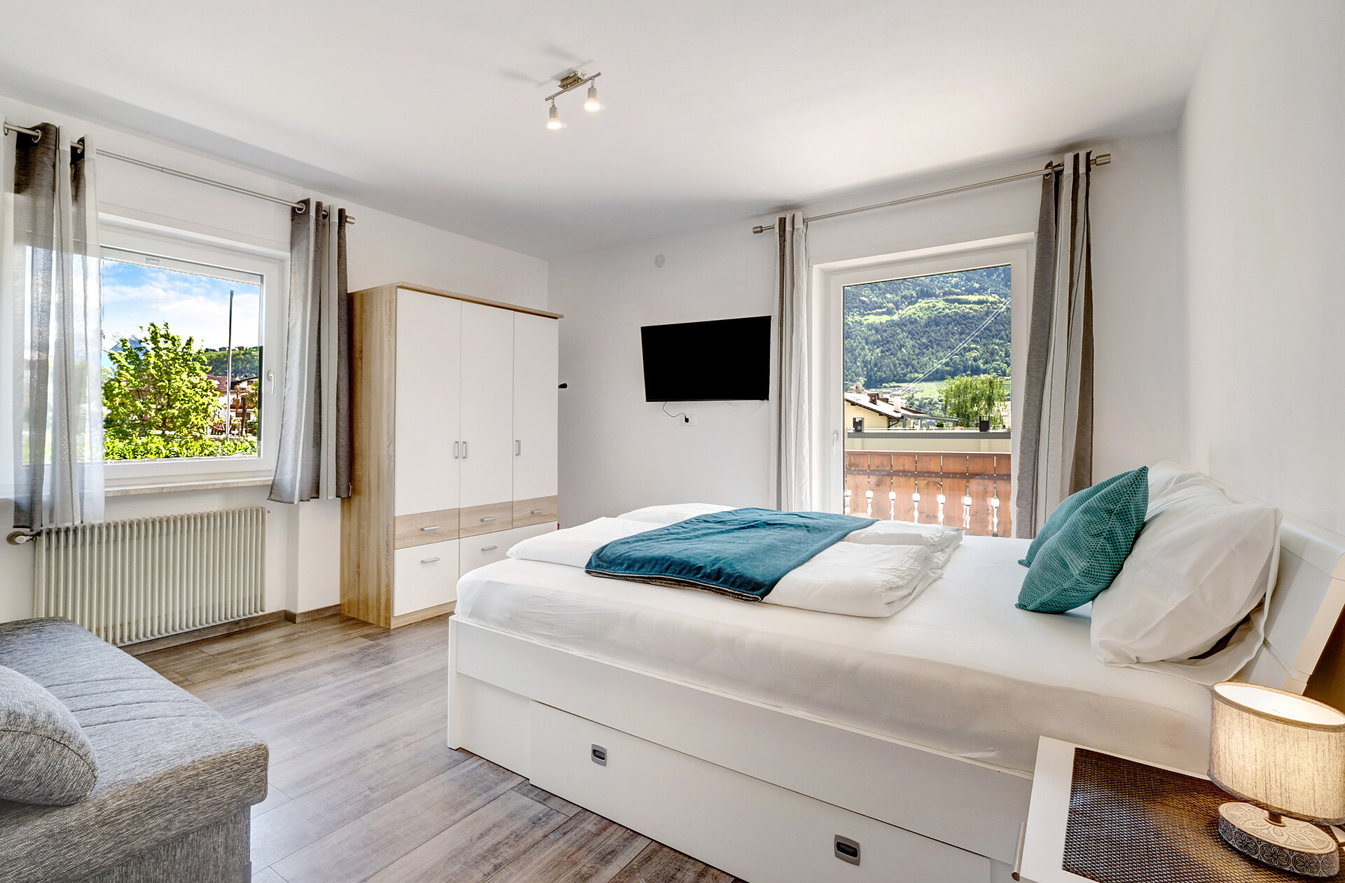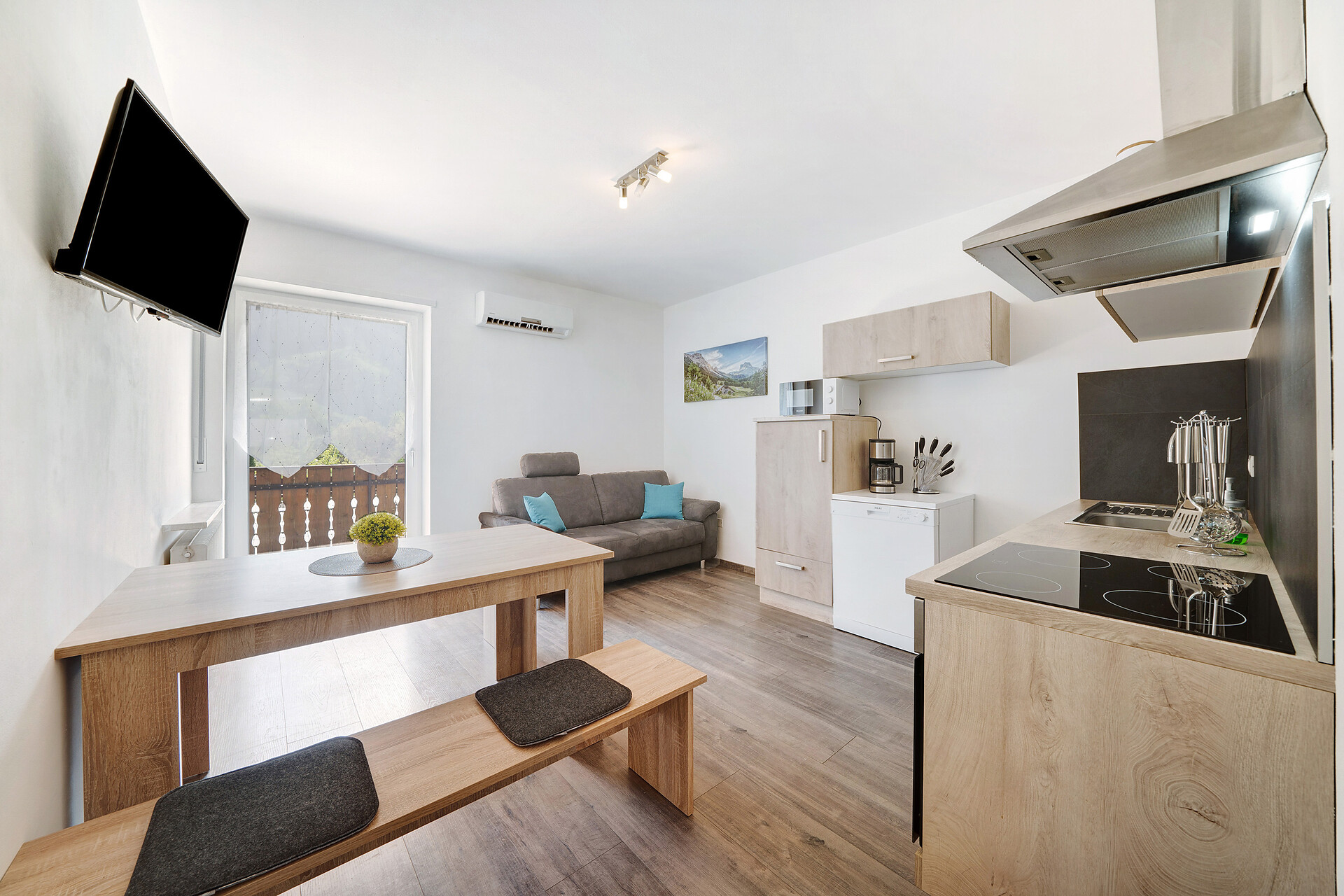 Single bed, Double bed , Cot, Balcony, Garden , Air conditioning, Bed linen provided, Safe, Non-smoking apartment, Eat-in kitchen, Coffee machine, Dishwasher, Electric cooker, Microwave, Cutlery provided, Water boiler, Oven, Shower/Bath tub, Hair dryer, Towels, Washing machine in the apartment, TV, Satellite/Cable, WLAN, Final cleaning included, Main building, Panoramic view, South view