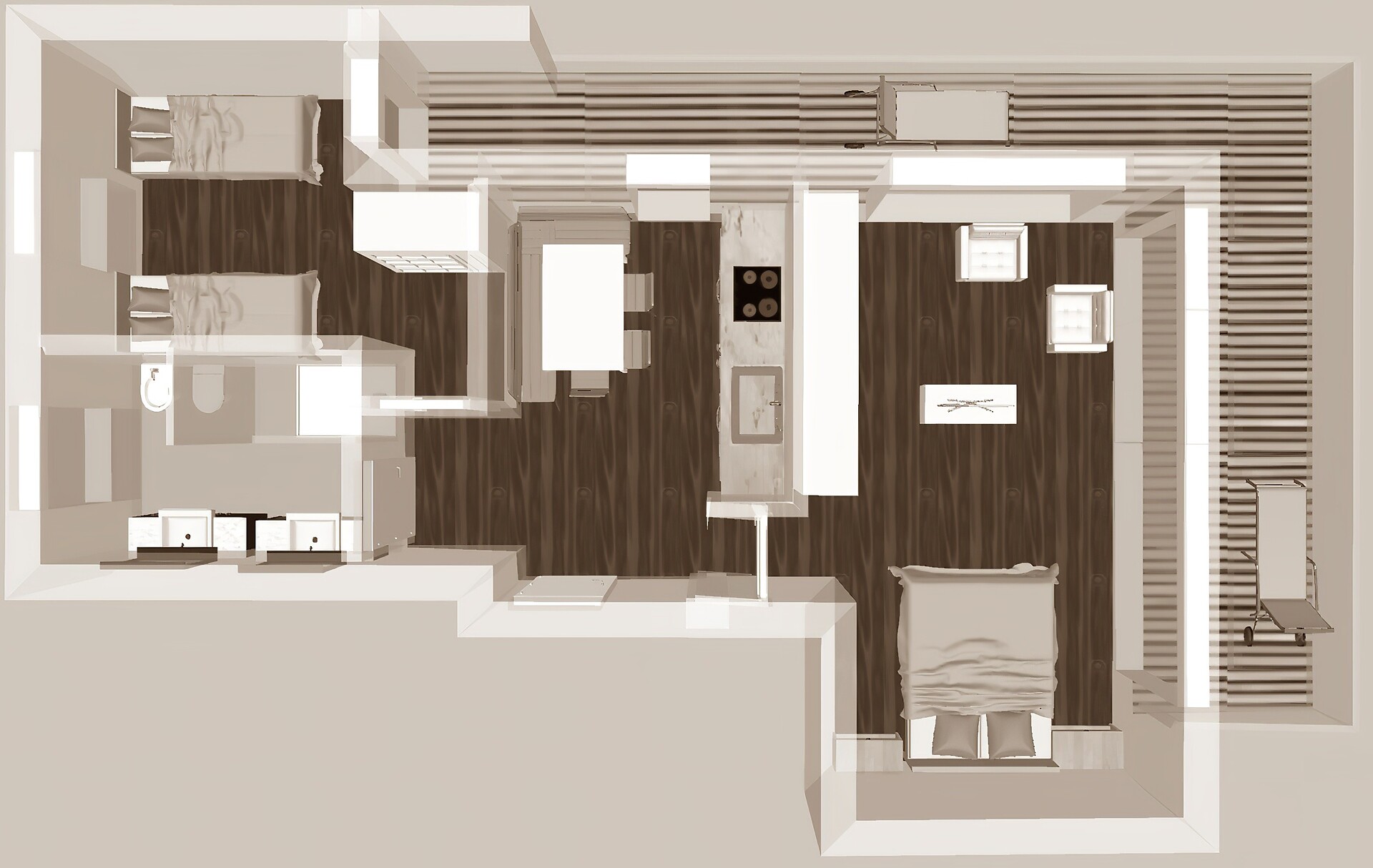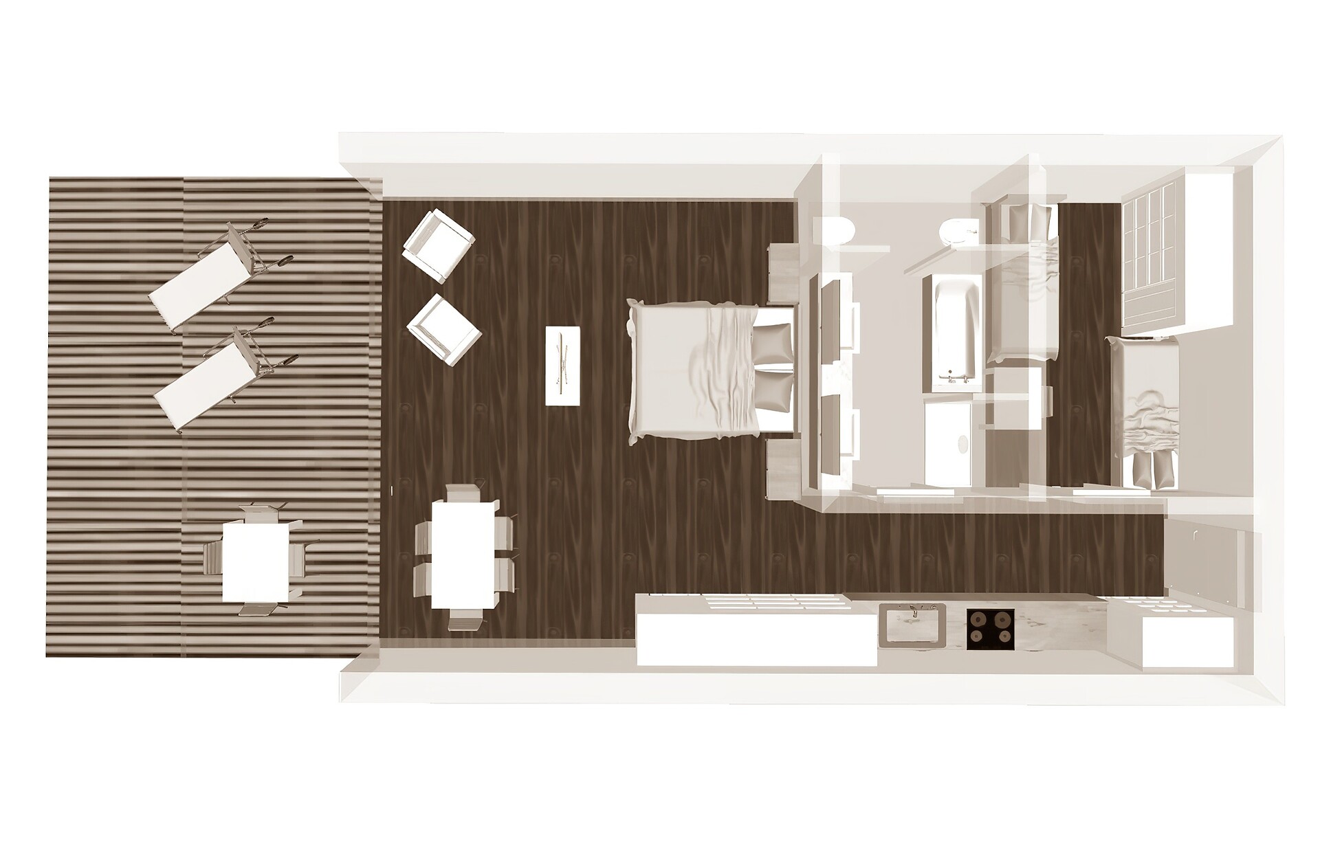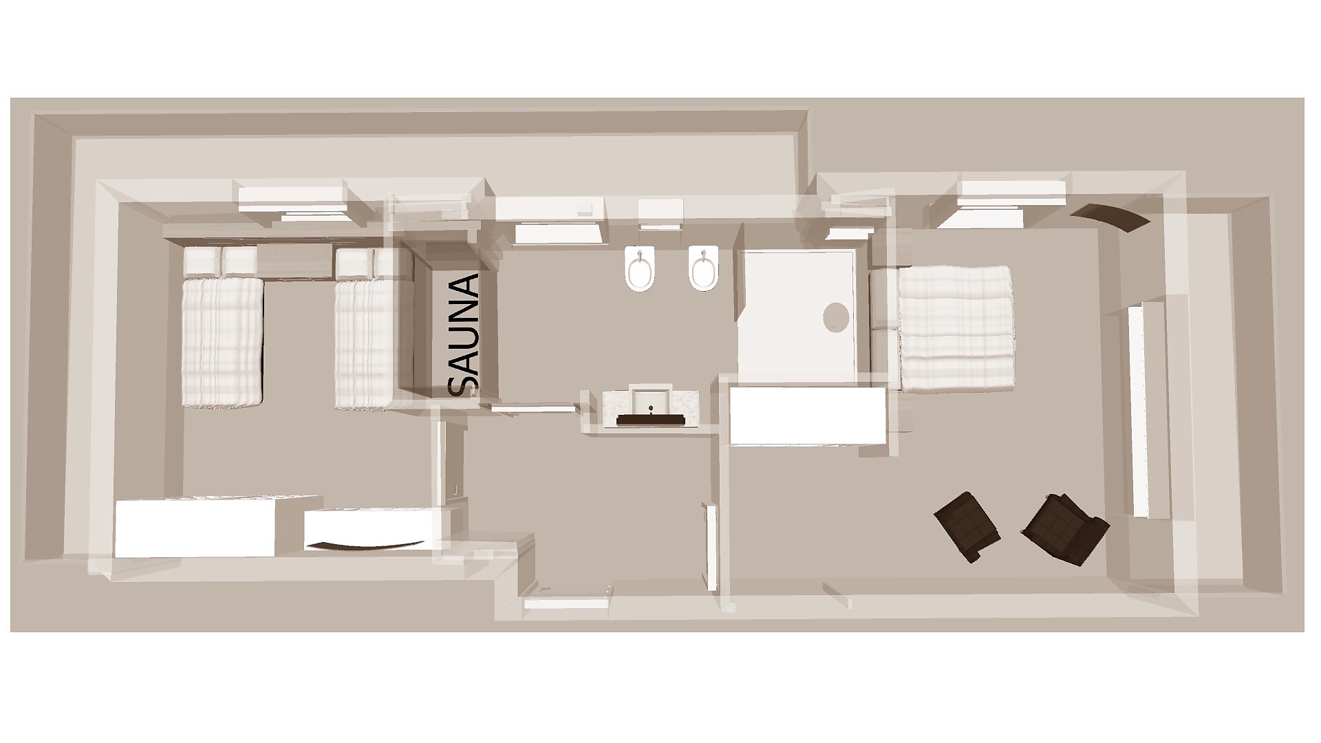 apartement 58-65 m². Ideal for all who want it big! A separate children's room, modern design and a private 40 m² crash-proof sun terrace offers enough space for families or smaller groups!