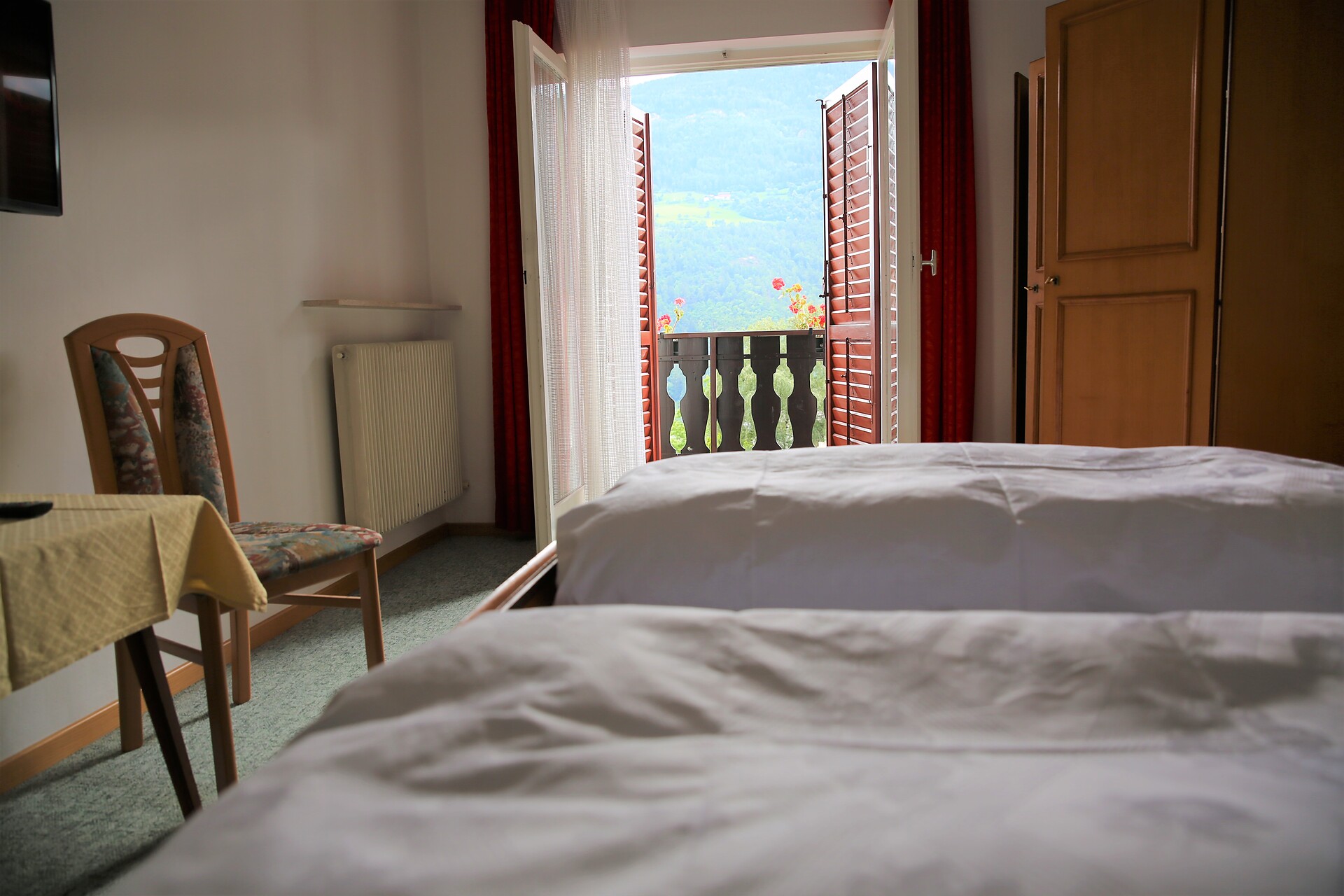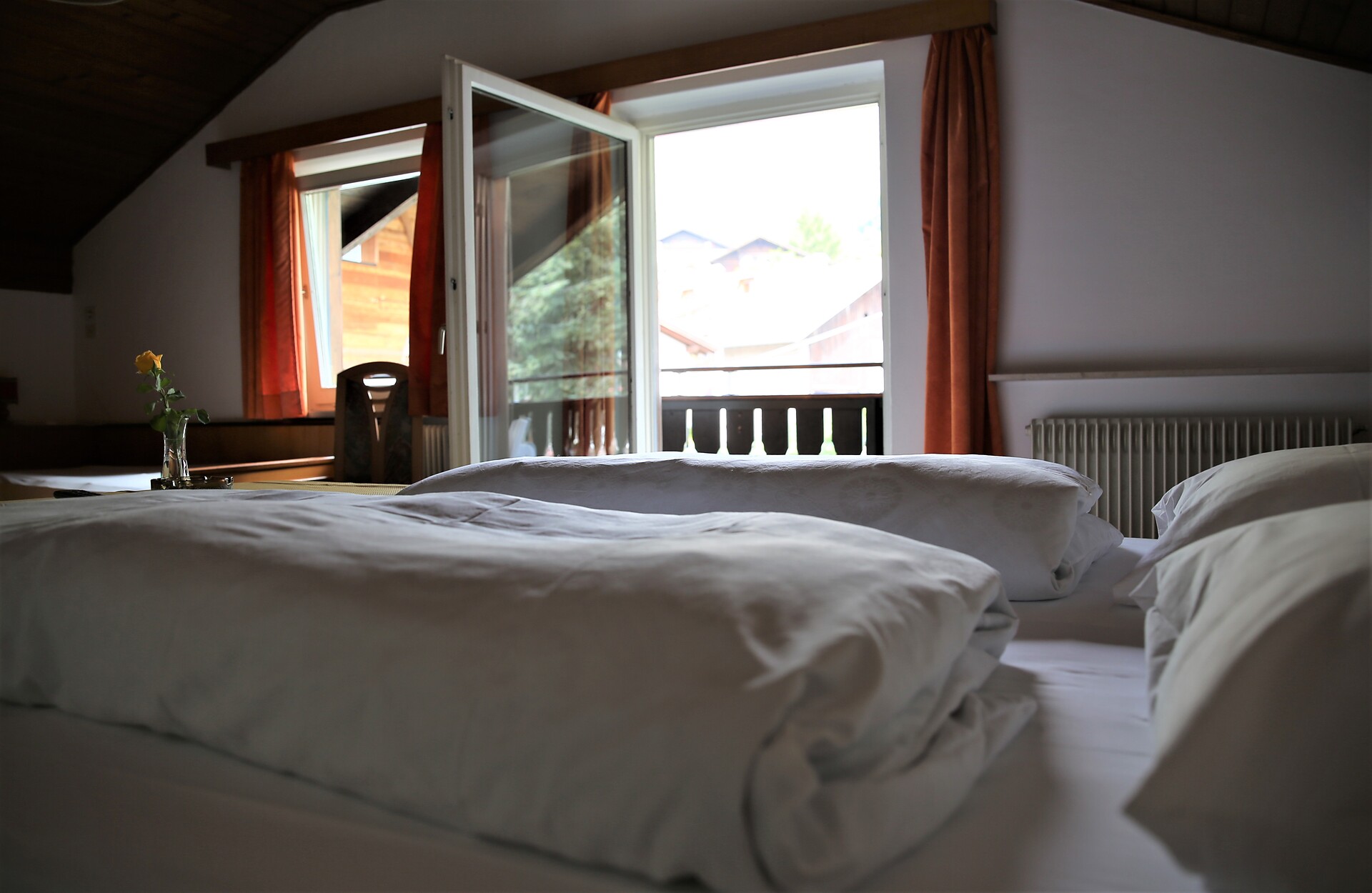 Room with tow beds and balcony